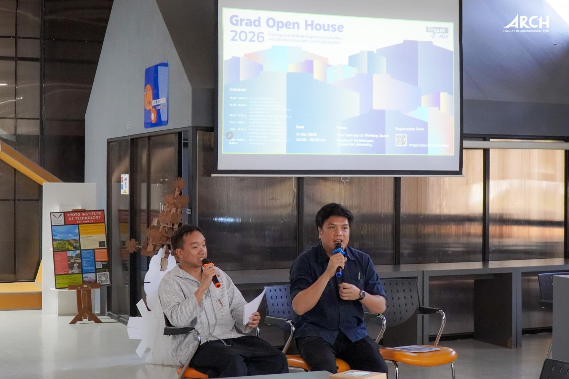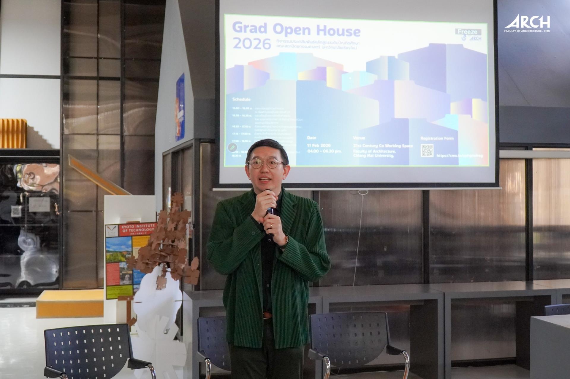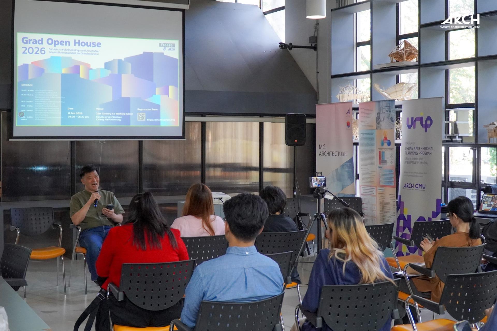 เมื่อวันพุธที่ 11 กุมภาพันธ์ 2569 คณะสถาปัตยกรรมศาสตร์ มช. จัดกิจกรรม Grad Open House 2026 เพื่อประชาสัมพันธ์หลักสูตรระดับบัณฑิตศึกษาแก่ผู้สนใจศึกษาต่อในระดับปริญญาโทและปริญญาเอก ณ ห้องการเรียนรู้ในศตวรรษที่ 21 คณะสถาปัตยกรรมศาสตร์