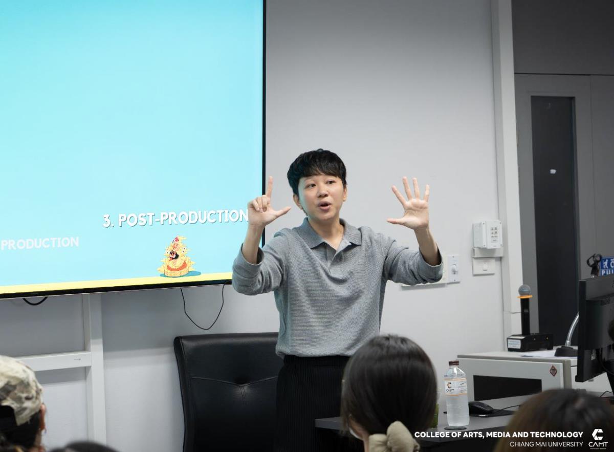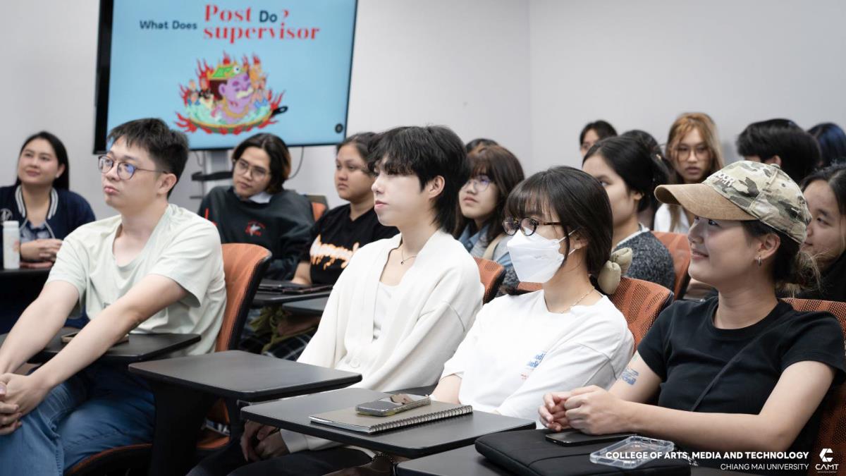 กิจกรรมในครั้งนี้ได้รับเกียรติจาก คุณเบญจวรรณ์ จีรวัฒน์ศุภโชค (พี่อิม) Post-Production Supervisor ผู้อยู่เบื้องหลังความสำเร็จของภาพยนตร์และซีรีส์ชื่อดัง อาทิ LOW SEASON สุขสันต์วันโสด, ขุนพันธ์ 2, จอมขมังเวทย์ และผลงานบน Netflix อย่าง ดาหลา บุปผา ฆาตกรรม และสาธุ ๒ มาเป็นวิทยากร พร้อมด้วยคุณวีรภัทร สังข์รุ่ง ผู้ช่วยวิทยากร มาร่วมแบ่งปันเทคนิคและการบริหารจัดการงานหลังการผลิต (Post-Production) อย่างเข้มข้น ซึ่งกิจกรรมนี้เป็นส่วนหนึ่งในรายวิชา 957311 Producing Visual Effects ภายใต้การดูแลของอาจารย์ ดร.ศุภรดา ประภาวงศ์ อาจารย์ประจำสาขาแอนนิเมชันและวิชวลเอฟเฟกต์ โดยมุ่งเน้นการเชื่อมโยงความรู้ทางวิชาการเข้ากับประสบการณ์จริงจากผู้เชี่ยวชาญในวงการ เพื่อเตรียมความพร้อมให้นักศึกษาได้พัฒนาทักษะที่จำเป็นสำหรับการทำงานในอุตสาหกรรมภาพยนตร์และแอนนิเมชันได้อย่างมีประสิทธิภาพในอนาคต เมื่อวันที่ 30 มกราคม 2569 ณ วิทยาลัยศิลปะ สื่อ และเทคโนโลยี มหาวิทยาลัยเชียงใหม่