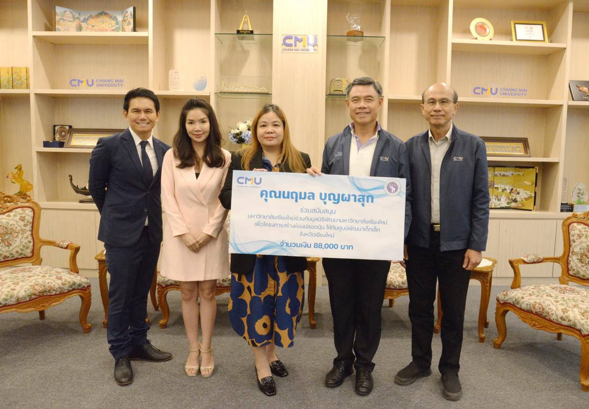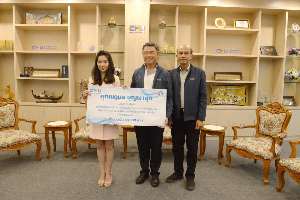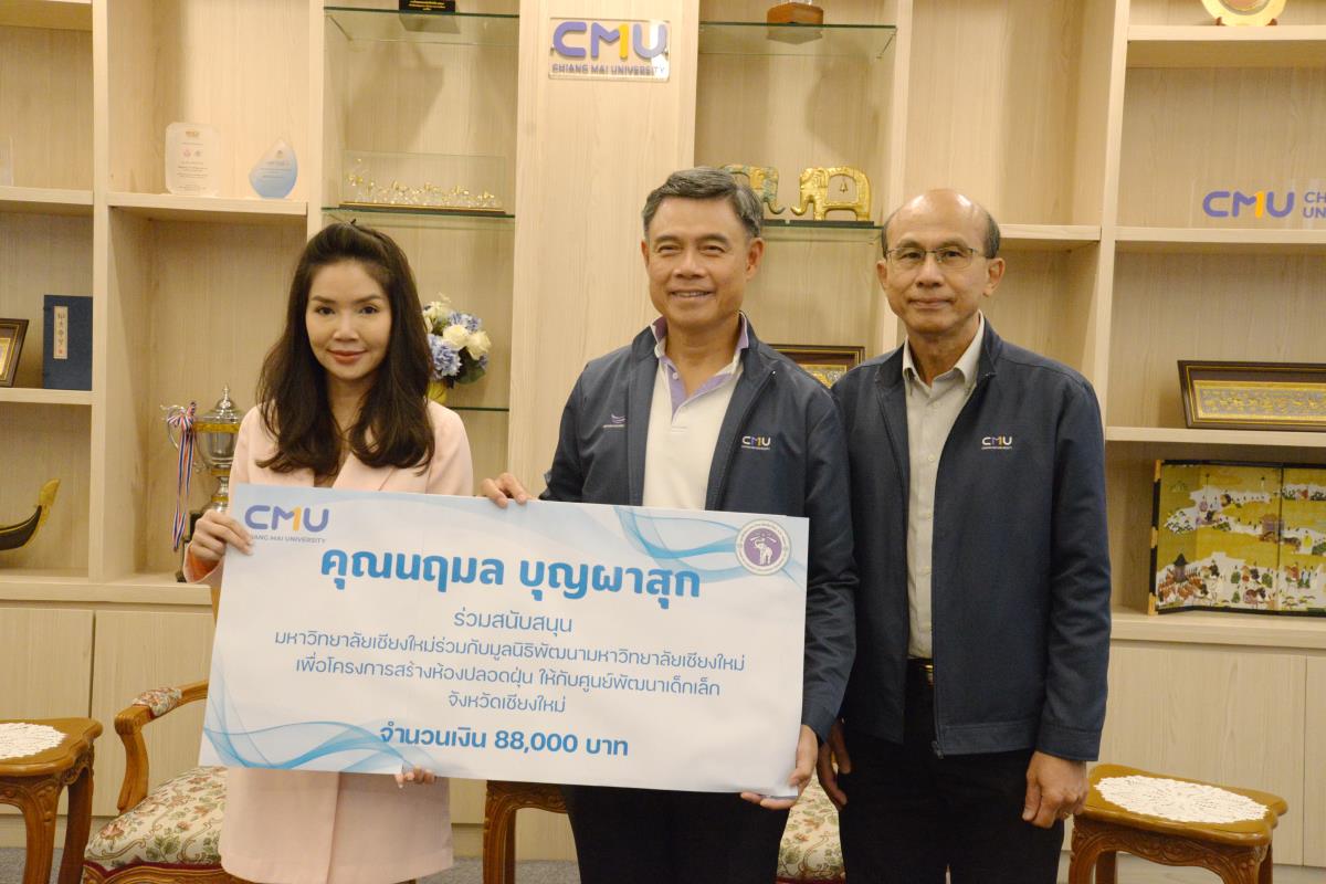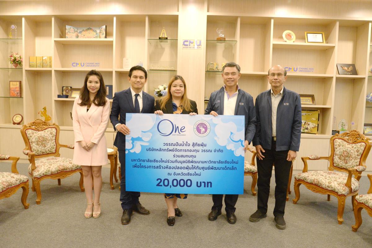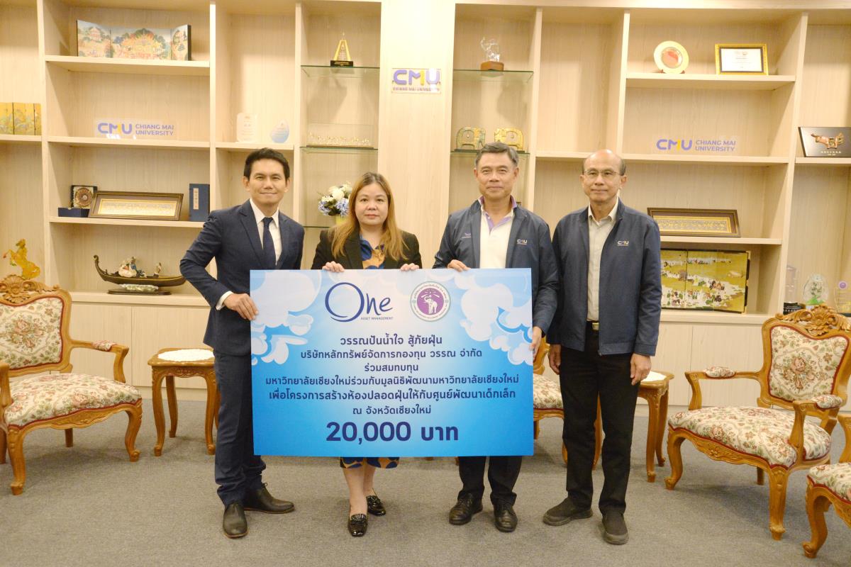 ศาสตราจารย์ ดร.นพ.พงษ์รักษ์ ศรีบัณฑิตมงคล อธิการบดีมหาวิทยาลัยเชียงใหม่ รับมอบเงินในโครงการสร้างห้องปลอดฝุ่นให้กับศูนย์พัฒนาเด็กเล็กจังหวัดเชียงใหม่ ในนามมหาวิทยาลัยเชียงใหม่ และมูลนิธิพัฒนามหาวิทยาลัยเชียงใหม่ จำนวนเงิน 20,000 บาท จากคุณปัทมเกสร์ อมาตยกุล ประธานเจ้าหน้าที่บริหารการตลาด คุณธนกฤต สุขกาญจนนท์ ผู้อำนวยการ ฝ่ายเวลท์โซลูชั่นและลูกค้าสถาบัน คุณนฤมล บุญผาสุก Investment Planner Marketing and Products Division บริษัทหลักทรัพย์จัดการกองทุน วรรณ จำกัด โดยคุณนฤมล บุญผาสุก ร่วมสนับสนุนอีกเป็นจำนวนเงิน 88,000 บาท โดยมี รองศาสตราจารย์ นายแพทย์ธนู หินทอง ผู้อำนวยการสำนักบริหารและจัดการทรัพย์สิน ร่วมรับมอบและ เป็นผู้มอบเงินจำนวน 140,000 บาท ในนามบริษัทอ่างแก้ว โฮลดิ้ง จำกัด และ บริษัท อ่างแก้ว สตาร์ทอัพ จำกัด ณ ห้องรับรอง มล.ปิ่น มาลากุล อาคารสำนักงานมหาวิทยาลัย 1 มหาวิทยาลัยเชียงใหม่ วันศุกร์ที่ 9 กุมภาพันธ์ พ.ศ. 2567
