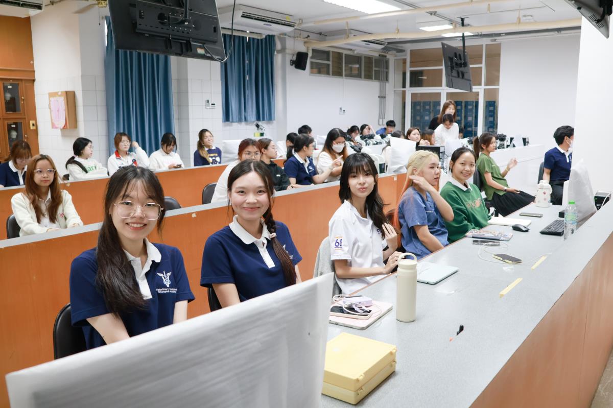 เมื่อวันที่ 19 พฤศจิกายน 2568 ศ. (เชี่ยวชาญพิเศษ) ดร. น.สพ.กรกฎ งานวงศ์พาณิชย์ คณบดีคณะสัตวแพทยศาสตร์ มหาวิทยาลัยเชียงใหม่ นำทีมพี่ ๆ บุคลากรงานบริการการศึกษาและพัฒนาคุณภาพนักศึกษา พบปะน้อง ๆ นักศึกษาชั้นปีที่ 1 ในกิจกรรม Roadshow “คณบดีพบนักศึกษา” เพื่อพูดคุยและให้คำแนะนำแนวทางการเรียน การใช้ชีวิตในรั้วมหาวิทยาลัย การร่วมกิจกรรมต่าง ๆ รวมถึงโอกาสในโครงการความร่วมมือทั้งในและต่างประเทศ นอกจากนี้ยังเปิดพื้นที่ให้น้อง ๆ ได้ร่วมแสดงความคิดเห็นและเสนอแนะแนวทางพัฒนาสิ่งอำนวยความสะดวกภายในคณะ เพื่อร่วมกันสร้างสภาพแวดล้อมการเรียนรู้ที่ตอบโจทย์ความต้องการของนักศึกษามากยิ่งขึ้น