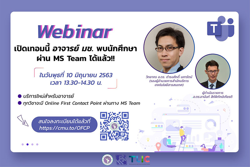 Webinar เปิดเทอมนี้ อาจารย์ มช. สามารถพบนักศึกษาผ่าน MS Team ได้แล้ว ในวันพุธ ที่ 10 มิถุนายน 2563 เวลา 13.30-14.30 น. ผ่านทาง Zoom Meeting..