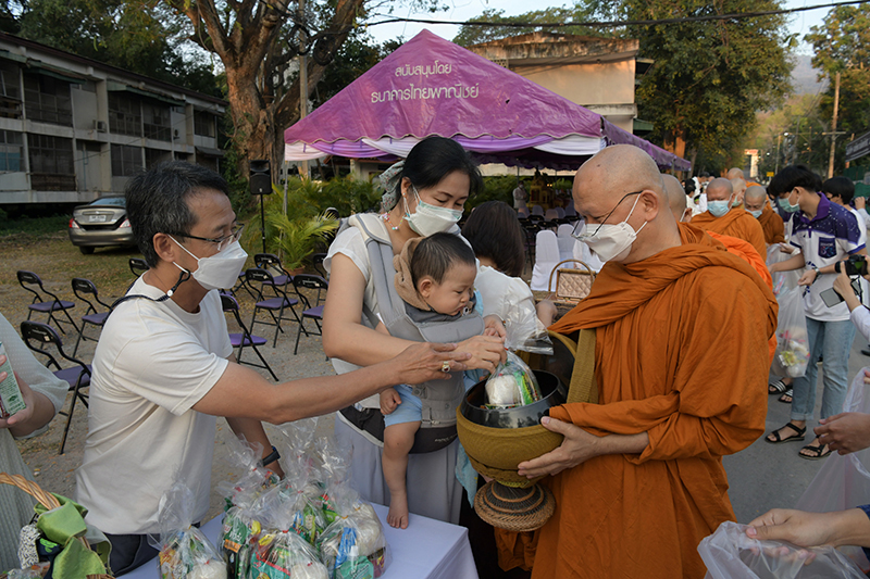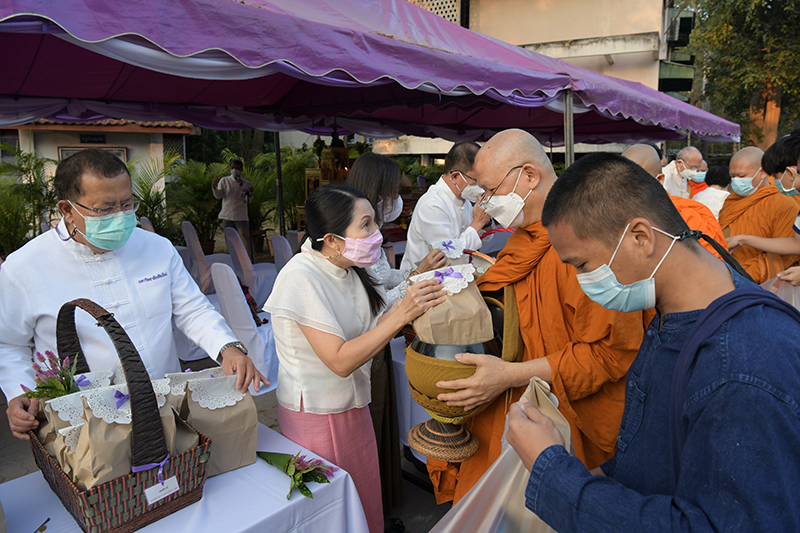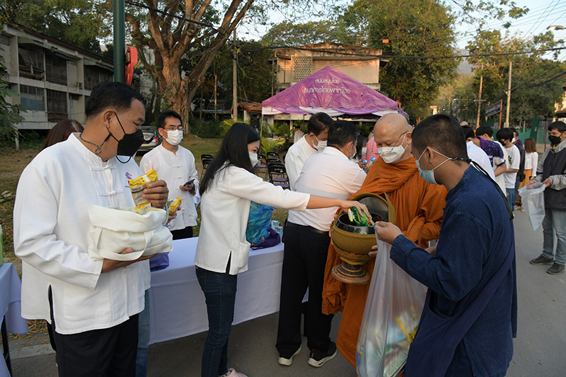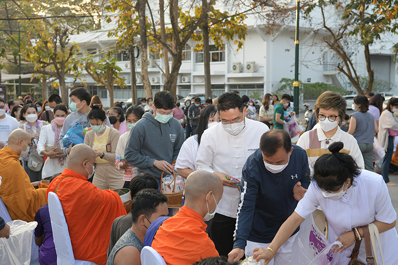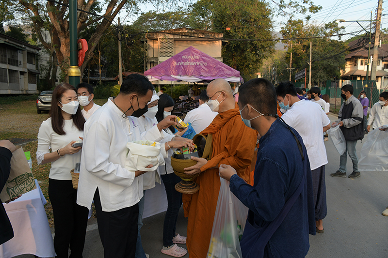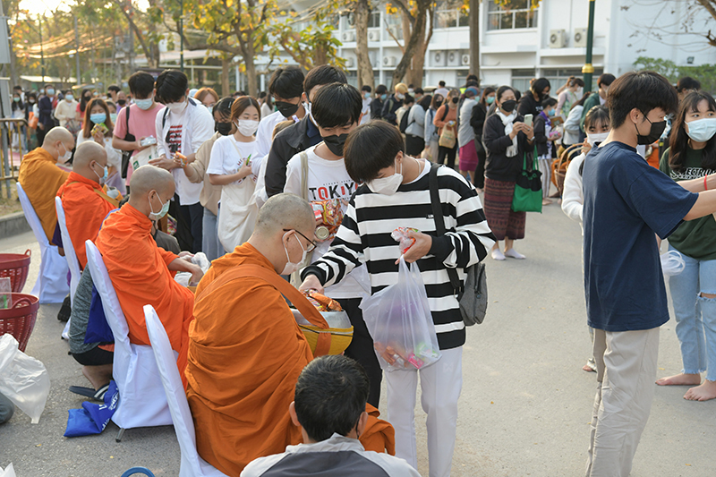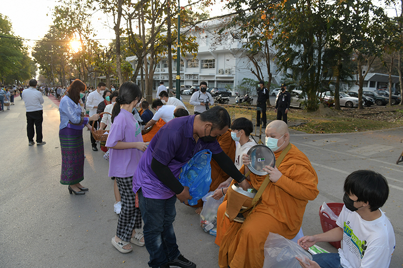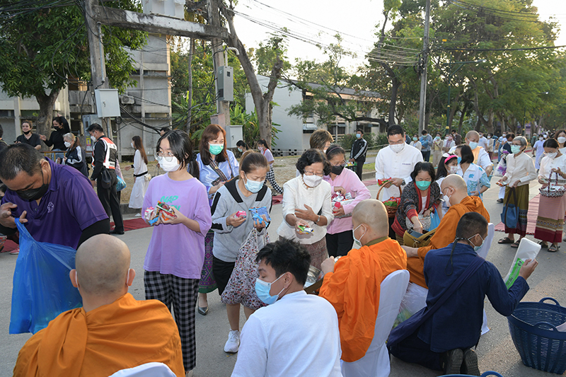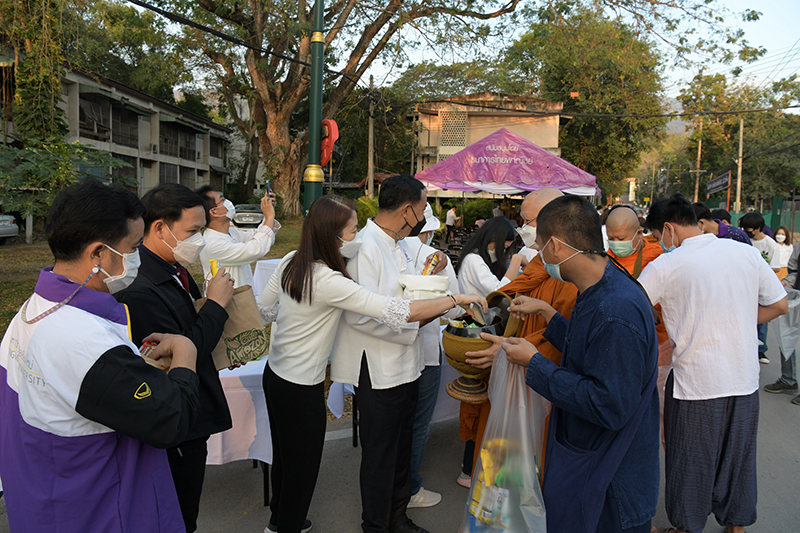 มหาวิทยาลัยเชียงใหม่ โดยคณะกรรมการดำเนินงานด้านส่งเสริมศาสนามหาวิทยาลัยเชียงใหม่ จัดพิธีทำบุญตักบาตรพระภิกษุ สามเณร เนื่องในวันมาฆบูชา ประจำปี พ.ศ. 2565 โดยมี ศาสตราจารย์คลินิก นายแพทย์นิเวศน์ นันทจิต อธิการบดีมหาวิทยาลัยเชียงใหม่ เป็นประธานในพิธีฯ พร้อมด้วยคณะผู้บริหารมหาวิทยาลัยเชียงใหม่ คณาจารย์ ข้าราชการ เจ้าหน้าที่ นักศึกษาและพุทธศาสนิกชน ร่วมพิธีฯ เพื่อรำลึกถึงวันสำคัญทางพระพุทธศาสนา เป็นวันที่สมเด็จพระสัมมาสัมพุทธเจ้าทรงแสดงโอวาทปาติโมกข์ท่ามกลางพระอรหันต์ที่ได้รับอุปสมบทจากพระพุทธเจ้า 1,250 รูป โดยมิได้นัดหมาย หลักคำสอนครั้งนี้มีความสำคัญและเป็นหัวใจพระพุทธศาสนา คือละเว้นความชั่ว ทำความดี ทำจิตใจให้บริสุทธิ์ และถวายเป็นพุทธบูชา สืบสานวัฒนธรรมประเพณีอันดีงาม และการทำนุบำรุงพระพุทธศาสนา ณ ถนนสายวัฒนธรรม มหาวิทยาลัยเชียงใหม่ เมื่อวันพุธที่ 16 กุมภาพันธ์ พ.ศ. 2565