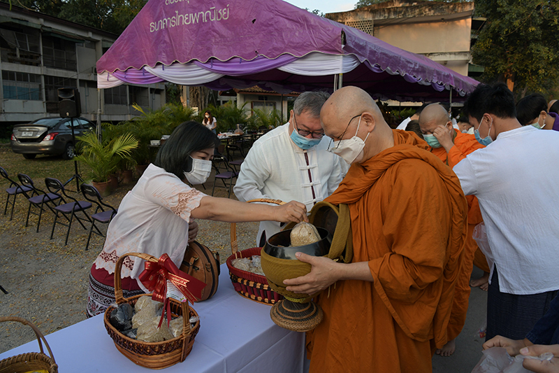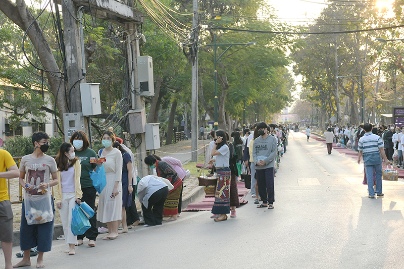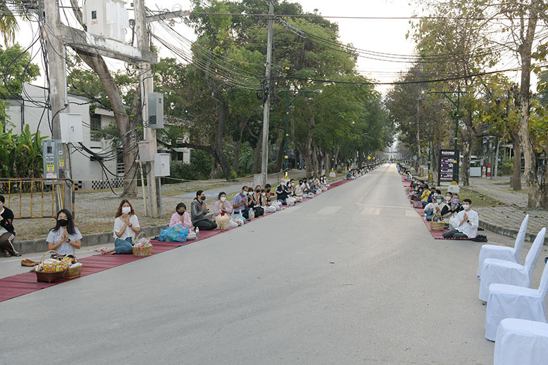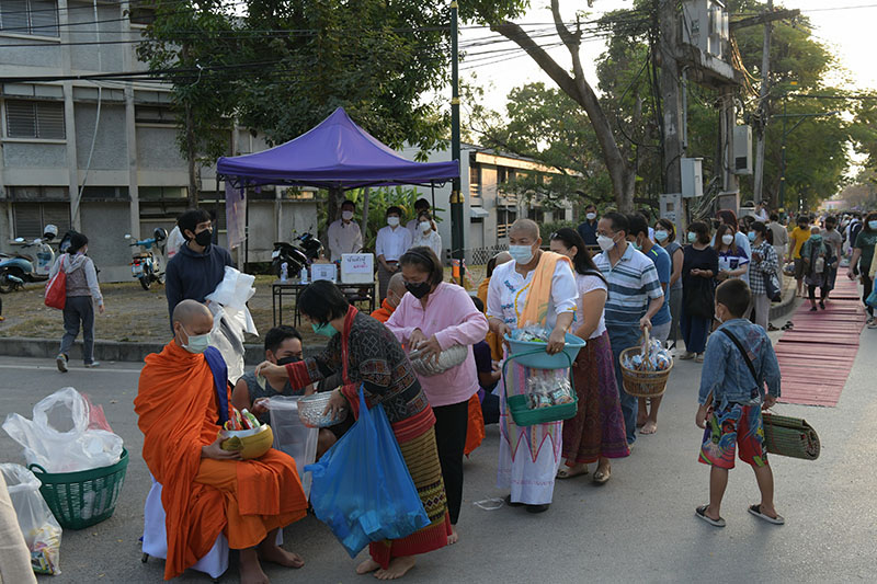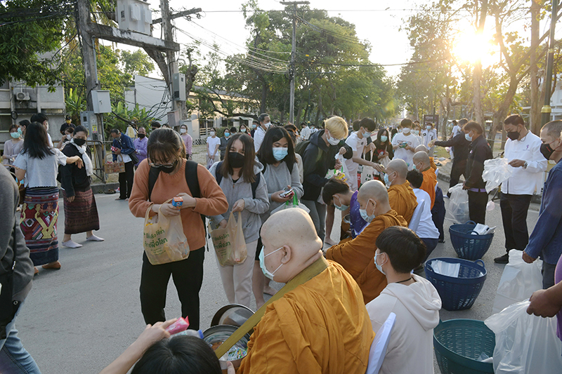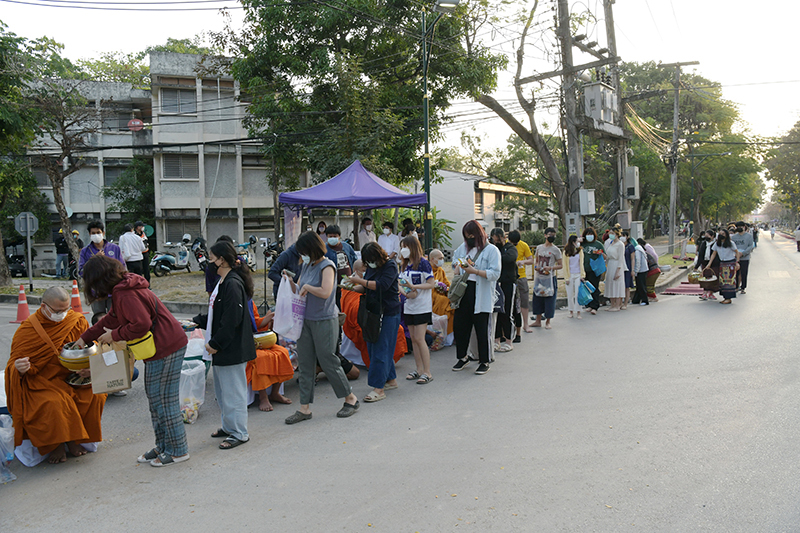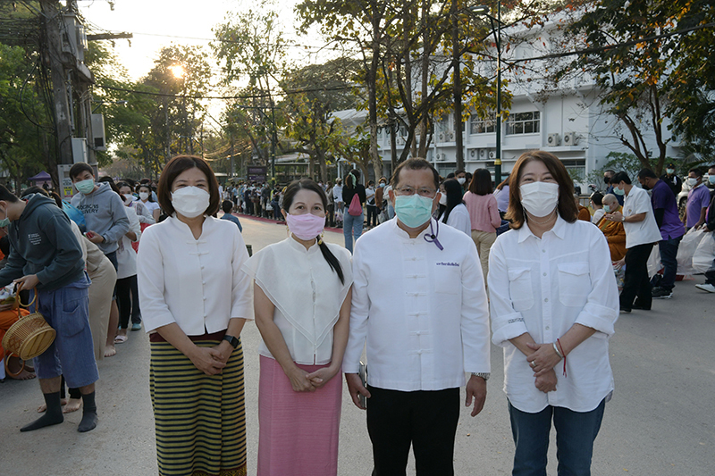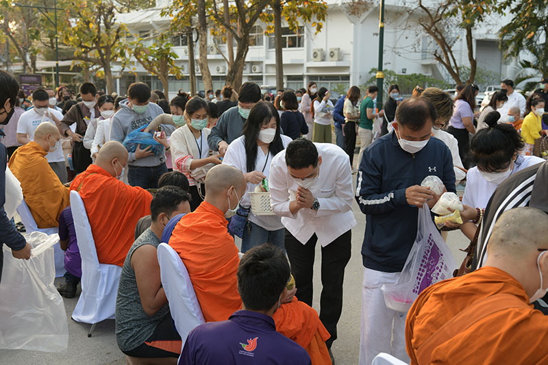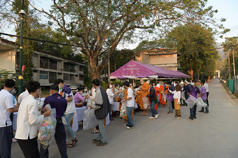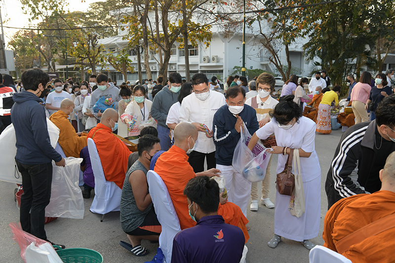 มหาวิทยาลัยเชียงใหม่ โดยคณะกรรมการดำเนินงานด้านส่งเสริมศาสนามหาวิทยาลัยเชียงใหม่ จัดพิธีทำบุญตักบาตรพระภิกษุ สามเณร เนื่องในวันมาฆบูชา ประจำปี พ.ศ. 2565 โดยมี ศาสตราจารย์คลินิก นายแพทย์นิเวศน์ นันทจิต อธิการบดีมหาวิทยาลัยเชียงใหม่ เป็นประธานในพิธีฯ พร้อมด้วยคณะผู้บริหารมหาวิทยาลัยเชียงใหม่ คณาจารย์ ข้าราชการ เจ้าหน้าที่ นักศึกษาและพุทธศาสนิกชน ร่วมพิธีฯ เพื่อรำลึกถึงวันสำคัญทางพระพุทธศาสนา เป็นวันที่สมเด็จพระสัมมาสัมพุทธเจ้าทรงแสดงโอวาทปาติโมกข์ท่ามกลางพระอรหันต์ที่ได้รับอุปสมบทจากพระพุทธเจ้า 1,250 รูป โดยมิได้นัดหมาย หลักคำสอนครั้งนี้มีความสำคัญและเป็นหัวใจพระพุทธศาสนา คือละเว้นความชั่ว ทำความดี ทำจิตใจให้บริสุทธิ์ และถวายเป็นพุทธบูชา สืบสานวัฒนธรรมประเพณีอันดีงาม และการทำนุบำรุงพระพุทธศาสนา ณ ถนนสายวัฒนธรรม มหาวิทยาลัยเชียงใหม่ เมื่อวันพุธที่ 16 กุมภาพันธ์ พ.ศ. 2565