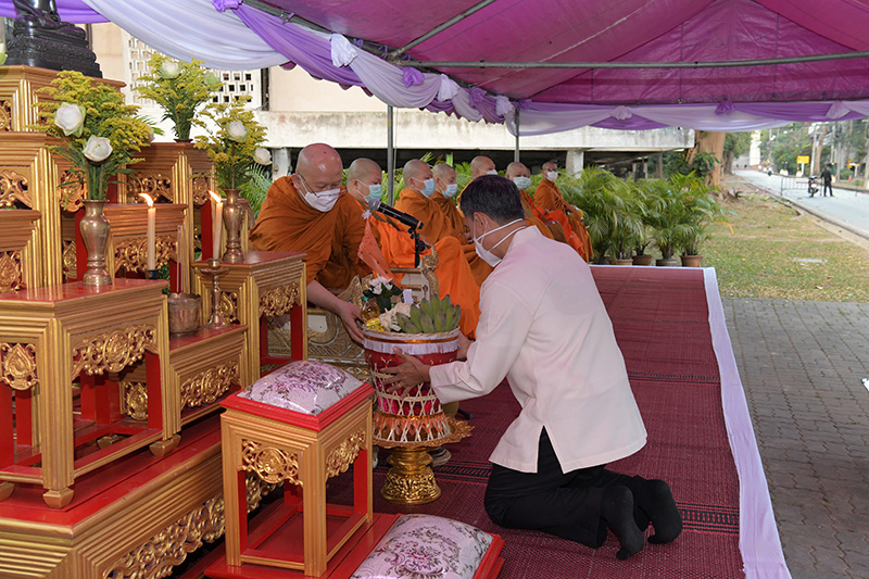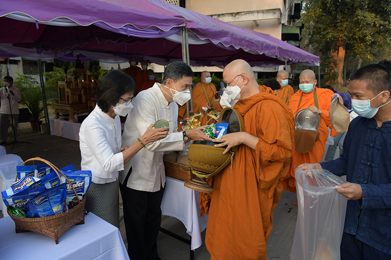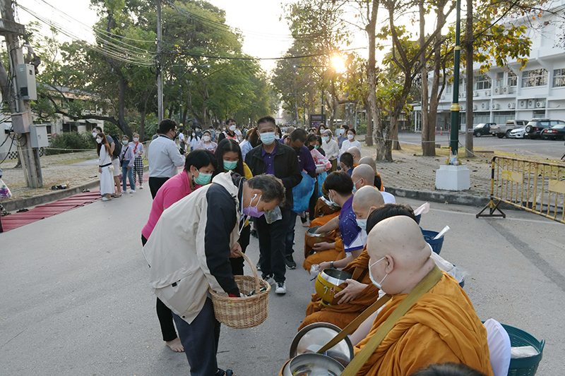 พิธีทำบุญตักบาตรพระภิกษุ สามเณร เนื่องในวันมาฆบูชา ประจำปี พ.ศ. 2565