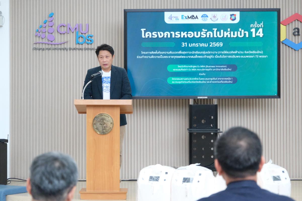 วันที่ 30 มกราคม 2569 หลักสูตรบริหารธุรกิจมหาบัณฑิต สาขาวิชานวัตกรรมธุรกิจสำหรับผู้บริหาร (Ex-M.B.A.) คณะบริหารธุรกิจ มหาวิทยาลัยเชียงใหม่ (CMUBS) ร่วมกับนักศึกษา Ex-M.B.A. รุ่นที่ 26 และชมรมศิษย์เก่า Ex-M.B.A. ผนึกกำลังกับภาคีเครือข่าย ได้แก่ วิศวกรรมสถานแห่งประเทศไทย ในพระบรมราชูปถัมภ์ สาขาภาคเหนือ 1 สมาคมธุรกิจท่องเที่ยวจังหวัดเชียงใหม่ และตำรวจท่องเที่ยวเชียงใหม่ จัดพิธีเปิดโครงการ “หอบรักไปห่มป่า ครั้งที่ 14” เพื่อร่วมกันขับเคลื่อนกิจกรรมจิตอาสาและการทำความดีถวายเป็นพระราชกุศล ณ CMUBS Co-working Space คณะบริหารธุรกิจ มหาวิทยาลัยเชียงใหม่ โดยมีนายศิวกร บัวป้อง รองผู้ว่าราชการจังหวัดเชียงใหม่ เป็นประธานในพิธี