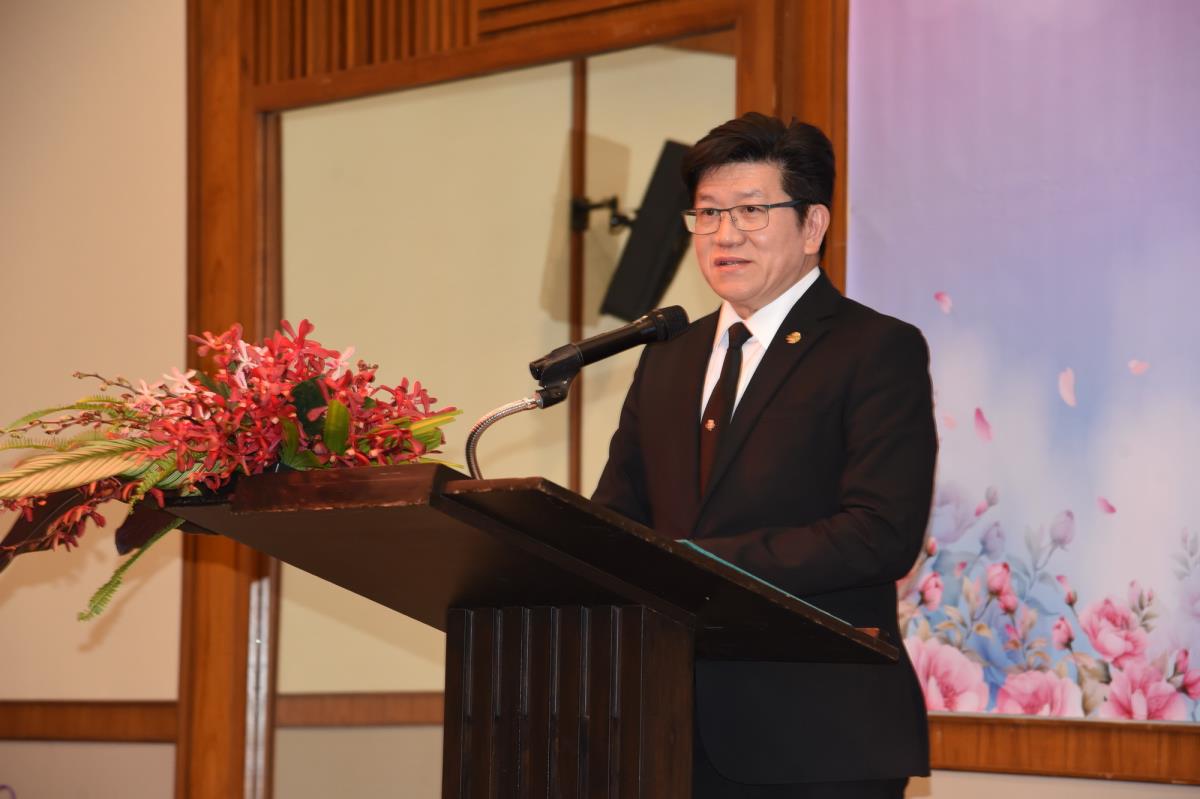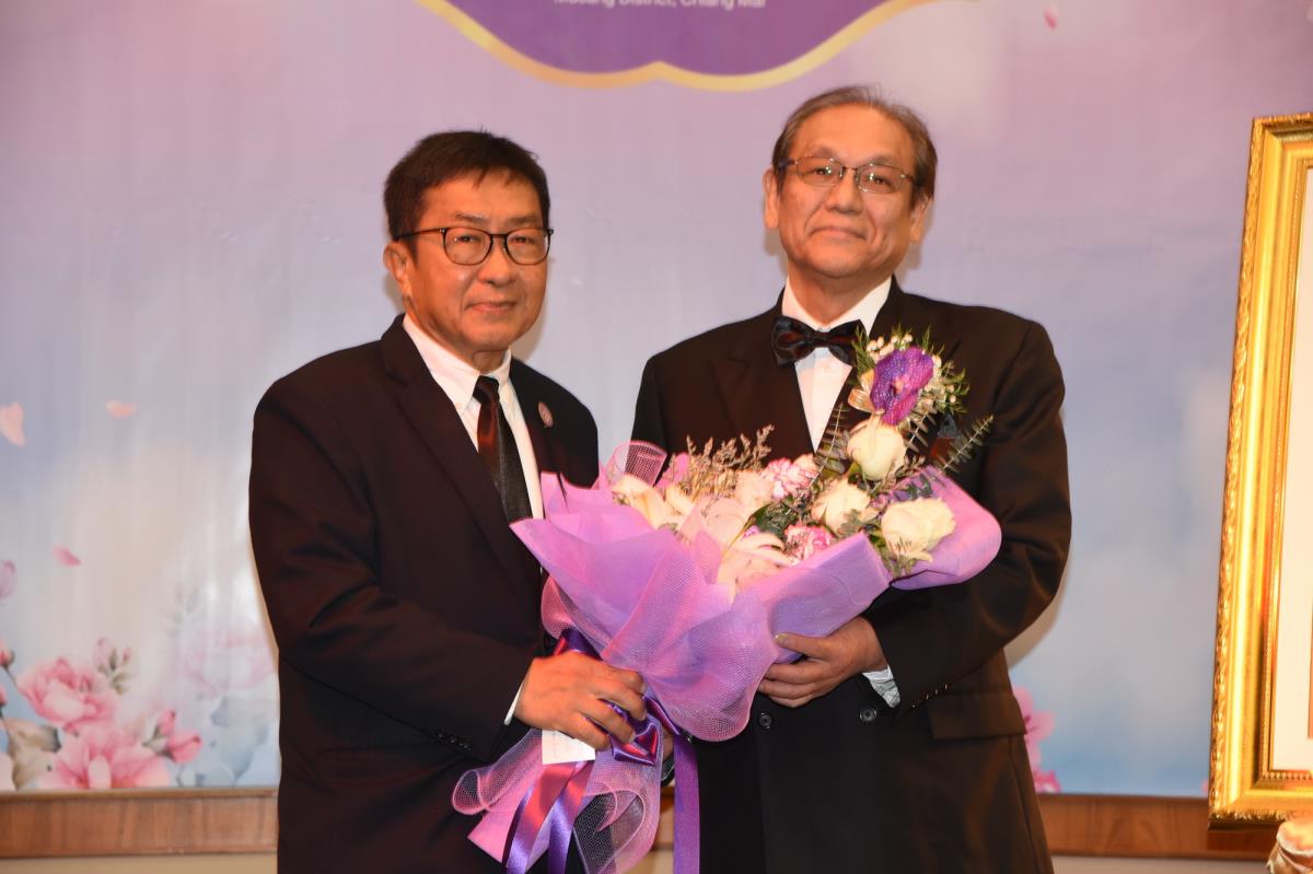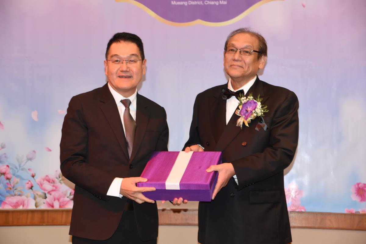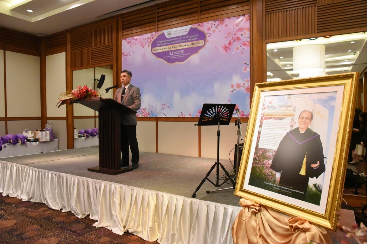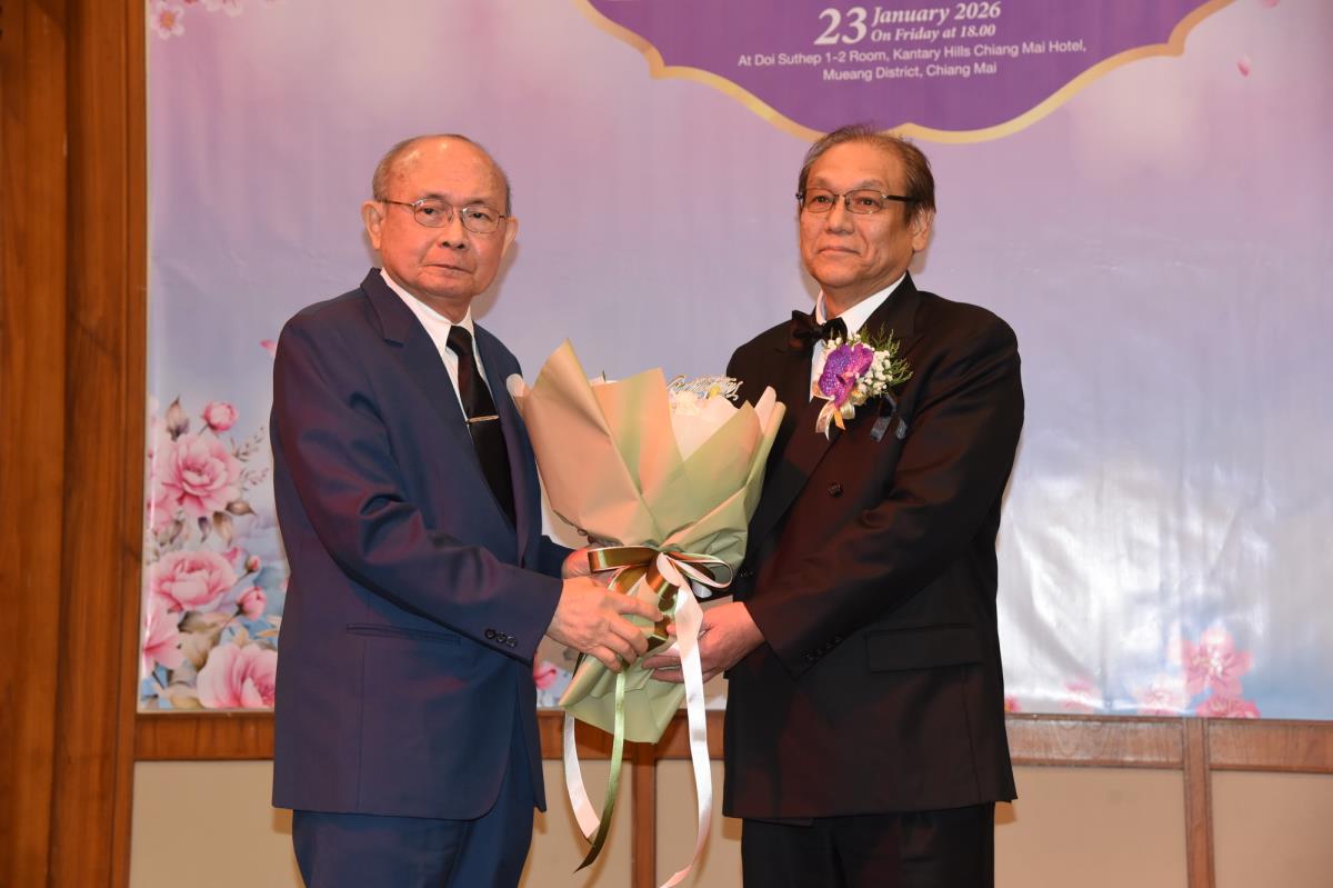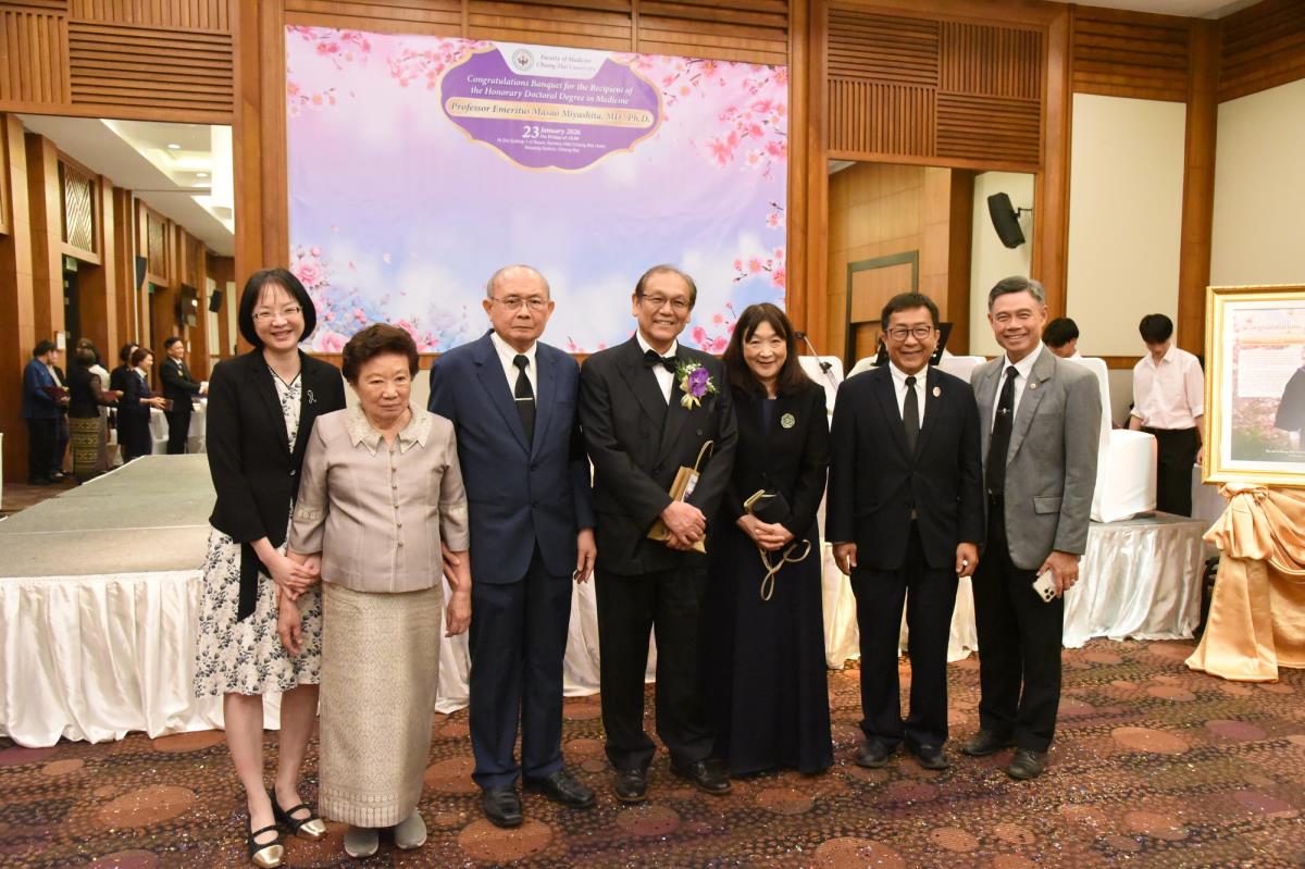 ศาสตราจารย์ ดร.นพ.พงษ์รักษ์ ศรีบัณฑิตมงคล อธิการบดีมหาวิทยาลัยเชียงใหม่ พร้อมด้วยศาสตราจารย์คลินิก นพ.นิเวศน์ นันทจิต เลขาธิการมูลนิธิขาเทียมในพระบรมราชูปถัมภ์ฯ อดีตอธิการบดีมหาวิทยาลัยเชียงใหม่ รองศาสตราจารย์ นายแพทย์นเรนทร์ โชติรสนิรมิต กล่าวแสดงความยินดีแก่ศาสตราจารย์กิตติคุณ นายแพทย์มาซาโอะ มิยาชิตะ (Professor Emeritus Masao Miyashita, MD, PhD) ในโอกาสที่ได้รับพระราชทานปริญญาบัตร ปริญญาปรัชญาดุษฎีบัณฑิตกิตติมศักดิ์ สาขาวิชาแพทยศาสตร์ (Honorary Doctoral Degree in Medicine) มหาวิทยาลัยเชียงใหม่ โดยมีคณะผู้บริหาร คณาจารย์ เจ้าหน้าที่ ร่วมพิธี ณ ห้องดอยสุเทพ 1-2 โรงแรมแคนทารี ฮิลส์ เชียงใหม่ วันศุกร์ที่ 23 มกราคม พ.ศ. 2569