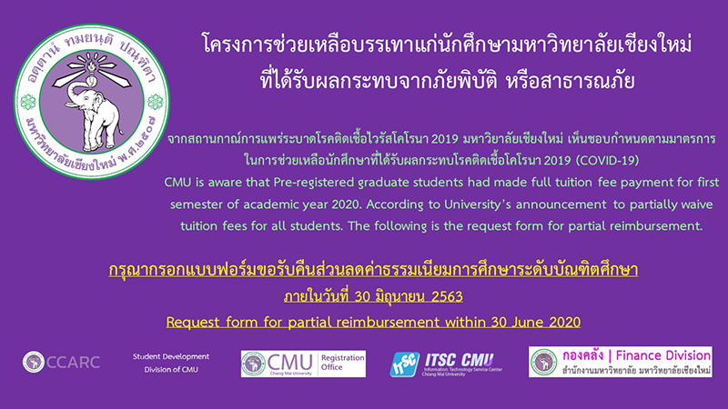ของโครงการช่วยเหลือบรรเทาแก่นักศึกษามหาวิทยาลัยเชียงใหม่ที่ได้รับผลกระทบจากภัยพิบัติ หรือสาธารณภัย