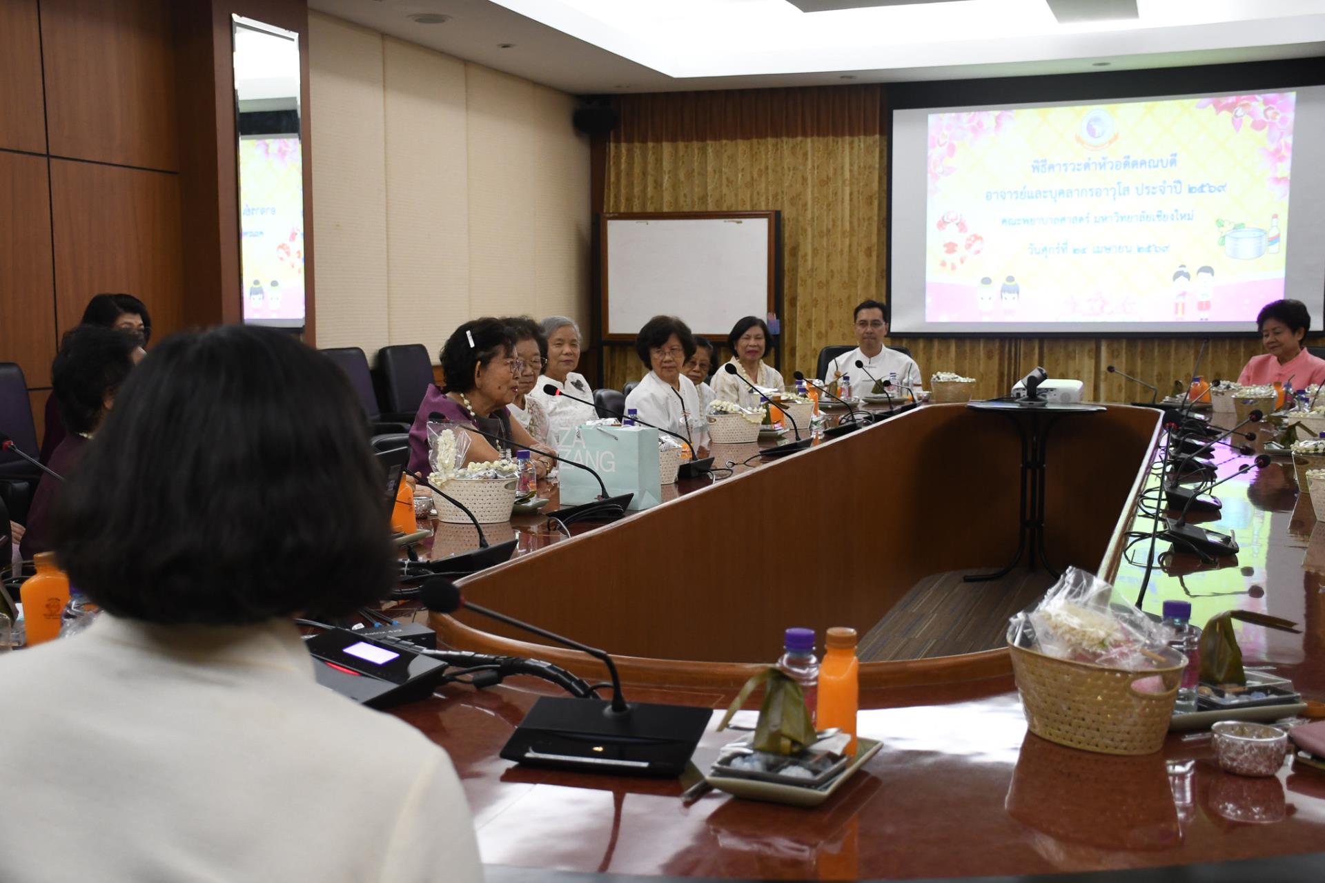 ผู้ช่วยศาสตราจารย์ ดร.สุภารัตน์ วังศรีคูณ คณบดี พร้อมด้วยคณะผู้บริหาร คณะพยาบาลศาสตร์ มหาวิทยาลัยเชียงใหม่ ร่วมพิธีสูมาคารวะดำหัวอดีตคณบดี อาจารย์ และบุคลากรอาวุโส เนื่องในป๋าเวณีปี๋ใหม่เมือง ประจำปี 2569 ในโอกาสนี้ รองศาสตราจารย์ประยงค์ ลิ้มตระกูล รองศาสตราจารย์อุบล นิวัติชัย และ ศาสตราจารย์เกียรติคุณ (เชี่ยวชาญพิเศษ) ดร.วิภาดา คุณาวิกติกุล ให้เกียรติกล่าวปั๋นปอนปีใหม่เพื่อความเป็นสิริมงคลในวันเริ่มต้นปีใหม่แบบไทย พิธีดังกล่าวจัดขึ้นเพื่อแสดงความกตัญญูกตเวทีต่อผู้มีพระคุณและร่วมอนุรักษ์สืบสานขนบธรรมเนียมประเพณีที่ล้ำค่าให้คงอยู่สืบไป ณ ห้องประชุมวิลาวัณย์ เสนารัตน์ อาคาร 4 เมื่อวันศุกร์ที่ 24 เมษายน 2569