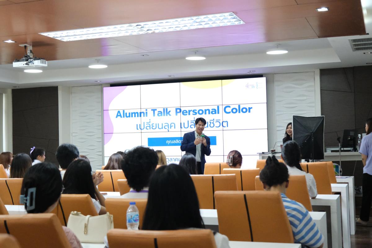 กิจกรรมในครั้งนี้จัดขึ้นเป็น 2 ช่วงหลัก โดยช่วงแรก Alumni Talk ถ่ายทอดมุมมองเกี่ยวกับโอกาสทางธุรกิจในตลาดแรงงาน โดยเน้นแนวคิดการ “ตั้งหลักก่อนเลือกองค์กร” ทั้งในมิติของรายละเอียดงานและอุตสาหกรรมธุรกิจ พร้อมแนะแนว การเตรียมความพร้อมสู่ตลาดแรงงาน โดยเฉพาะการปรับตัวเข้าสู่สังคมการทำงานอย่างมืออาชีพ และช่วงท้ายเป็นกิจกรรม Personal Color Workshop แนะนำหลักการของ Personal Color เพื่อช่วยให้นักศึกษารู้จักโทนสีที่เหมาะกับตนเอง และสามารถปรับลุค เสริมภาพลักษณ์ และเพิ่มความมั่นใจในการสื่อสารทั้งในชีวิตประจำวันและการทำงาน