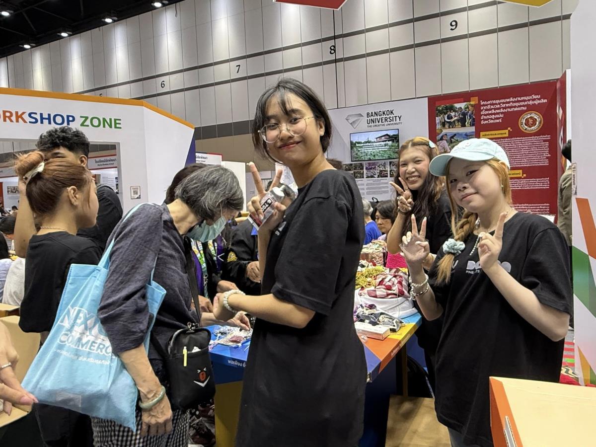 เมื่อวันที่ 30 กันยายน 2568 ณ ศูนย์การประชุมแห่งชาติสิริกิติ์ (QSNCC) กรุงเทพมหานคร อาจารย์ รศ.พิศมัย อาวะกุลพาณิชย์ และ ผศ.ภัทริน ลิมปรุ่งพัฒนกิจ ได้นำนักศึกษาจากกลุ่มวิชาแฟชั่นสิ่งทอของมหาวิทยาลัยฯ เดินทางเข้าร่วมกิจกรรมสร้างสรรค์ “พวงกุญแจจากเศษผ้าและเศษด้าย” ภายใต้การสนับสนุนของโครงการ EISA ซึ่งดำเนินการโดย บริษัท ไทยเบฟเวอเรจ จำกัด (มหาชน) เพื่อส่งเสริมให้นักศึกษาได้เรียนรู้การแปรรูปวัสดุเหลือใช้ (Up cycle) และสร้างสรรค์ผลิตภัณฑ์ที่มีมูลค่า พร้อมทั้งสะท้อนแนวคิดด้านความยั่งยืน