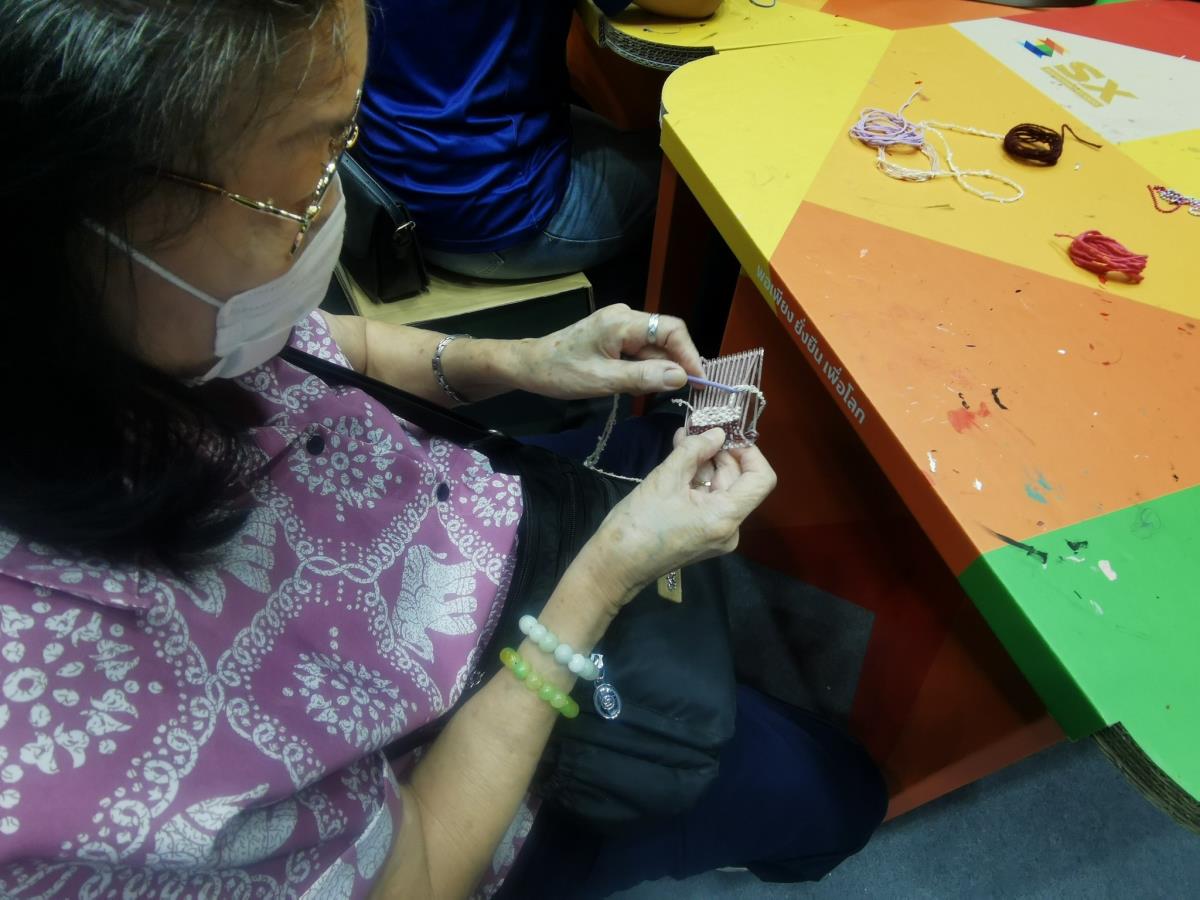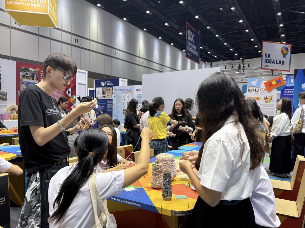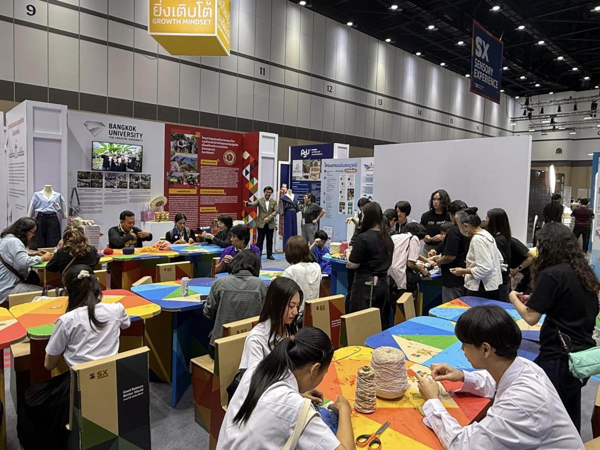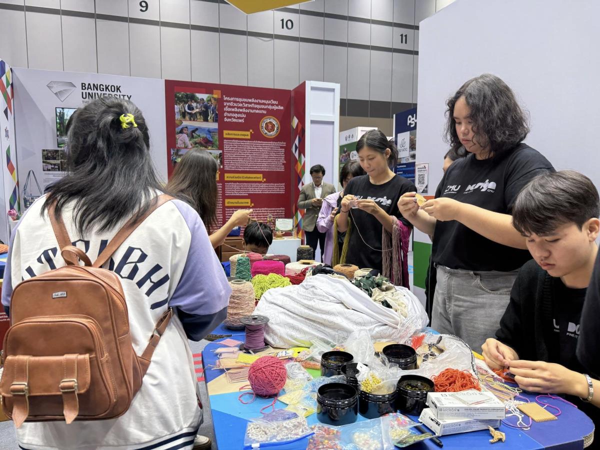 นักศึกษาสาขาแฟชั่นสิ่งทอ สร้างสรรค์พวงกุญแจจากเศษผ้าและเศษด้าย ภายใต้โครงการ Education Institute Support Activity (EISA) ณ ศูนย์การประชุมแห่งชาติสิริกิติ์
