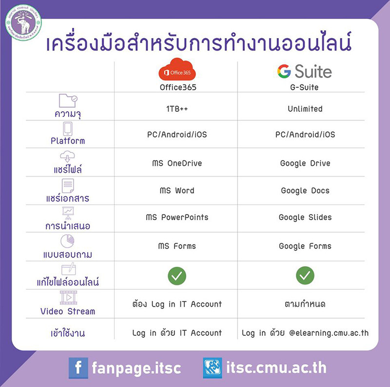 สำนักบริการเทคโนโลยีสารสนเทศ มหาวิทยาลัยเชียงใหม่ แนะนำเครื่องมือทำงานออนไลน์ การทำงานแบบ Work From Home ที่ทำให้ทุกคนสามารถทำงานได้อย่างราบรื่น สามารถขอรับคำปรึกษาและบริการ ได้ที่ สำนักบริการเทคโนโลยีสารสนเทศ มหาวิทยาลัยเชียงใหม่ โทรศัพท์ 0-5394-3827