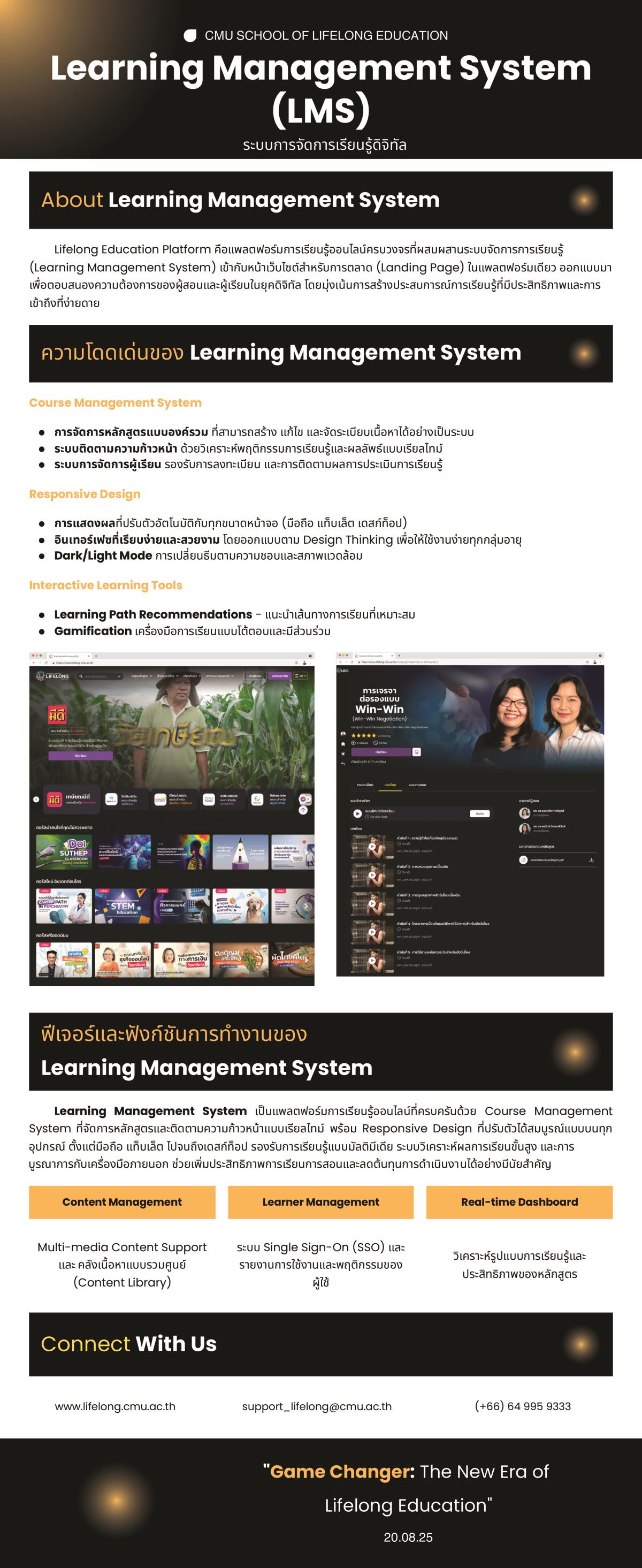 • เว็บไซต์ & LMS ใหม่ : ระบบ Learning Management System ที่พัฒนาขึ้นเองโดยเฉพาะ พร้อม UX/UI ทันสมัย ใช้งานง่าย จัดการได้แบบเรียลไทม์