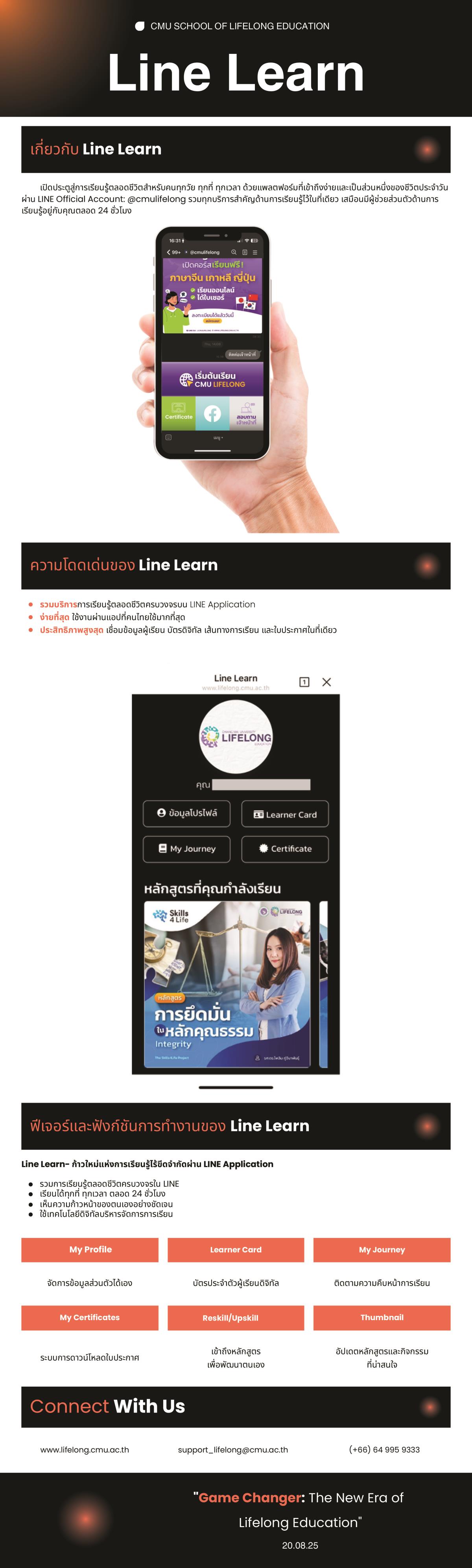 ติดตามข้อมูลเพิ่มเติมได้ที่ เว็บไซต:์ www.lifelong.cmu.ac.th LINE Official Account: @cmulifelong