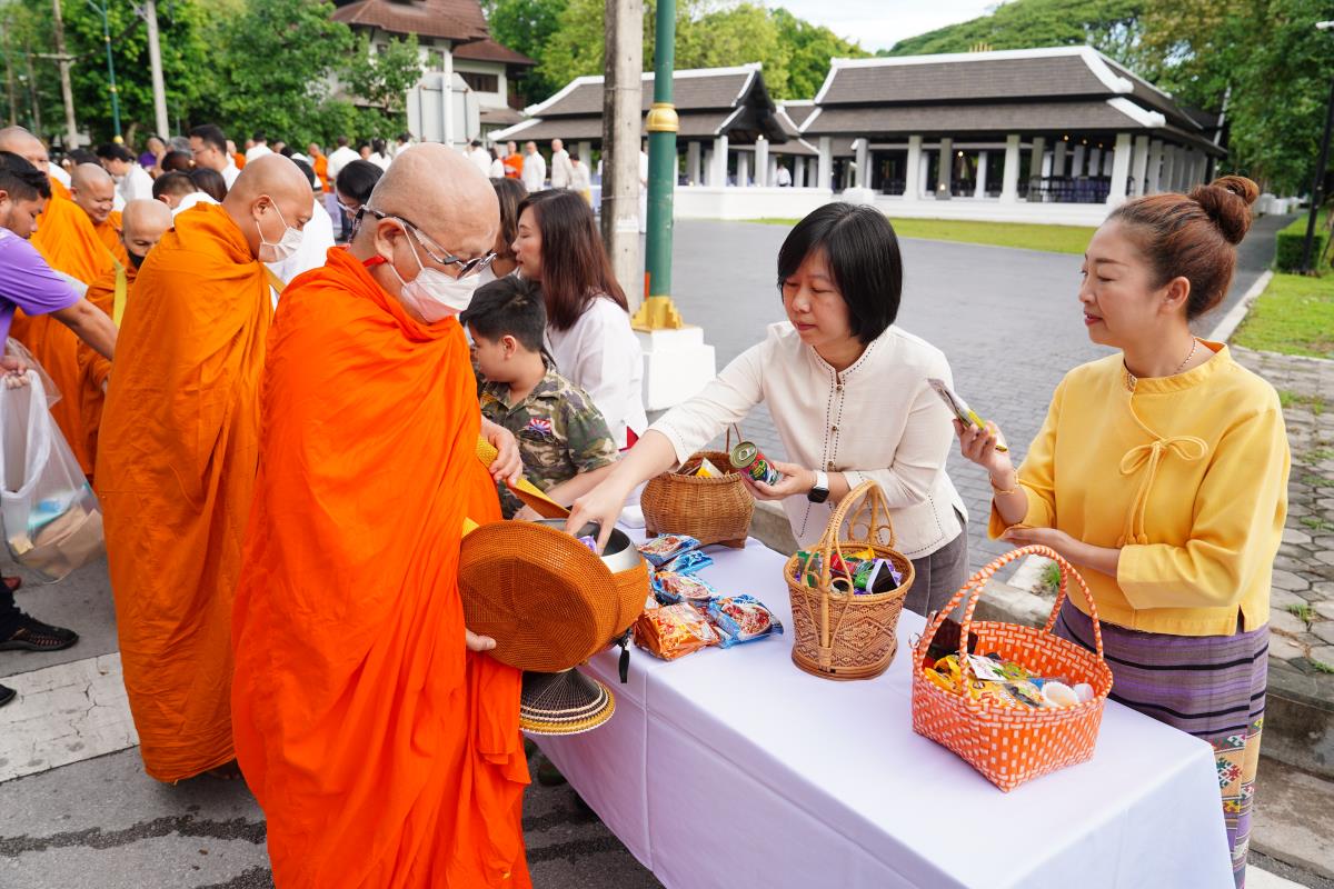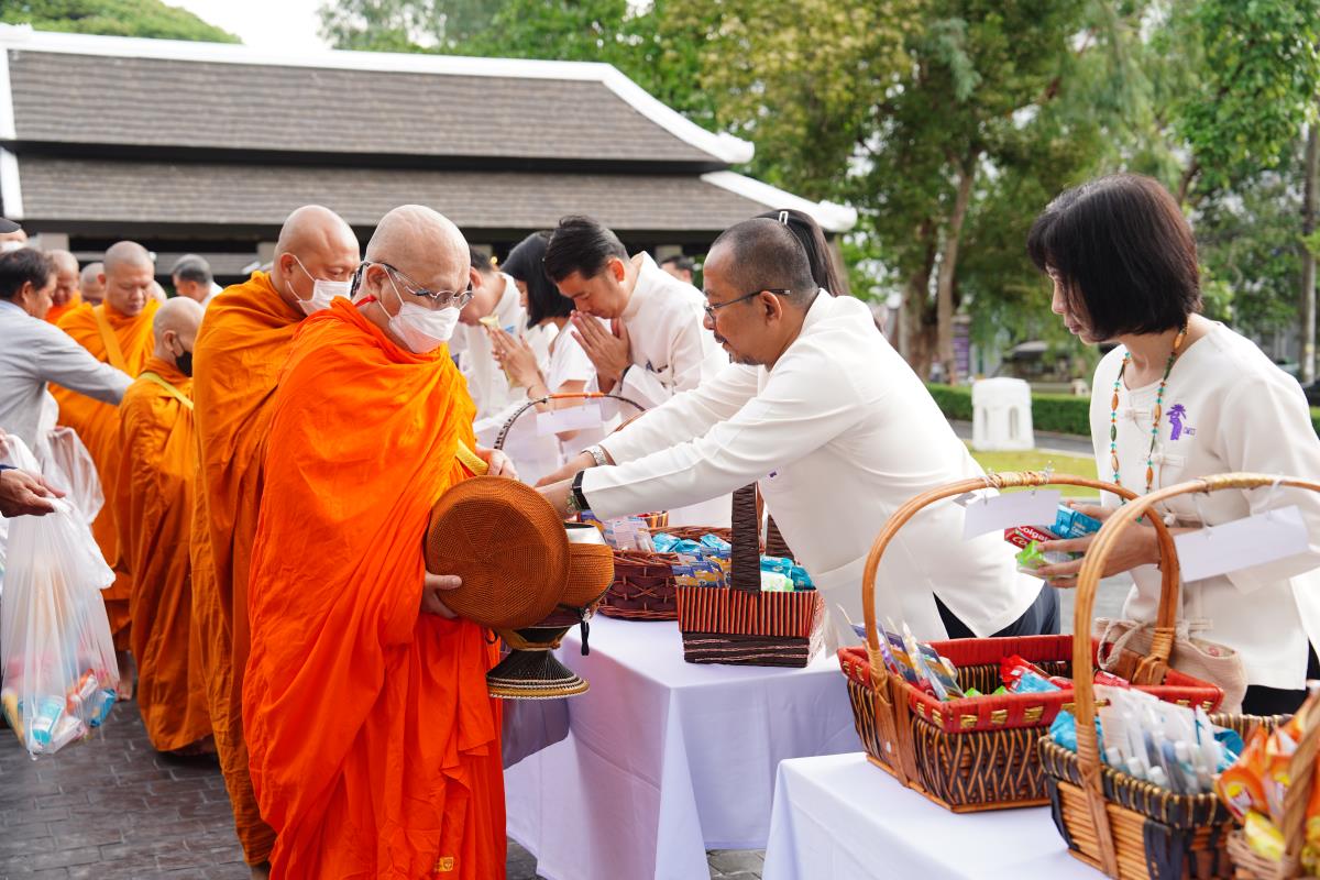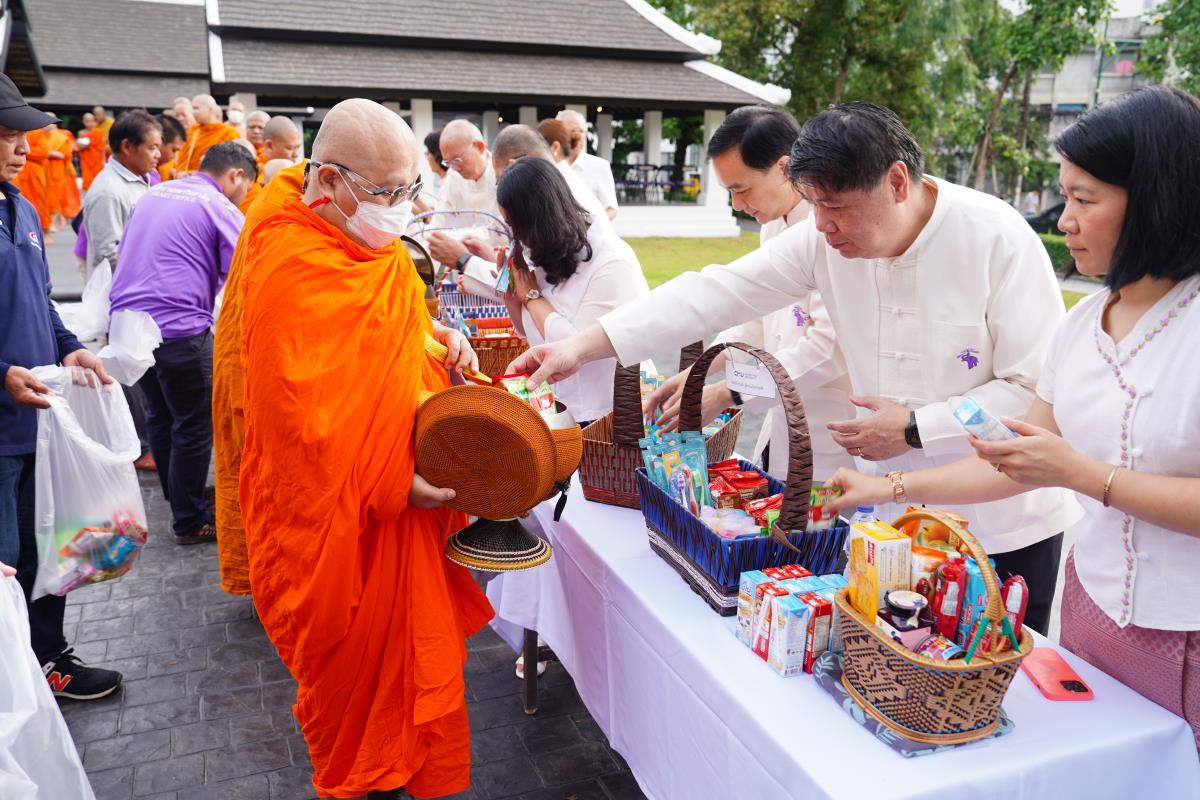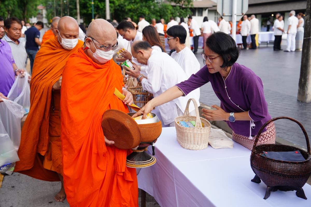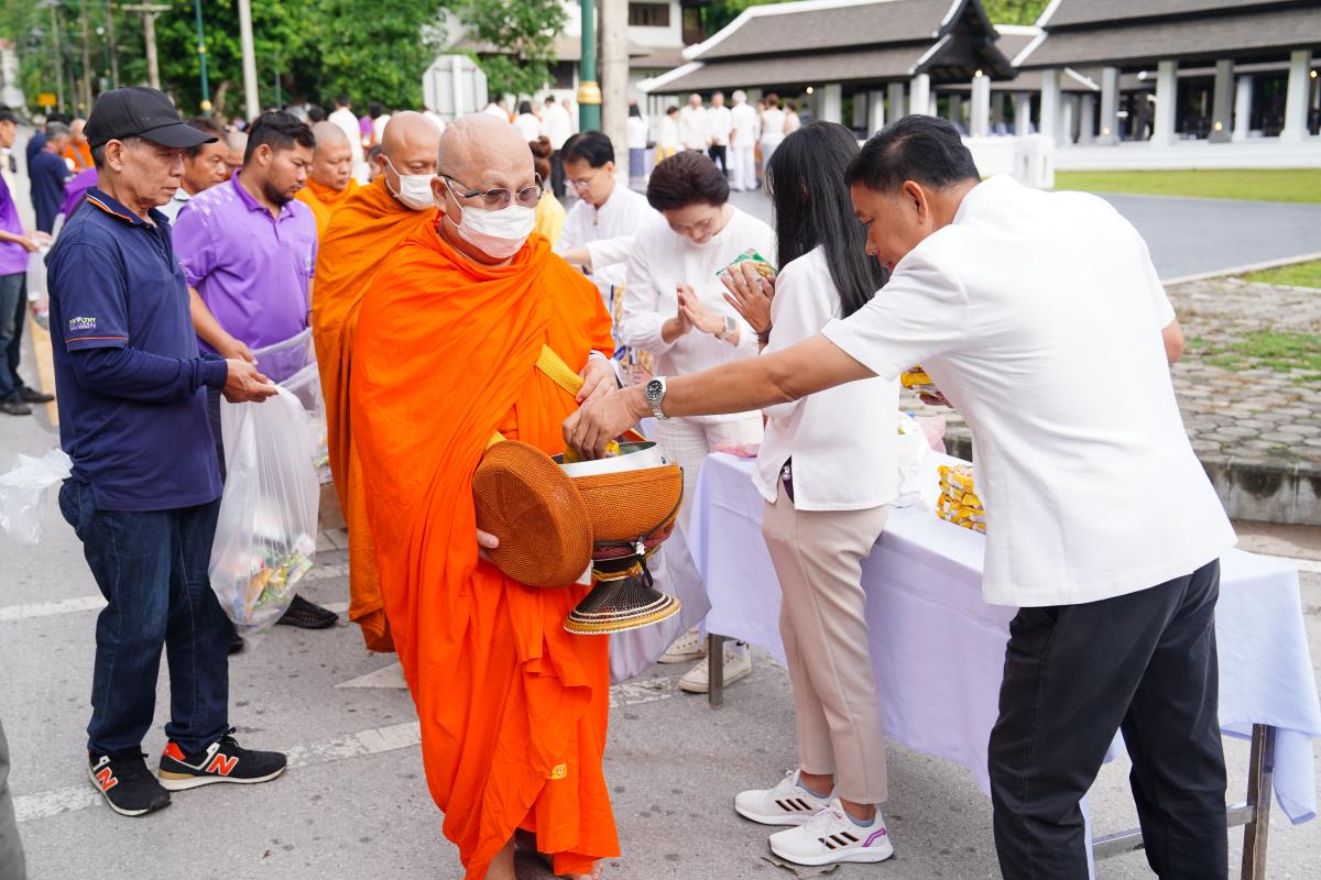 พิธีทำบุญตักบาตรข้าวสาร อาหารแห้ง ถวายแด่พระภิกษุ สามเณร เนื่องในวันวิสาขบูชา ประจำปี พ.ศ. 2567
