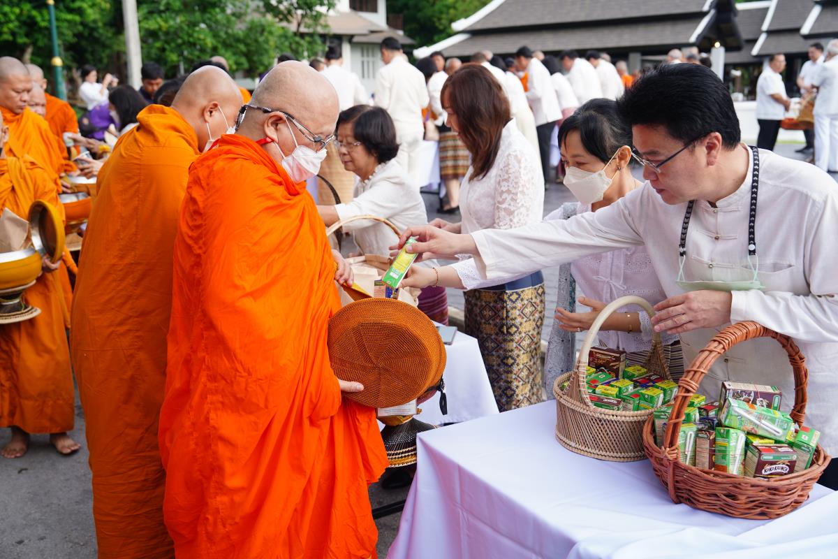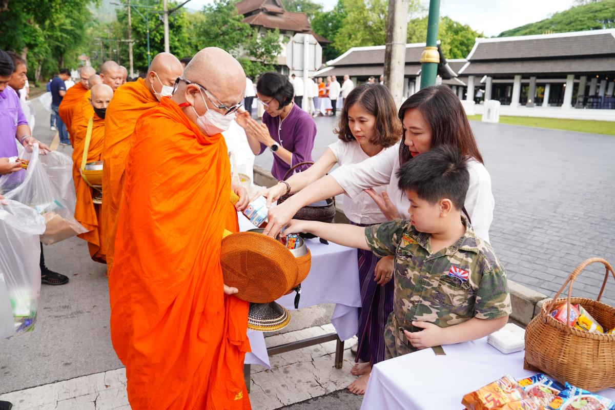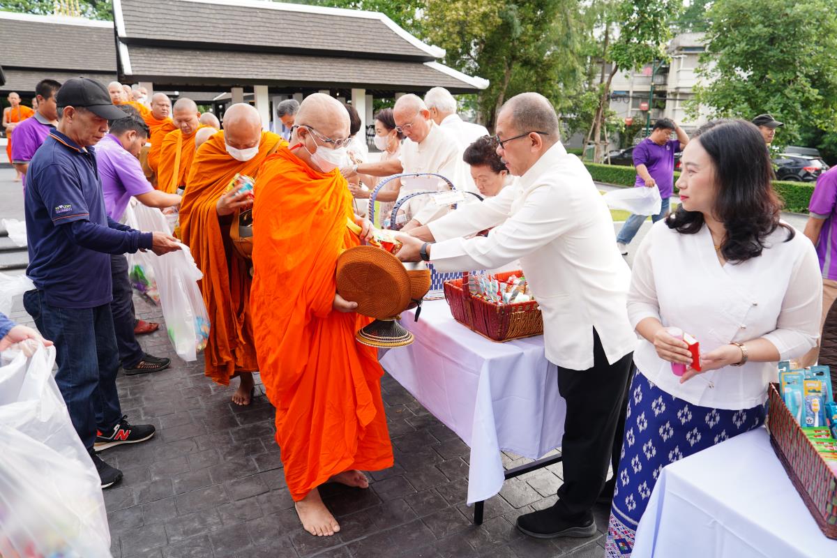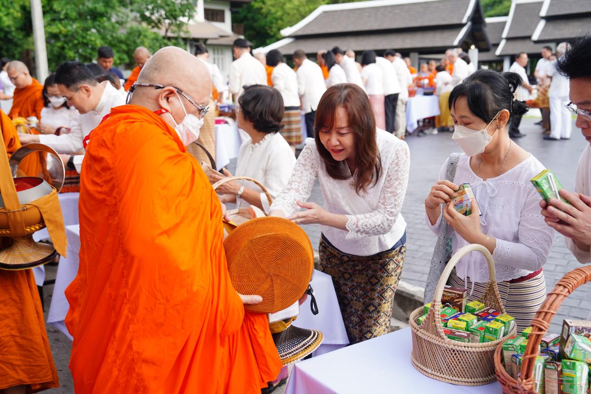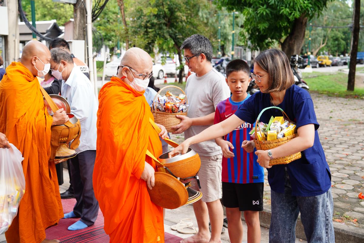 พิธีทำบุญตักบาตรข้าวสาร อาหารแห้ง ถวายแด่พระภิกษุ สามเณร เนื่องในวันวิสาขบูชา ประจำปี พ.ศ. 2567