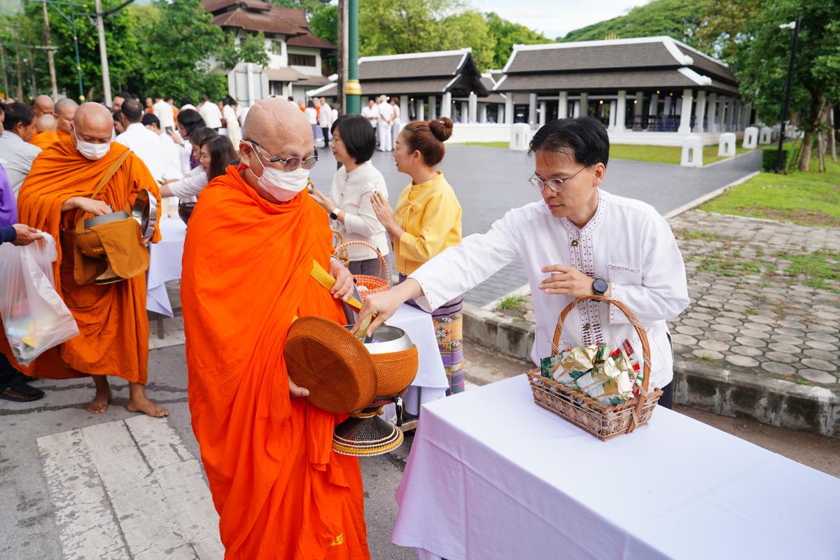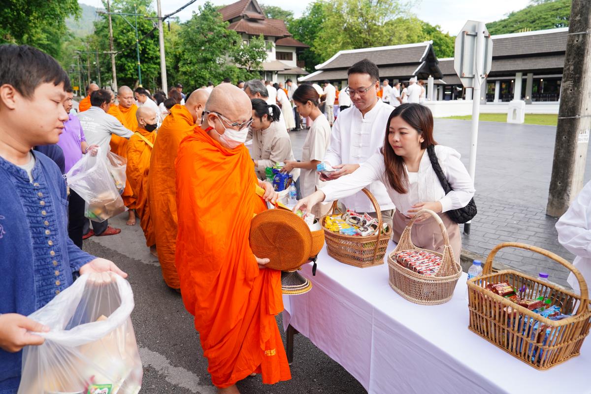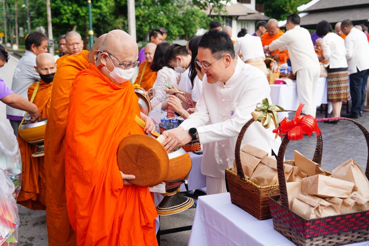 มหาวิทยาลัยเชียงใหม่ โดยคณะกรรมการดำเนินงานด้านส่งเสริมศาสนามหาวิทยาลัยเชียงใหม่ จัดพิธีทำบุญตักบาตร ข้าวสาร อาหารแห้ง ถวายแด่พระภิกษุ สามเณร เนื่องในวันวิสาขบูชา ประจำปี พ.ศ. 2567 โดยมี ศาสตราจารย์เกียรติคุณ ดร.พงษ์ศักดิ์ อังกสิทธิ์ อดีตอธิการบดีมหาวิทยาลัยเชียงใหม่ เป็นประธานในพิธีฯ พร้อมด้วย ศาสตราจารย์ ดร.นายแพทย์พงษ์รักษ์ ศรีบัณฑิตมงคล อธิการบดีมหาวิทยาลัยเชียงใหม่ ศาสตราจารย์คลินิก นพ.นิเวศน์ นันทจิต อดีตอธิการบดี คณะผู้บริหารมหาวิทยาลัยเชียงใหม่ คณาจารย์ ข้าราชการ เจ้าหน้าที่ นักศึกษาและพุทธศาสนิกชน ร่วมพิธีเป็นจำนวนมาก เพื่อความเป็นสิริมงคล สืบสานขนบธรรมเนียมประเพณีอันดีงาม และถวายเป็นพุทธบูชา เมื่อวันพุธที่ 22 พฤษภาคม พ.ศ. 2567 ณ ข่วงวัฒนธรรม มหาวิทยาลัยเชียงใหม่