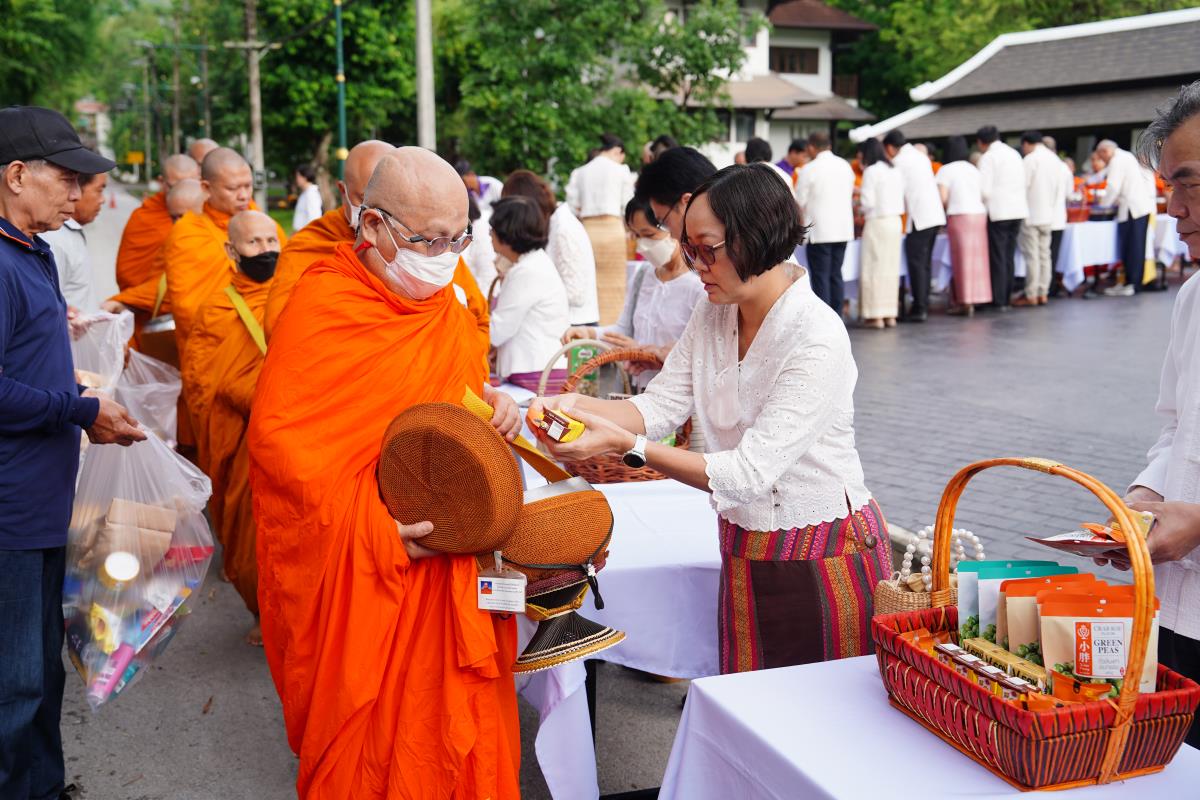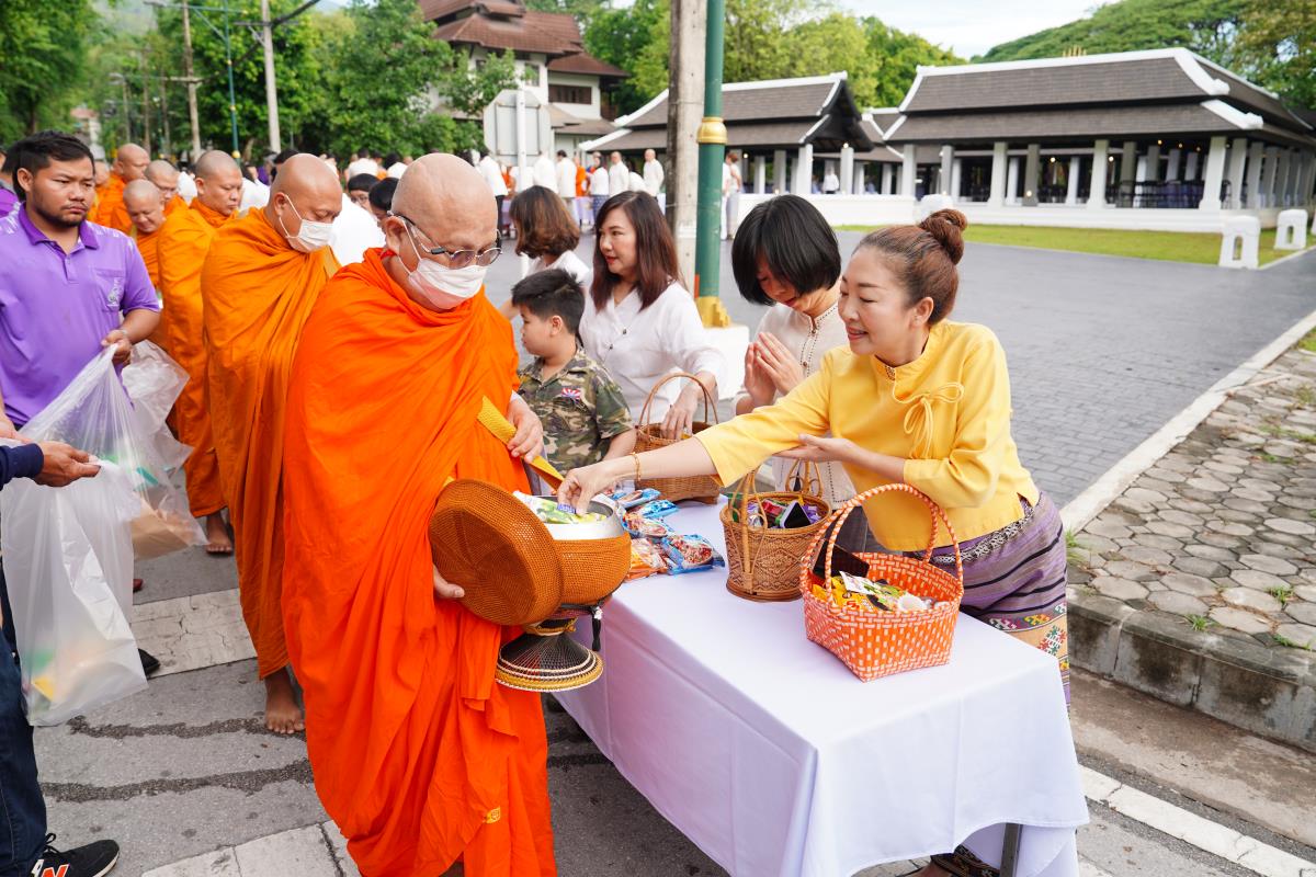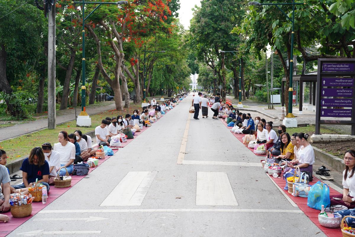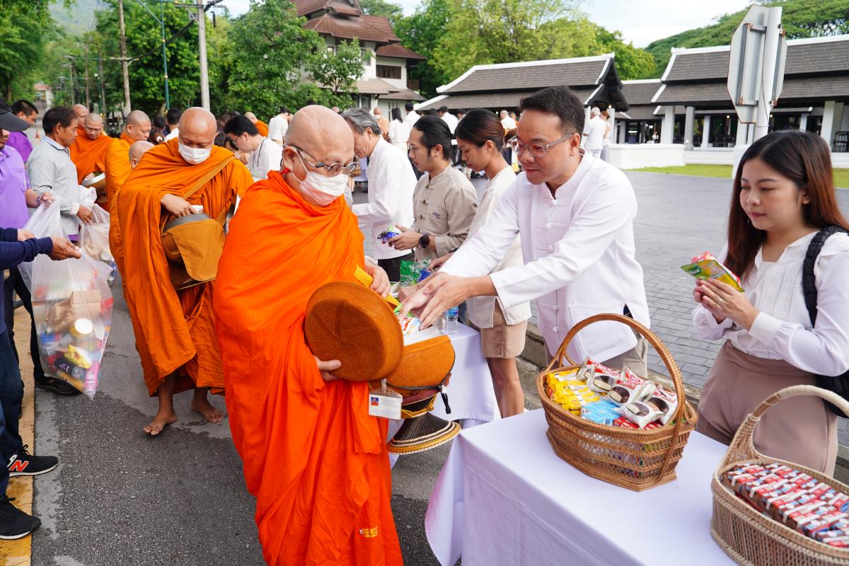 มหาวิทยาลัยเชียงใหม่ โดยคณะกรรมการดำเนินงานด้านส่งเสริมศาสนามหาวิทยาลัยเชียงใหม่ จัดพิธีทำบุญตักบาตร ข้าวสาร อาหารแห้ง ถวายแด่พระภิกษุ สามเณร เนื่องในวันวิสาขบูชา ประจำปี พ.ศ. 2567 โดยมี ศาสตราจารย์เกียรติคุณ ดร.พงษ์ศักดิ์ อังกสิทธิ์ อดีตอธิการบดีมหาวิทยาลัยเชียงใหม่ เป็นประธานในพิธีฯ พร้อมด้วย ศาสตราจารย์ ดร.นายแพทย์พงษ์รักษ์ ศรีบัณฑิตมงคล อธิการบดีมหาวิทยาลัยเชียงใหม่ ศาสตราจารย์คลินิก นพ.นิเวศน์ นันทจิต อดีตอธิการบดี คณะผู้บริหารมหาวิทยาลัยเชียงใหม่ คณาจารย์ ข้าราชการ เจ้าหน้าที่ นักศึกษาและพุทธศาสนิกชน ร่วมพิธีเป็นจำนวนมาก เพื่อความเป็นสิริมงคล สืบสานขนบธรรมเนียมประเพณีอันดีงาม และถวายเป็นพุทธบูชา เมื่อวันพุธที่ 22 พฤษภาคม พ.ศ. 2567 ณ ข่วงวัฒนธรรม มหาวิทยาลัยเชียงใหม่