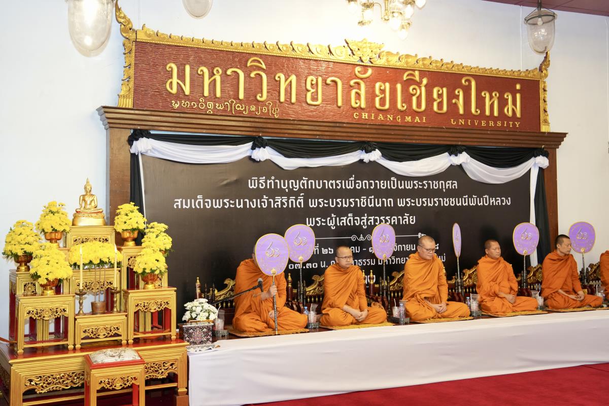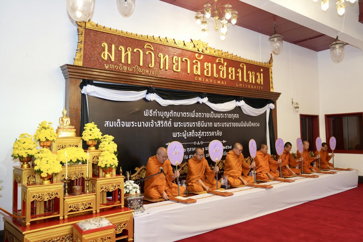 โดยมหาวิทยาลัยเชียงใหม่จะจัดพิธีทำบุญตักบาตรเพื่อถวายเป็นพระราชกุศล สมเด็จพระนางเจ้าสิริกิติ์ พระบรมราชินีนาถ พระบรมราชชนนีพันปีหลวง พระผู้เสด็จสู่สวรรคาลัยติดต่อกันเป็นเวลา 7 วัน ระหว่างวันอาทิตย์ที่ 26 ตุลาคม ถึงวันเสาร์ที่ 1 พฤศจิกายน 2568 เวลา 07.30 น. ณ ศาลาธรรม มหาวิทยาลัยเชียงใหม่ มีพระสงฆ์จำนวน 10 รูป จาก 7 วัด ร่วมพิธี