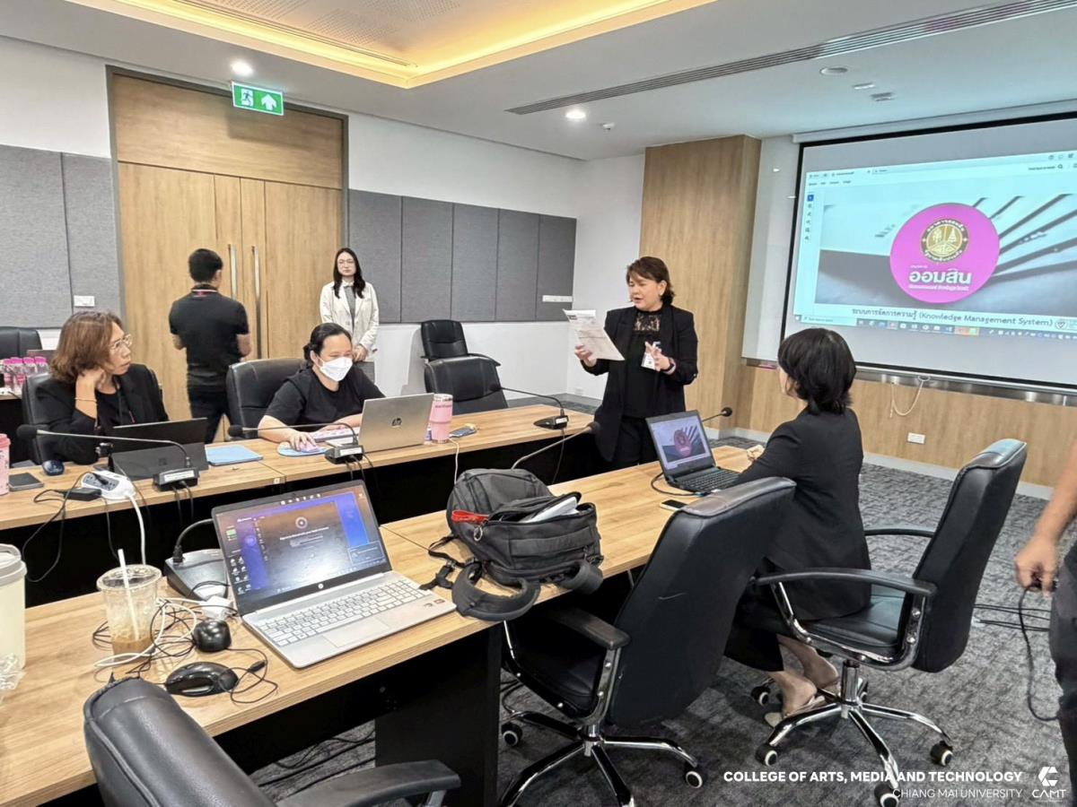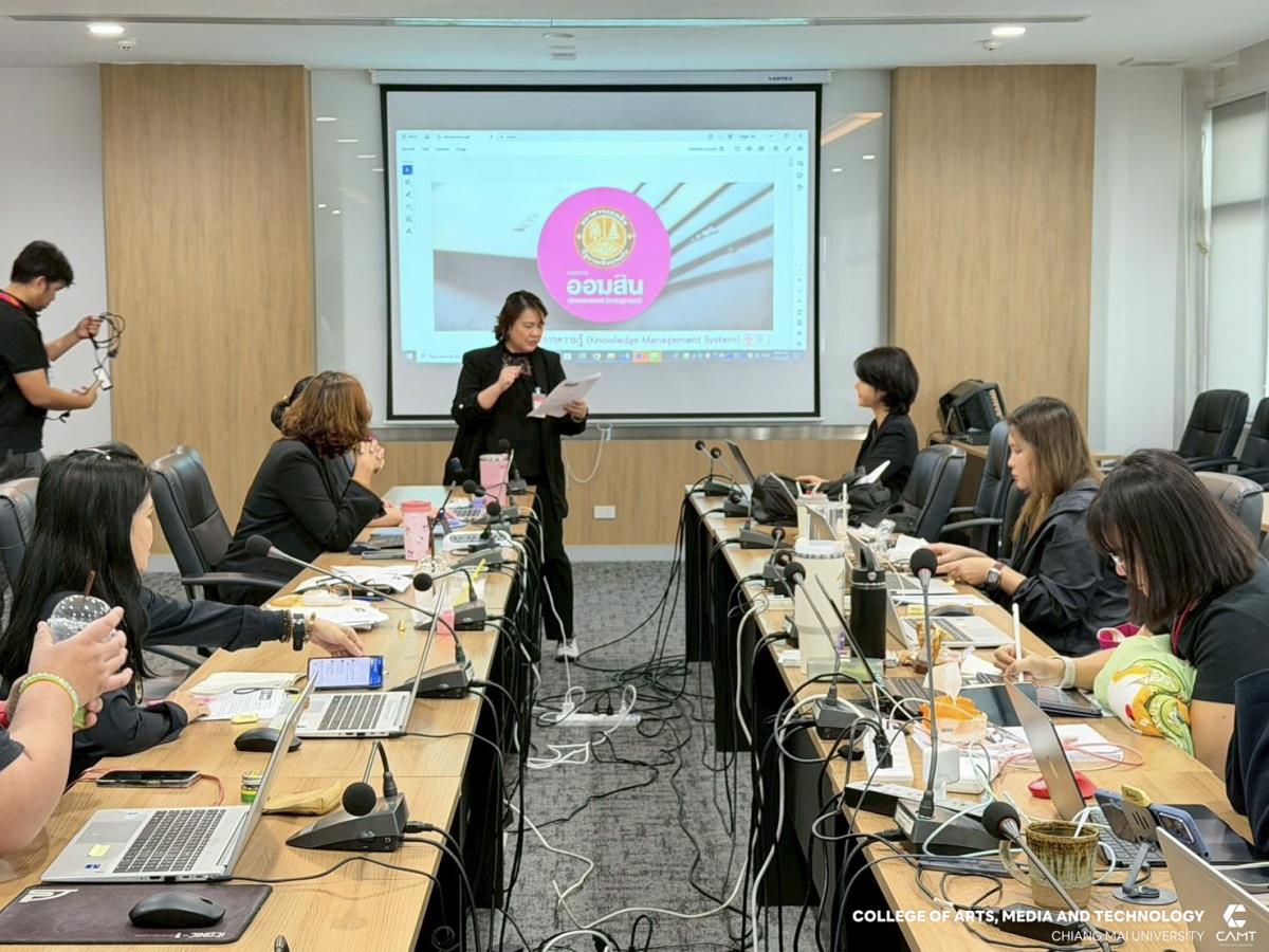ศูนย์การพัฒนาองค์ความรู้และการจัดการนวัตกรรม (Knowledge and Innovation Development: KIND) วิทยาลัยศิลปะ สื่อ และเทคโนโลยี มหาวิทยาลัยเชียงใหม่ ร่วมกับ ธนาคารออมสิน สำนักงานใหญ่ นำโดย ผู้ช่วยศาสตราจารย์ ดร.อัจฉรา คำอักษร ผู้ปฏิบัติหน้าที่ช่วยคณบดี ด้านการพัฒนาองค์ความรู้และการจัดการนวัตกรรม/ หัวหน้าศูนย์การพัฒนาองค์ความรู้และนวัตกรรม (Knowledge and Innovation Development: KIND) พร้อมด้วยคณะทำงาน ดำเนินการจัดอบรมเชิงปฏิบัติการภายใต้โครงการ "หลักสูตรการพัฒนาและเสริมสร้างขีดความสามารถด้านการจัดการความรู้ " ให้แก่ ทีมงานด้านการจัดการความรู้ ธนาคารออมสิน สำนักงานใหญ่ เพื่อยกระดับระบบการจัดการความรู้ให้สอดคล้องกับ มาตรฐานสากล ISO 30401:2018 และขับเคลื่อนองค์กรสู่การเป็น องค์กรแห่งการเรียนรู้อย่างยั่งยืน (Learning Organization) ระหว่างวันที่ 6 – 7 พฤศจิกายน 2568 ซึ่งหัวข้อในการอบรมครั้งนี้คือ “การตรวจประเมินภายในตามกรอบมาตรฐาน ISO 30401: 2018” โดยในการอบรมครั้งนี้ มีทีมงานด้านการจัดการความรู้จากธนาคารออมสินเข้าร่วมทั้งสิ้นจำนวน 13 ท่าน
