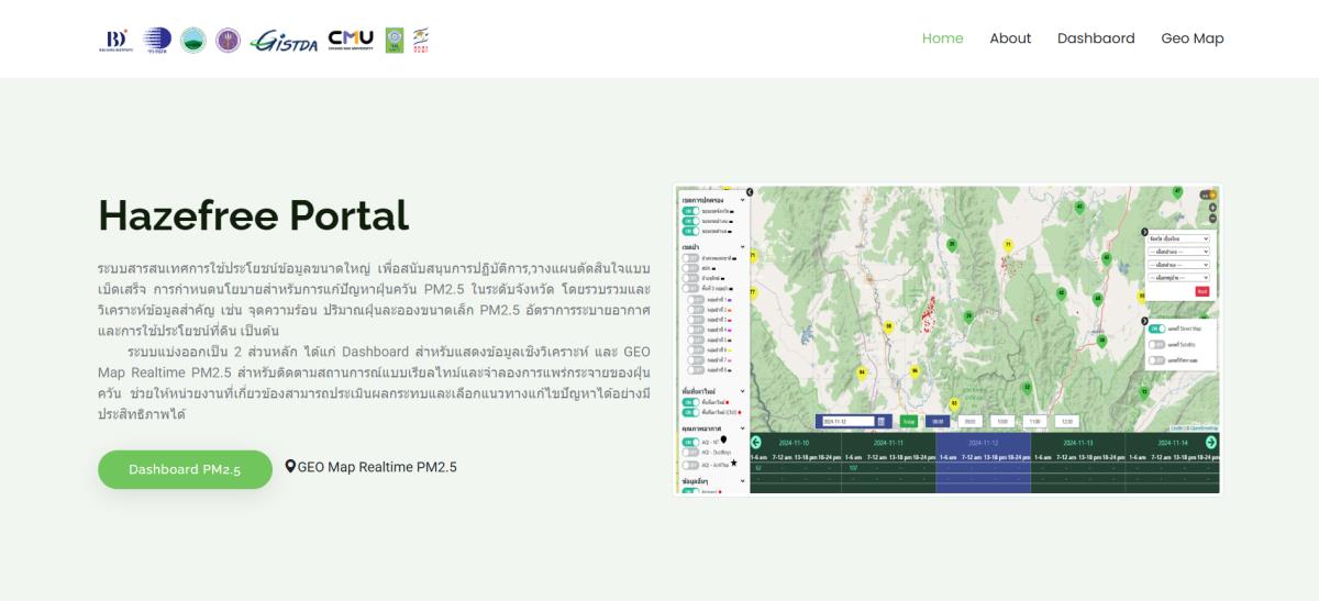 พร้อมกันนี้ ยังมีการต่อยอดนวัตกรรมเพื่อคุ้มครองสุขภาพประชาชนและกลุ่มเปราะบาง ผ่านโครงการ CleanAirNET ชุดกล่องลังฟอกอากาศ DIY และการพัฒนาระบบสนับสนุนการจัดการเชื้อเพลิงชีวมวล “FireD” รวมถึงการจัดทำฐานข้อมูล Baseline ของจุดความร้อนและฝุ่น PM2.5 ใน 9 จังหวัดภาคเหนือตอนบน เพื่อสนับสนุนการขับเคลื่อนนโยบายแบบใช้ข้อมูลเป็นฐานอย่างมีประสิทธิภาพ