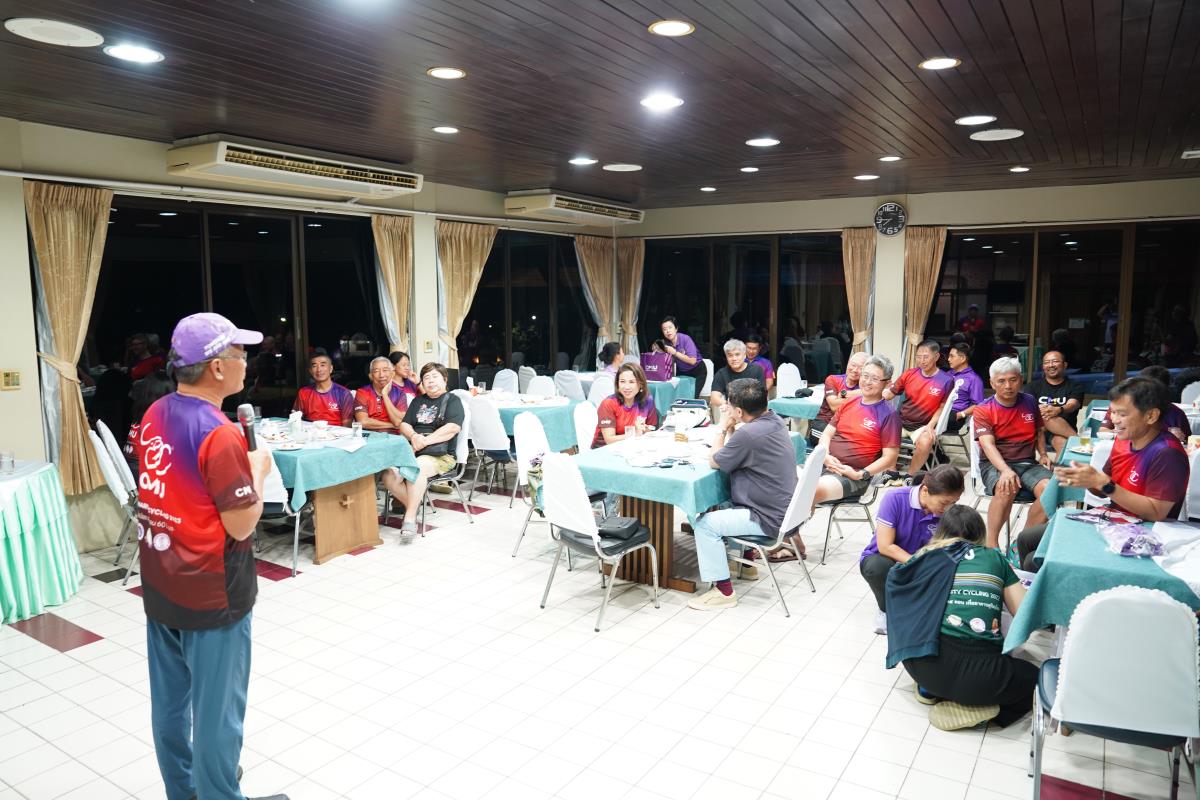 ชมรมนักศึกษาเก่ามหาวิทยาลัยเชียงใหม่ จังหวัดตาก จัดงานเลี้ยงต้อนรับนักปั่นเพื่อน้อง กรุงเทพ-เชียงใหม่ ครั้งที่ 6 ตอน 60 ปี มช. โดยมีคุณอารักษ์ อนุชปรีชา ผู้อำนวยการวิทยาลัยชุมชนตาก ประธานชมรมนักศึกษาเก่ามหาวิทยาลัยเชียงใหม่ จังหวัดตาก พร้อมด้วยผู้ช่วยศาสตราจารย์ ดร.ปิติพงษ์ ยอดมงคล รองอธิการบดีมหาวิทยาลัยเชียงใหม่ คณะผู้บริหารมหาวิทยาลัยเชียงใหม่ ชมรมนักศึกษาเก่ามหาวิทยาลัยเชียงใหม่ จังหวัดตาก และจังหวัดใกล้เคียง ร่วมให้การต้อนรับนักปั่นฯ ณ ร้านอาหารเฮือนภูแก้ว เขื่อนภูมิพล จ.ตาก เมื่อวันอังคารที่ 14 พฤศจิกายน พ.ศ.2566