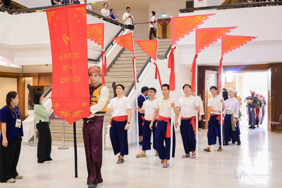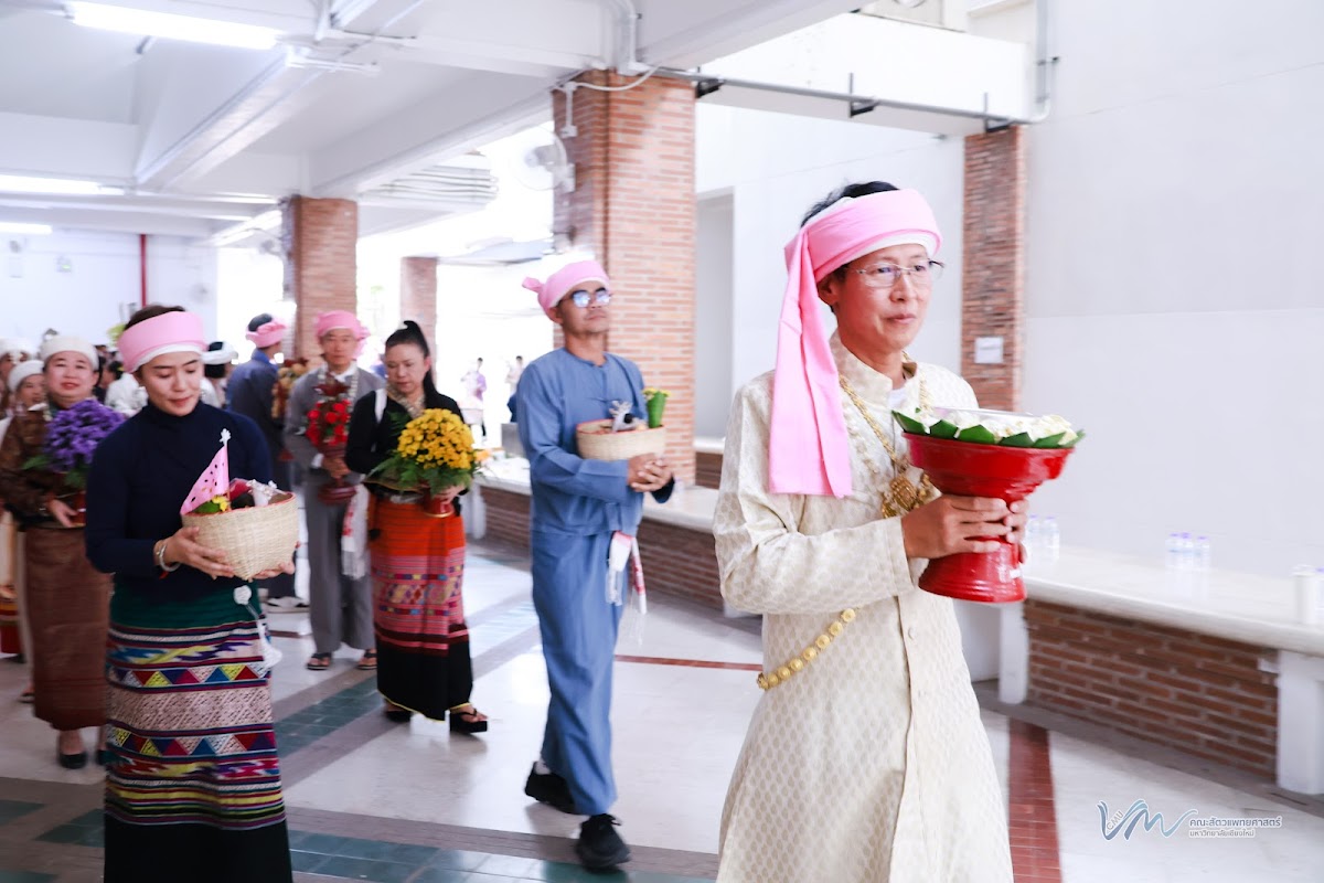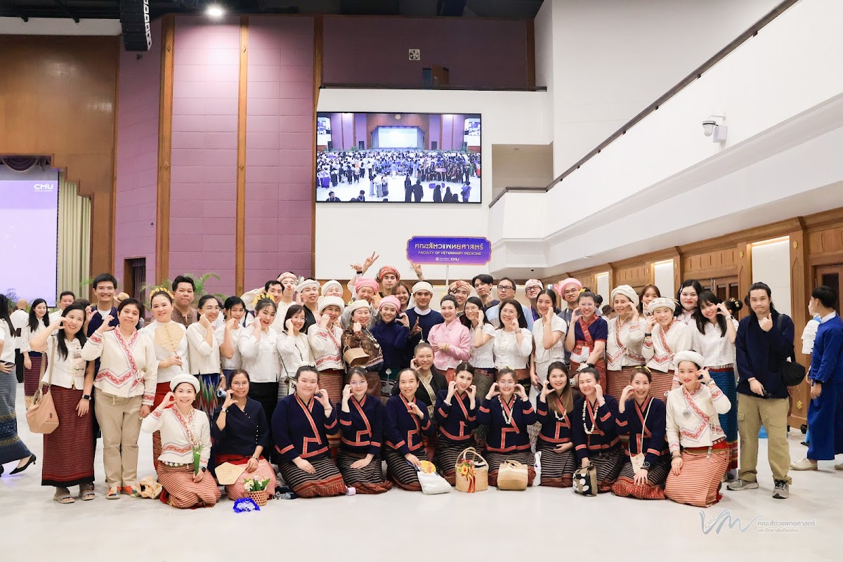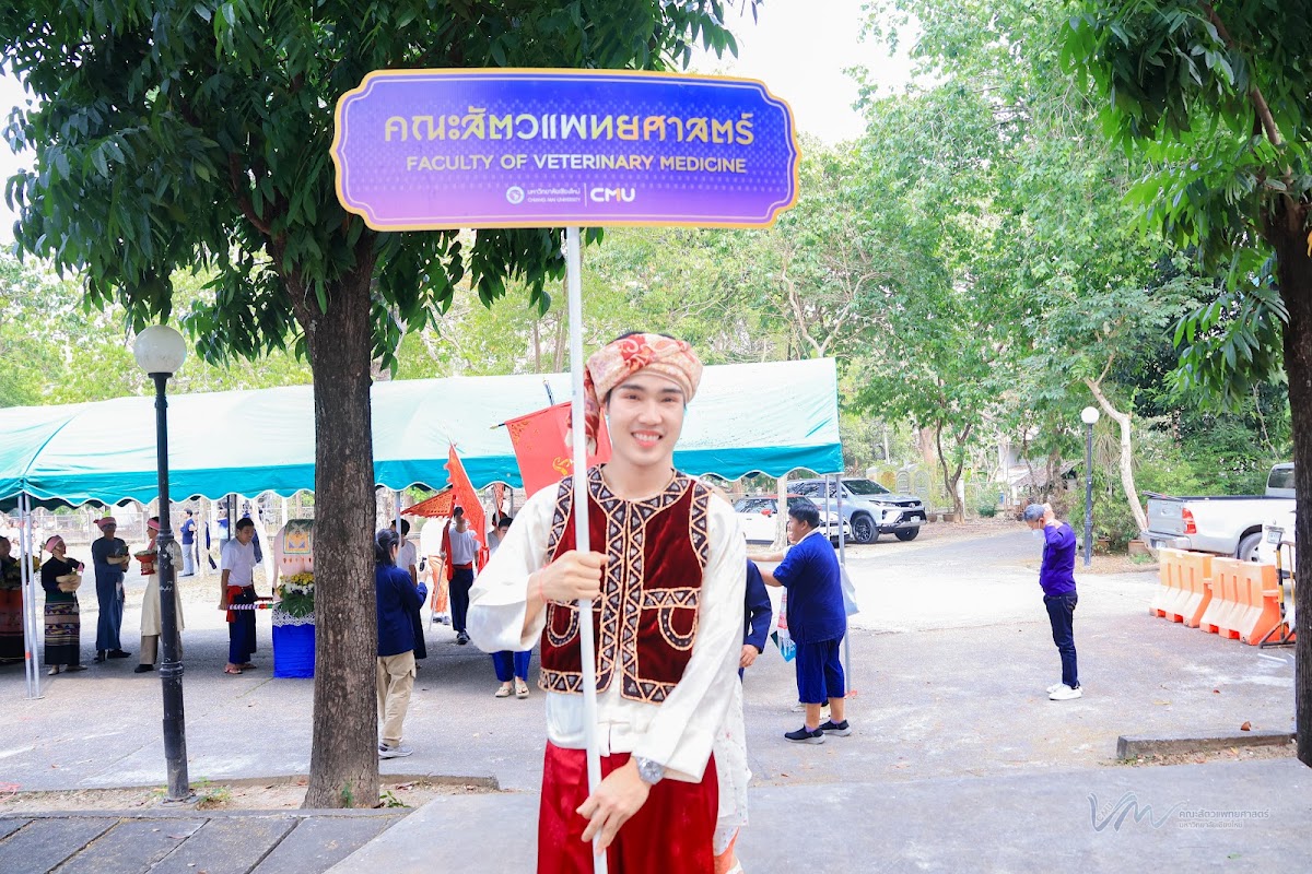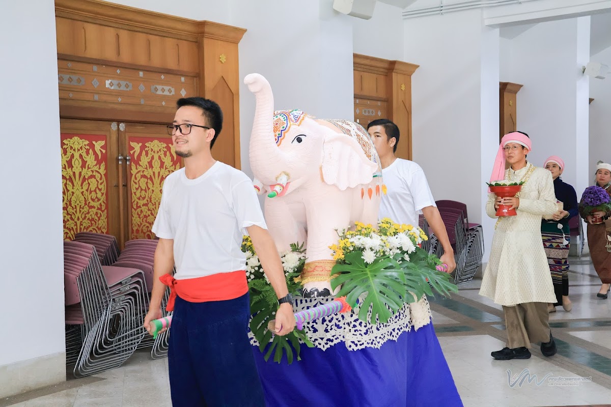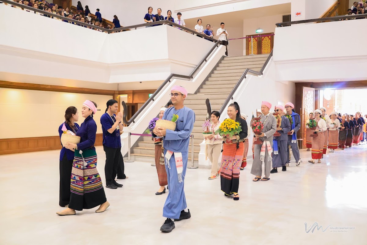 ในโอกาสนี้ คณะสัตวแพทยศาสตร์ได้เข้าร่วมการประกวดรูปขบวน ในธีม “ไทลื้อเรืองรอง คชสารทองมงคล” และการประกวดการแต่งกายพื้นเมืองล้านนา สะท้อนอัตลักษณ์และความงดงามของวัฒนธรรมท้องถิ่น พิธีดังกล่าวจัดขึ้นอย่างงดงามตามแบบประเพณีล้านนา โดยมีขบวนแห่จากส่วนงานต่าง ๆ ของมหาวิทยาลัยเคลื่อนเข้าสู่บริเวณพิธี ท่ามกลางเสียงดนตรีพื้นเมืองและการแสดงฟ้อนเล็บอันอ่อนช้อย สร้างบรรยากาศที่เปี่ยมด้วยคุณค่าทางวัฒนธรรมและความอบอุ่น การเข้าร่วมพิธีในครั้งนี้ นับเป็นโอกาสสำคัญในการสืบสาน อนุรักษ์ และส่งเสริมขนบธรรมเนียมประเพณีอันดีงามของล้านนา ตลอดจนเสริมสร้างความสัมพันธ์อันดีระหว่างคณาจารย์ บุคลากร นักศึกษา และศิษย์เก่าของมหาวิทยาลัยเชียงใหม่