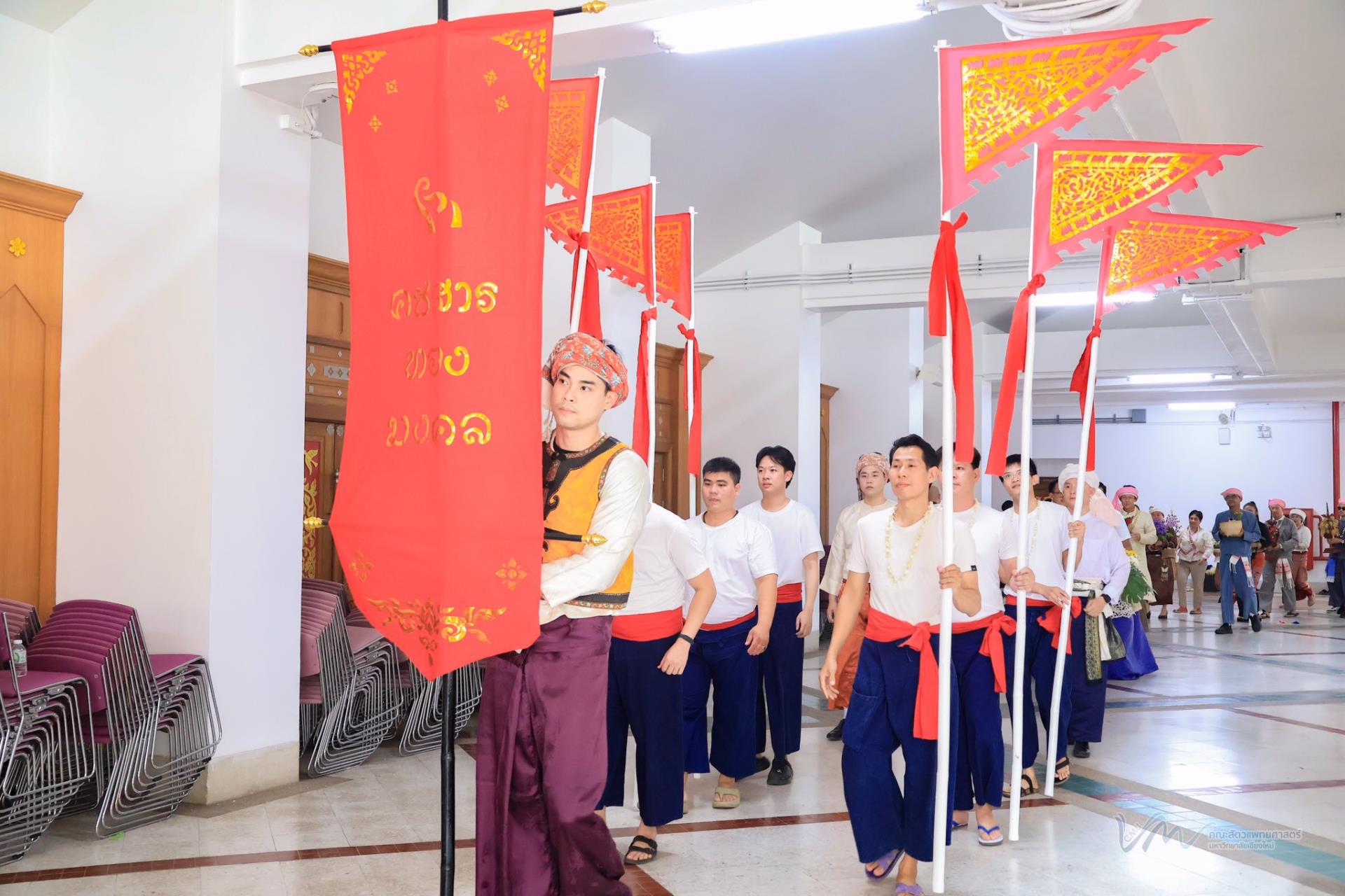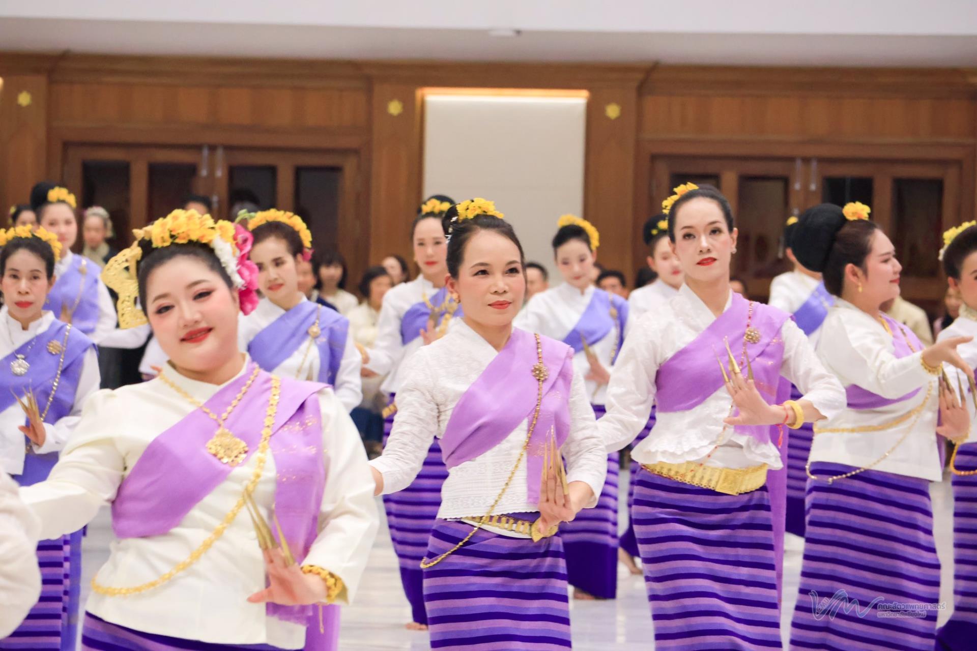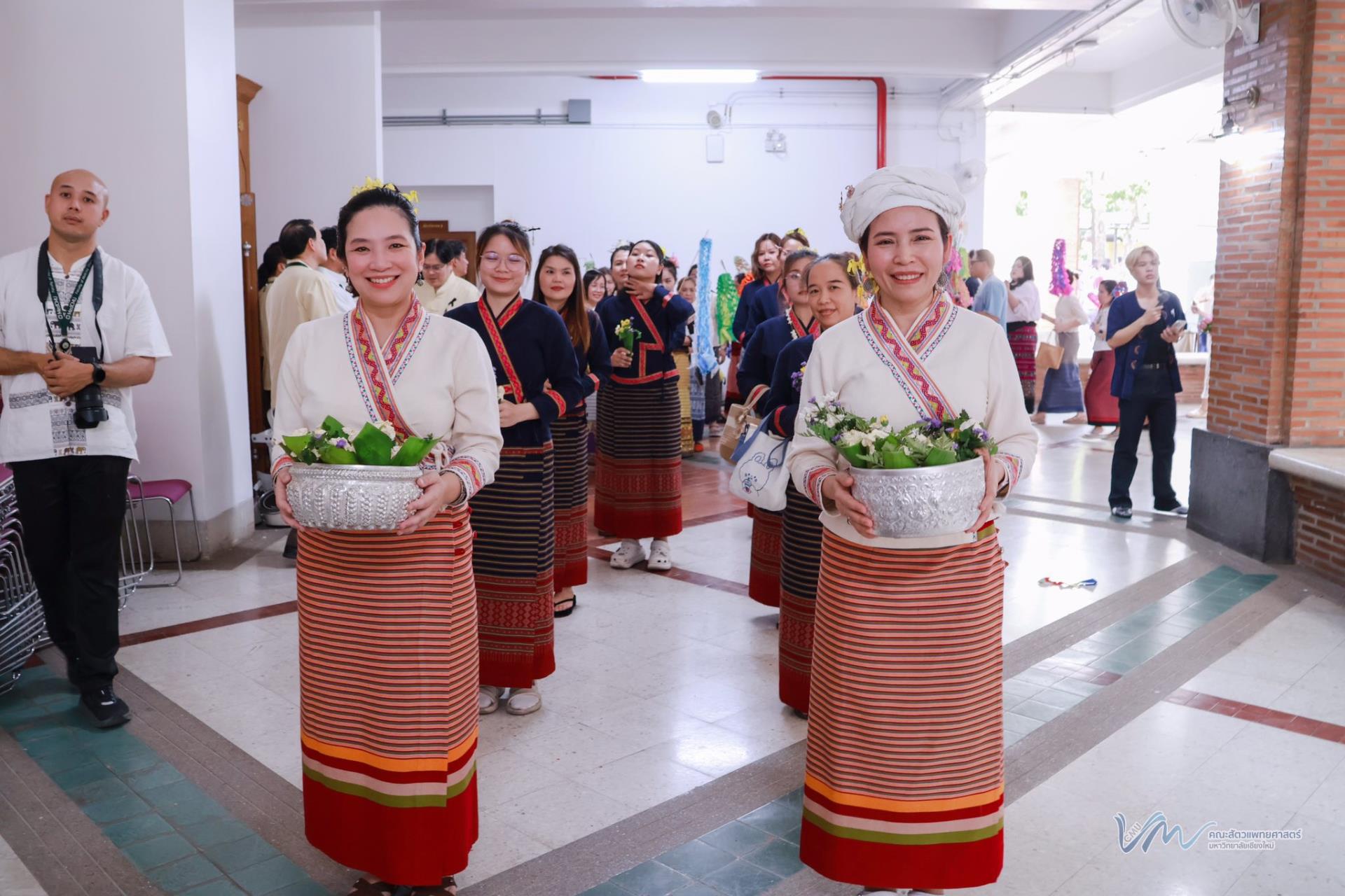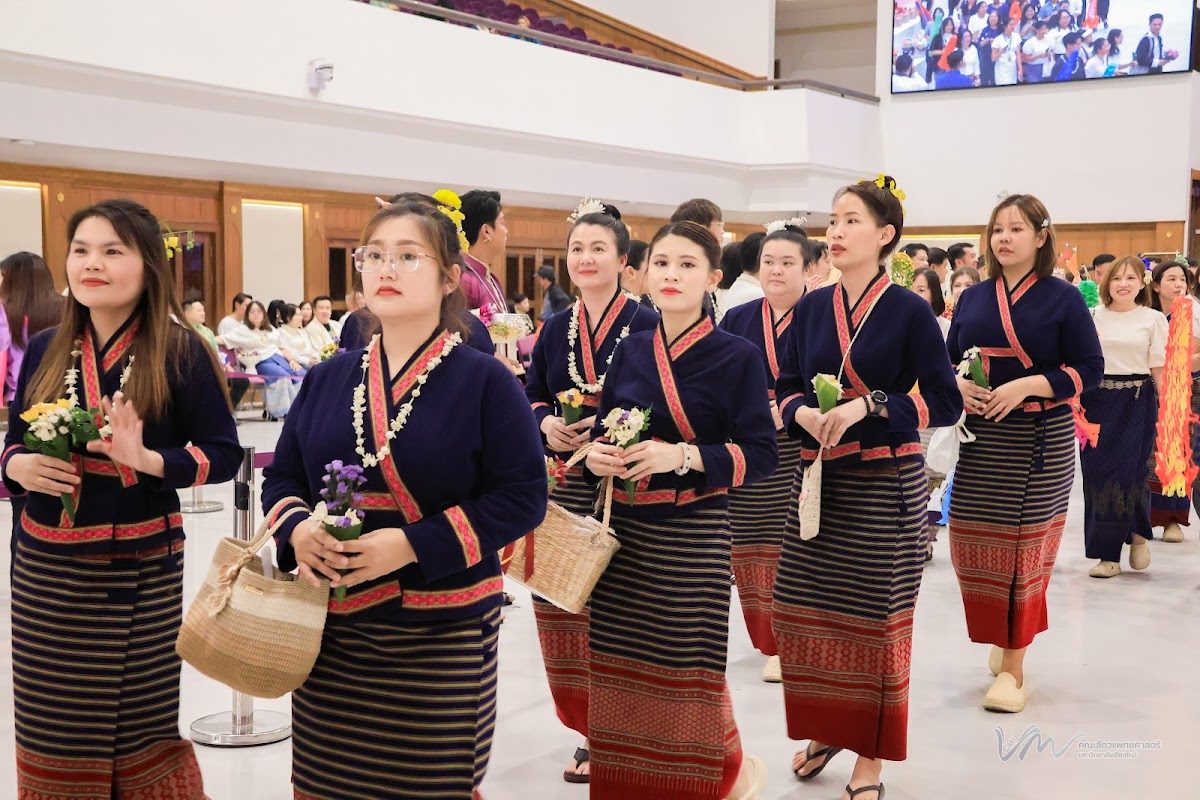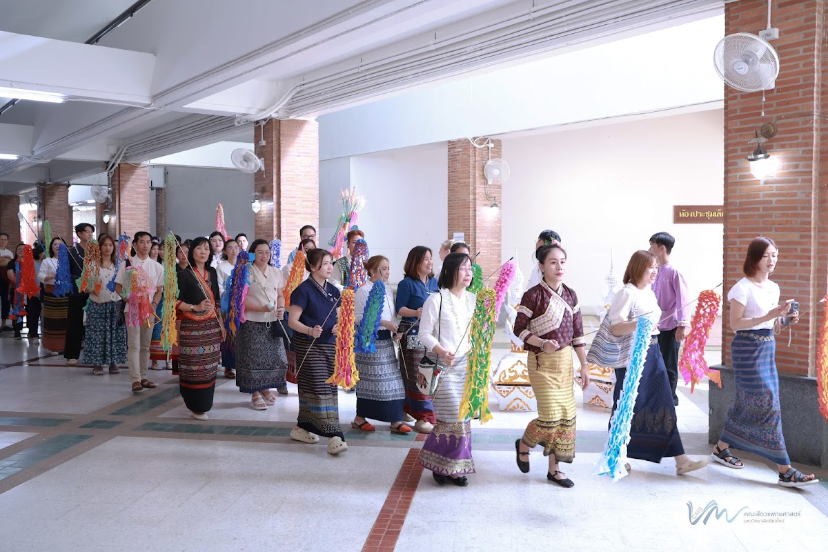 ในโอกาสนี้ คณะสัตวแพทยศาสตร์ได้เข้าร่วมการประกวดรูปขบวน ในธีม “ไทลื้อเรืองรอง คชสารทองมงคล” และการประกวดการแต่งกายพื้นเมืองล้านนา สะท้อนอัตลักษณ์และความงดงามของวัฒนธรรมท้องถิ่น พิธีดังกล่าวจัดขึ้นอย่างงดงามตามแบบประเพณีล้านนา โดยมีขบวนแห่จากส่วนงานต่าง ๆ ของมหาวิทยาลัยเคลื่อนเข้าสู่บริเวณพิธี ท่ามกลางเสียงดนตรีพื้นเมืองและการแสดงฟ้อนเล็บอันอ่อนช้อย สร้างบรรยากาศที่เปี่ยมด้วยคุณค่าทางวัฒนธรรมและความอบอุ่น การเข้าร่วมพิธีในครั้งนี้ นับเป็นโอกาสสำคัญในการสืบสาน อนุรักษ์ และส่งเสริมขนบธรรมเนียมประเพณีอันดีงามของล้านนา ตลอดจนเสริมสร้างความสัมพันธ์อันดีระหว่างคณาจารย์ บุคลากร นักศึกษา และศิษย์เก่าของมหาวิทยาลัยเชียงใหม่