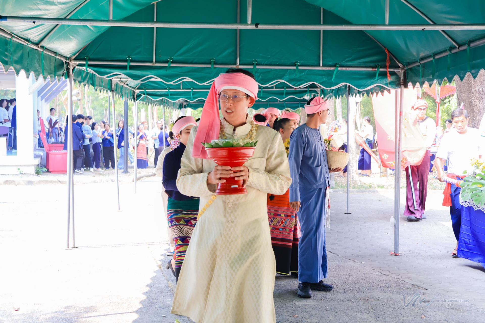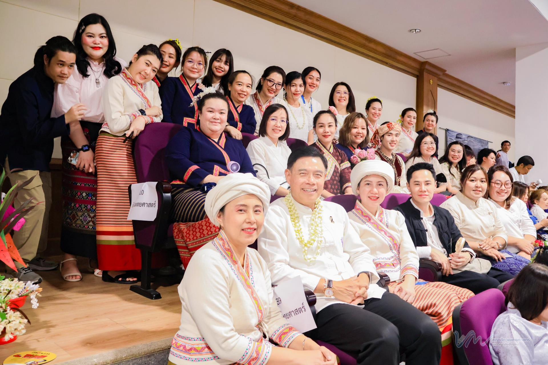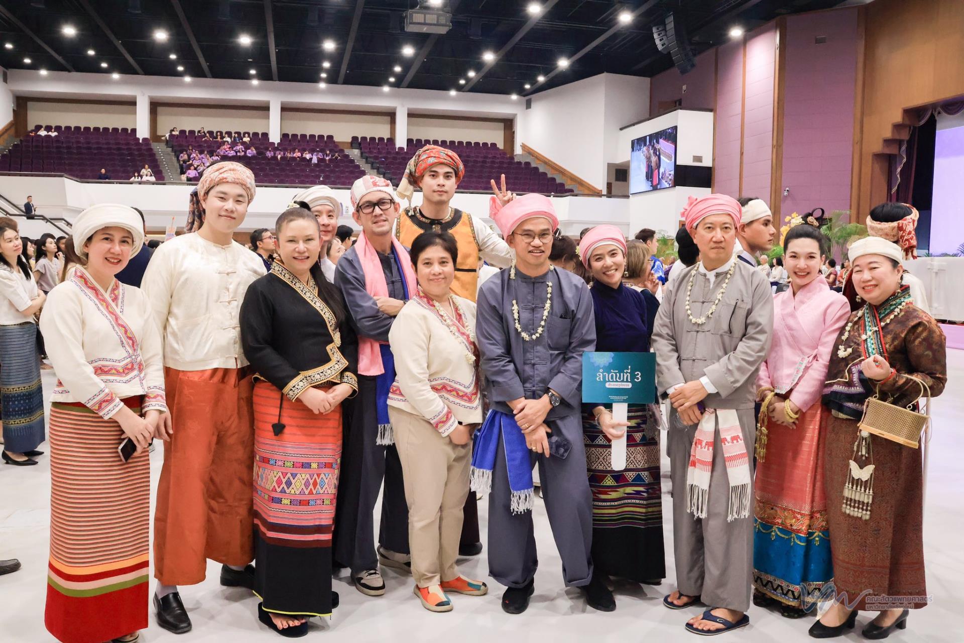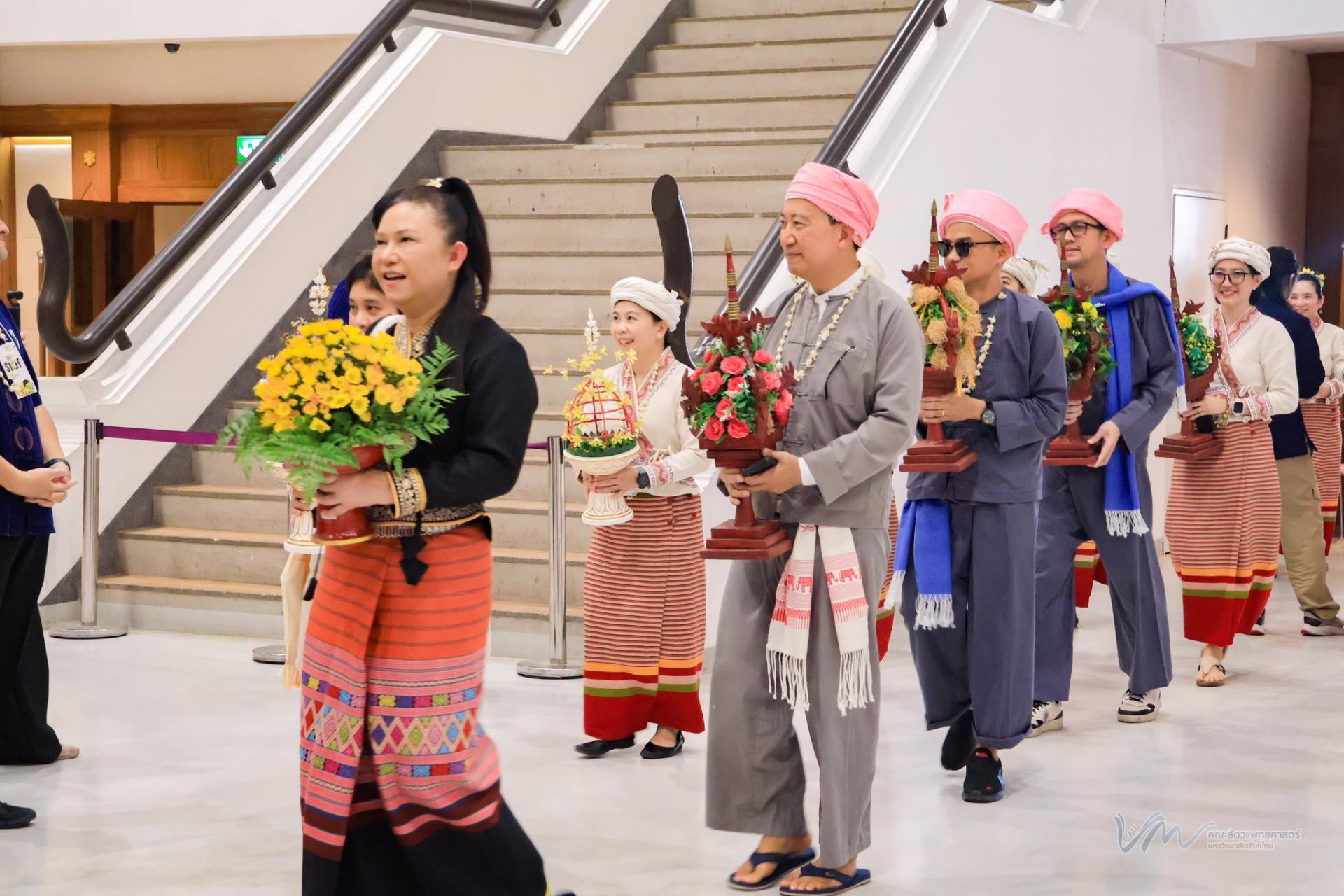 ในโอกาสนี้ คณะสัตวแพทยศาสตร์ได้เข้าร่วมการประกวดรูปขบวน ในธีม “ไทลื้อเรืองรอง คชสารทองมงคล” และการประกวดการแต่งกายพื้นเมืองล้านนา สะท้อนอัตลักษณ์และความงดงามของวัฒนธรรมท้องถิ่น พิธีดังกล่าวจัดขึ้นอย่างงดงามตามแบบประเพณีล้านนา โดยมีขบวนแห่จากส่วนงานต่าง ๆ ของมหาวิทยาลัยเคลื่อนเข้าสู่บริเวณพิธี ท่ามกลางเสียงดนตรีพื้นเมืองและการแสดงฟ้อนเล็บอันอ่อนช้อย สร้างบรรยากาศที่เปี่ยมด้วยคุณค่าทางวัฒนธรรมและความอบอุ่น การเข้าร่วมพิธีในครั้งนี้ นับเป็นโอกาสสำคัญในการสืบสาน อนุรักษ์ และส่งเสริมขนบธรรมเนียมประเพณีอันดีงามของล้านนา ตลอดจนเสริมสร้างความสัมพันธ์อันดีระหว่างคณาจารย์ บุคลากร นักศึกษา และศิษย์เก่าของมหาวิทยาลัยเชียงใหม่