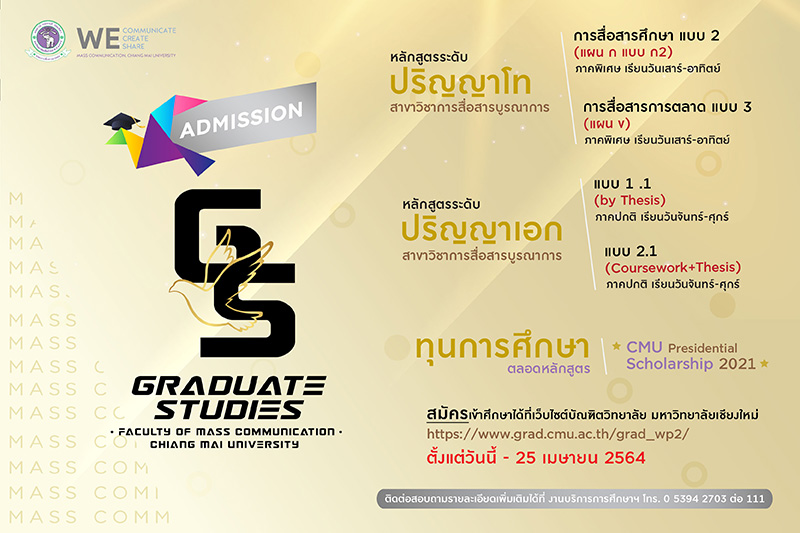 ดูข้อมูลหลักสูตรได้ที่เว็บไซต์ www.masscomm.cmu.ac.th