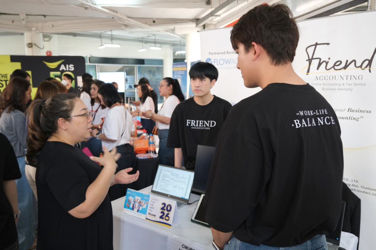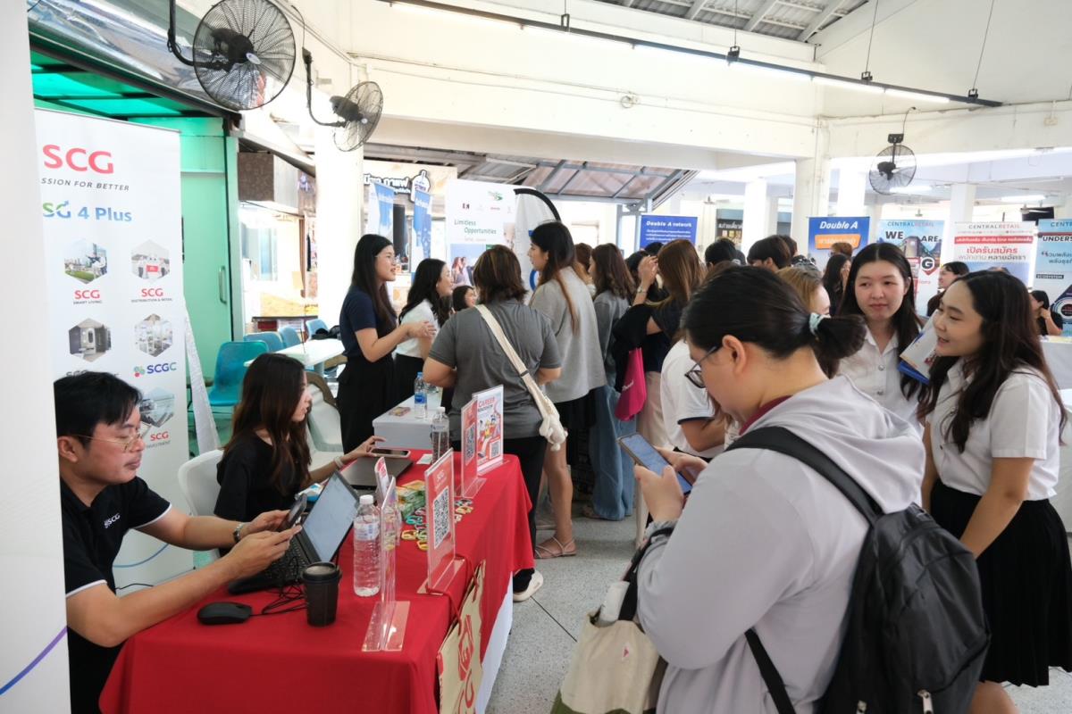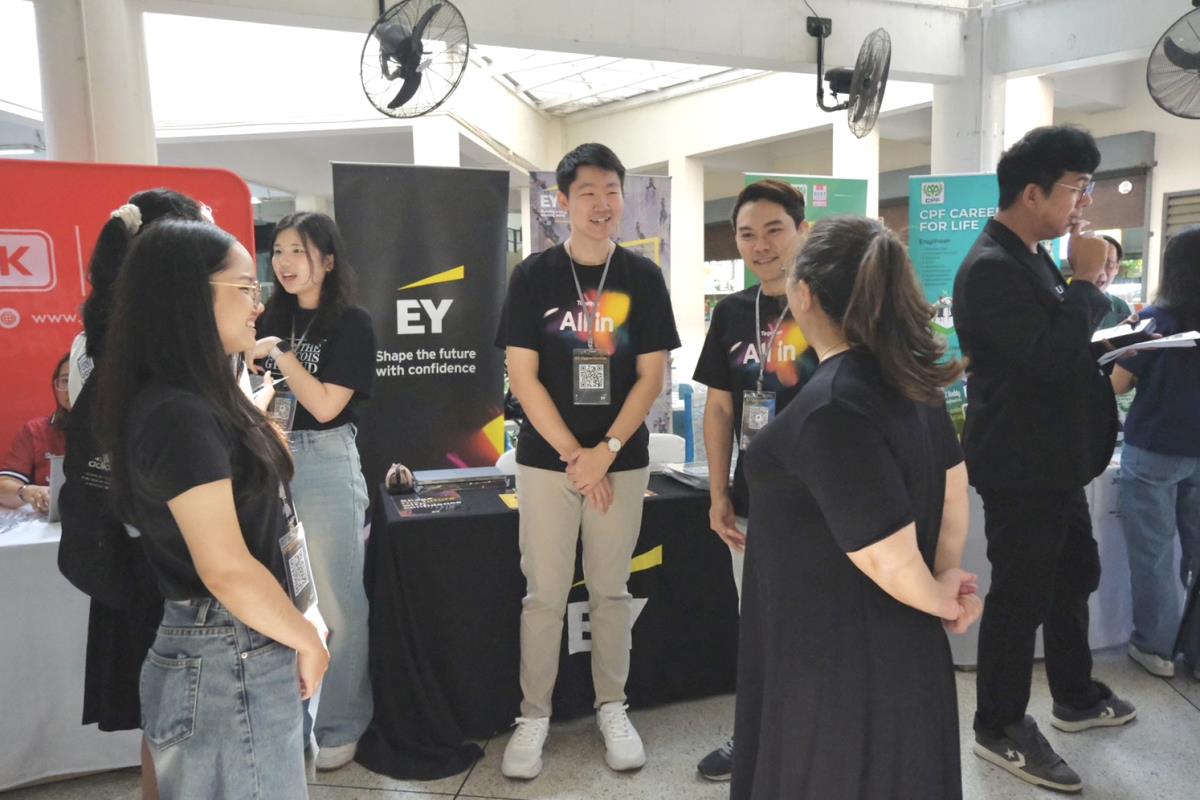 ภายในงานมีบริษัทชั้นนำจากหลากหลายอุตสาหกรรมเข้าร่วมออกบูธประชาสัมพันธ์ตำแหน่งงานและโอกาสฝึกงาน รวมกว่า 30 บริษัท อาทิ CP ALL, SCG, EY, AIS และ Bangkok Bank พร้อมให้ข้อมูลเกี่ยวกับลักษณะงาน ทักษะที่องค์กรต้องการ และแนวทางการเตรียมความพร้อมสู่การทำงานจริง ซึ่งได้รับความสนใจจากนักศึกษาทั้งในคณะและต่างคณะเข้าร่วมอย่างต่อเนื่องตลอดทั้งวัน นอกจากนี้ แต่ละบูธยังมีกิจกรรมร่วมสนุกและของที่ระลึก เพื่อสร้างสีสันและประสบการณ์ที่น่าประทับใจแก่ผู้เข้าร่วมงาน
