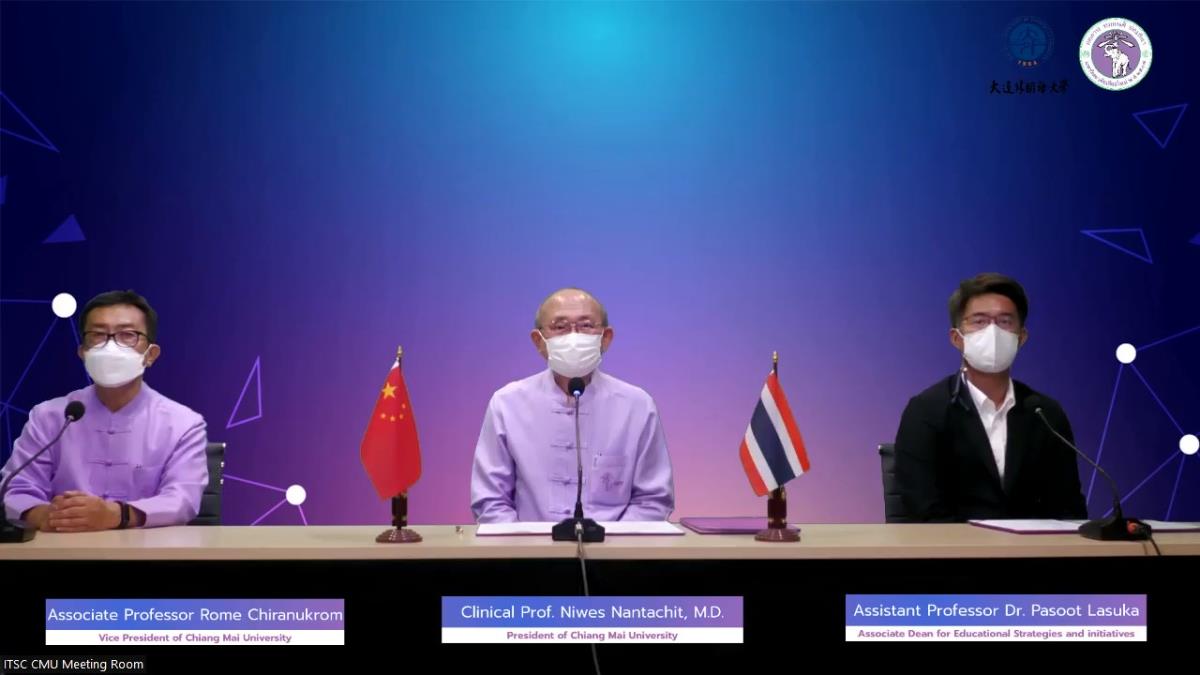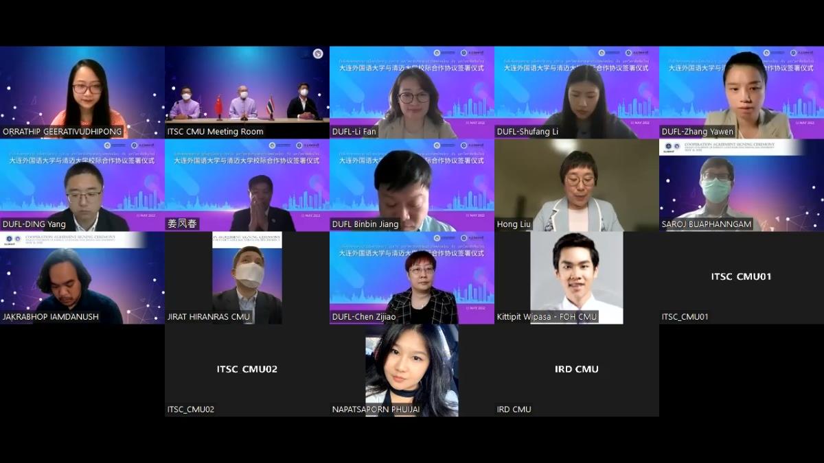 พิธีลงนามบันทึกข้อตกลงความร่วมมือทางวิชาการแบบออนไลน์ระหว่างมหาวิทยาลัยเชียงใหม่กับ Dalian University of Foreign Languages