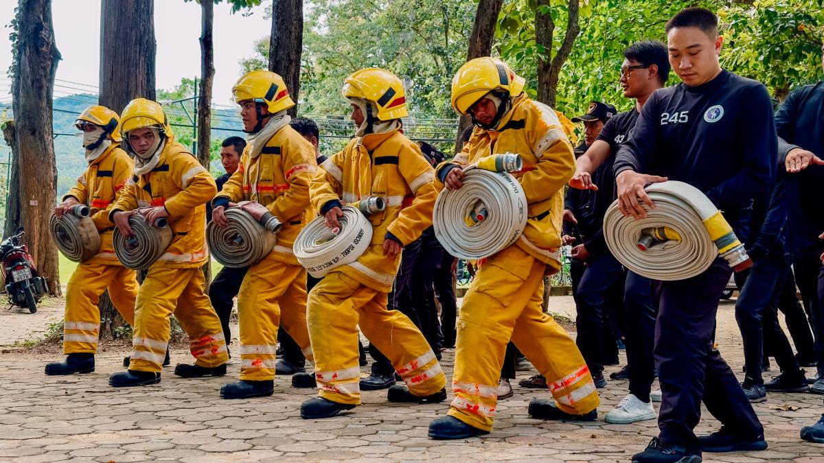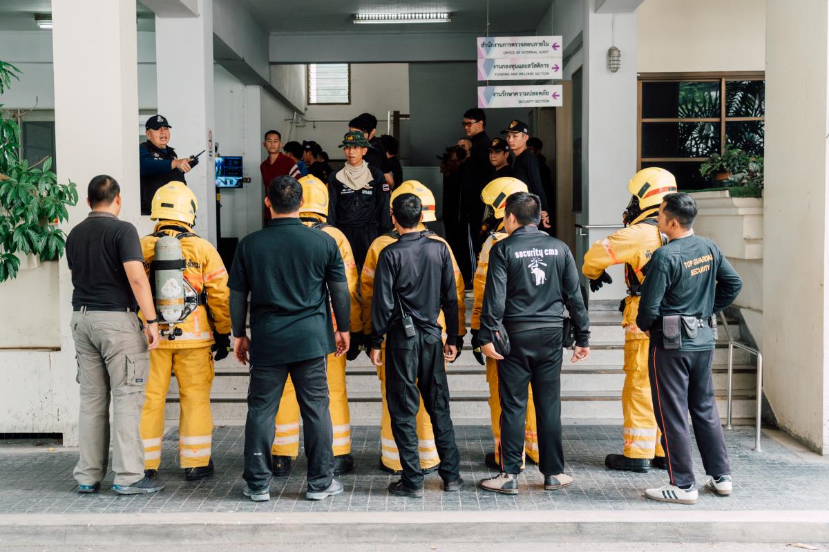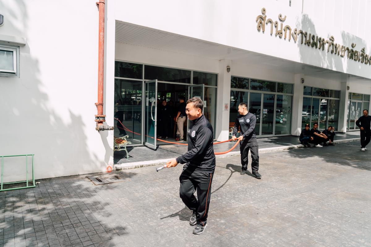 - การฝึกใช้สายดับเพลิง ตู้สายน้ำดับเพลิงในอาคาร และแผนดับเพลิงภายในอาคาร