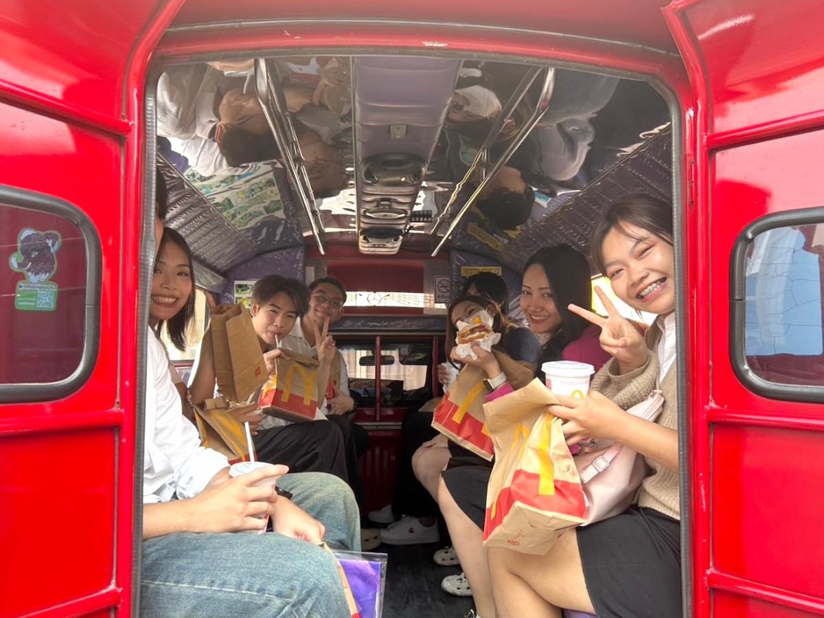 นอกจากนี้ยังมี คุณบุญรัตน์ ตรีวัฒนาวงศ์ (พี่ตี๋) นายกสมาคมนักศึกษาเก่าฯ พร้อมด้วยพี่ศิษย์เก่า AccBA ได้แก่ พี่โต่ง พี่ซุป และพี่โอ๋ มาร่วมพูดคุยและให้การต้อนรับอย่างเป็นกันเอง โดยปิดท้ายกิจกรรมด้วยการสนับสนุน McDonald แก่น้องๆ คณะผู้ศึกษาดูงานจากพี่สตาร์