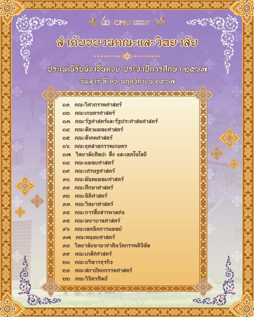 ลำดับขบวนคณะและวิทยาลัย ประเพณีรับน้องขึ้นดอย ประจำปีการศึกษา 2567- คณะวิศวกรรมศาสตร์