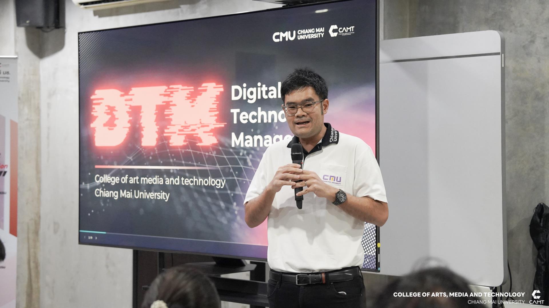 หลักสูตรการจัดการเทคโนโลยีดิจิทัล ระดับบัณฑิตศึกษา วิทยาลัยศิลปะ สื่อ และเทคโนโลยี มหาวิทยาลัยเชียงใหม่ ร่วมกับสำนักงานส่งเสริมเศรษฐกิจดิจิทัล (Depa) จัดกิจกรรม “Future Careers in Digital Games & Animation” เพื่อเปิดโอกาสให้ผู้สนใจด้านเกม แอนิเมชัน และเทคโนโลยีดิจิทัล ได้เรียนรู้และสำรวจเส้นทางอาชีพในอุตสาหกรรมดิจิทัลที่กำลังเติบโตอย่างต่อเนื่อง โดยมุ่งเน้นการเชื่อมโยงองค์ความรู้ด้านเทคโนโลยีดิจิทัลเข้ากับการพัฒนาอาชีพในอนาคต พร้อมทั้งส่งเสริมทักษะที่จำเป็นต่อการทำงานในอุตสาหกรรมสร้างสรรค์ยุคใหม่ นำโดยผู้ช่วยศาสตราจารย์ ดร.สืบพงศ์ เฉินบำรุง ประธานหลักสูตรการจัดการเทคโนโลยีดิจิทัล ภายในงานประกอบด้วยกิจกรรมที่หลากหลาย อาทิ การแนะนำหลักสูตรสาขาวิชาการจัดการเทคโนโลยีดิจิทัล (DTM) เพื่อให้ข้อมูลเชิงลึกเกี่ยวกับแนวทางการศึกษาและการพัฒนาทักษะในระดับบัณฑิตศึกษา การเสวนา “Digital Creative Industry Talk” ที่จะพาผู้เข้าร่วมเรียนรู้โอกาสและเส้นทางอาชีพในโลกของเกมและแอนิเมชัน โดยคุณภิญโญ ตัณรัตนมณฑล จากบริษัท เอ็นดีเอฟ เดฟ จำกัด ที่เป็นผู้เชี่ยวชาญในวงการเกมและแอนิเมชัน รวมถึงเวิร์กชอปด้านเทคโนโลยี AR, VR และ Immersive Media ภายใต้หัวข้อ “Goo Goo Clash” ที่เปิดโอกาสให้ผู้เข้าร่วมได้สัมผัสประสบการณ์จริงและทดลองสร้างสรรค์ผลงานด้วยตนเอง