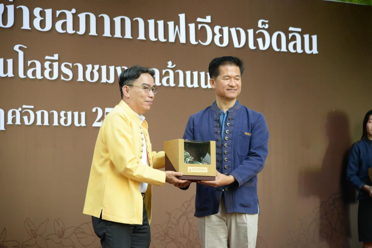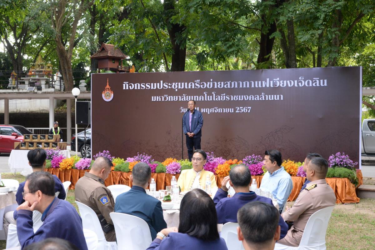 รองศาสตราจารย์ประเสริฐ ฤกษ์เกรียงไกร รองอธิการบดี รักษาการแทนอธิการบดีมหาวิทยาลัยเชียงใหม่ พร้อมด้วยคณะผู้บริหาร ร่วมกิจกรรมประชุมเครือข่ายสภากาแฟเวียงเจ็ดลิน ซึ่งมหาวิทยาลัยเทคโนโลยีราชมงคลล้านนาเป็นเจ้าภาพจัดขึ้น เพื่อให้สมาชิกของเครือข่ายได้ประชาสัมพันธ์แลกเปลี่ยนข้อมูลข่าวสาร และการจัดกิจกรรมต่างๆ ของหน่วยงาน โดยเจ้าภาพในการจัดการประชุมครั้งต่อไปคือ สำนักงานปศุสัตว์จังหวัดเชียงใหม่ ณ สนามหน้าสำนักงานอธิการบดีมหาวิทยาลัยเทคโนโลยีราชมงคลล้านนา วันพฤหัสบดีที่ 21 พฤศจิกายน พ.ศ. 2567