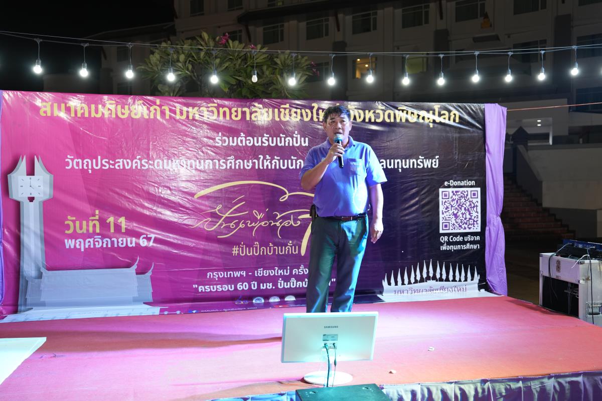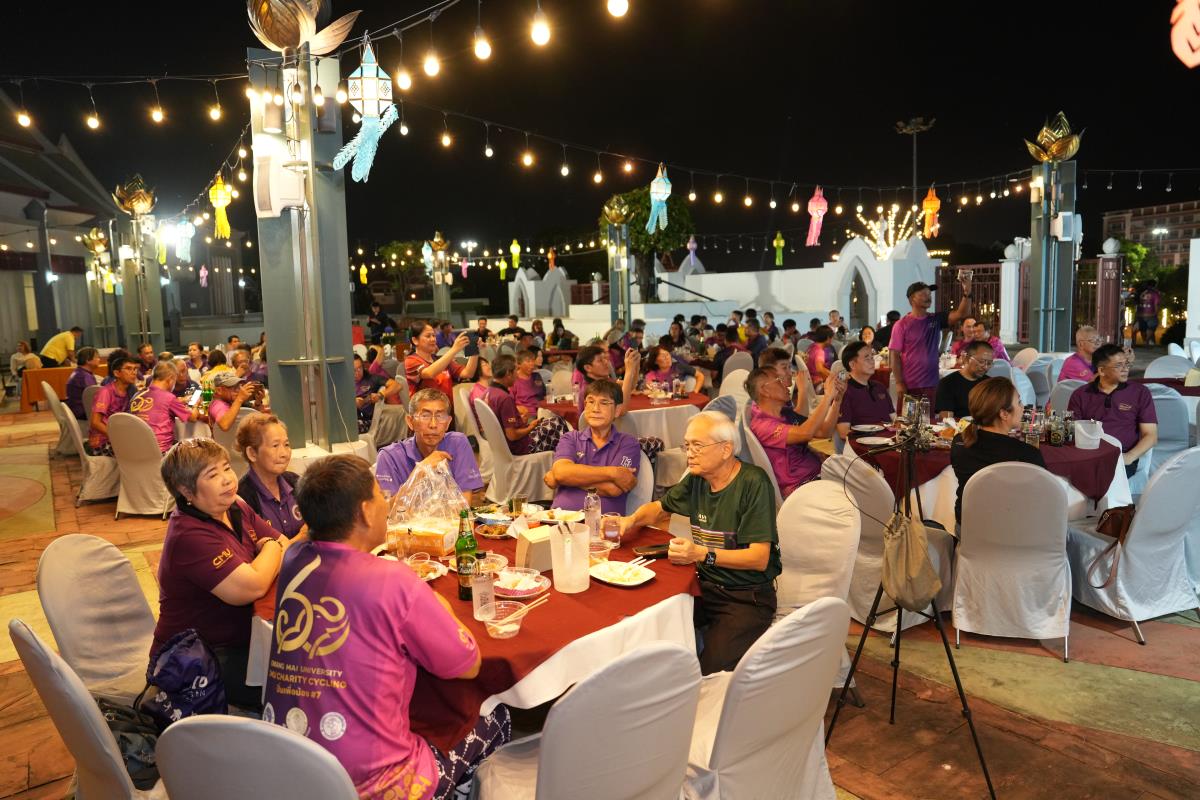 สมาคมนักศึกษาเก่ามหาวิทยาลัยเชียงใหม่จังหวัดพิษณุโลก จัดงานเลี้ยงต้อนรับนักปั่นเพื่อน้อง กรุงเทพ-เชียงใหม่ ครั้งที่ 7 ฉลอง “ครบรอบ 60 ปี มช. ปั่นปิ๊กบ้านกั๋น” โดยมี ผศ.ดร.ชุมพล เสมาขันธ์ อธิการบดีมหาวิทยาลัยราชภัฏพิบูลสงคราม นายกสมาคมนักศึกษาเก่ามหาวิทยาลัยเชียงใหม่จังหวัดพิษณุโลก กล่าวเปิดงาน, ผู้ช่วยศาสตราจารย์ ดร.ปิติพงษ์ ยอดมงคล รองอธิการบดีมหาวิทยาลัยเชียงใหม่ กล่าวขอบคุณ พร้อมด้วยคณะผู้บริหารมหาวิทยาลัยเชียงใหม่ สมาคมนักศึกษาเก่ามหาวิทยาลัยเชียงใหม่จังหวัดพิษณุโลก ร่วมให้การต้อนรับนักปั่น ณ โรงแรมวังจันทน์ ริเวอร์วิว จ.พิษณุโลก เมื่อวันจันทร์ที่ 11 พฤศจิกายน พ.ศ.2567