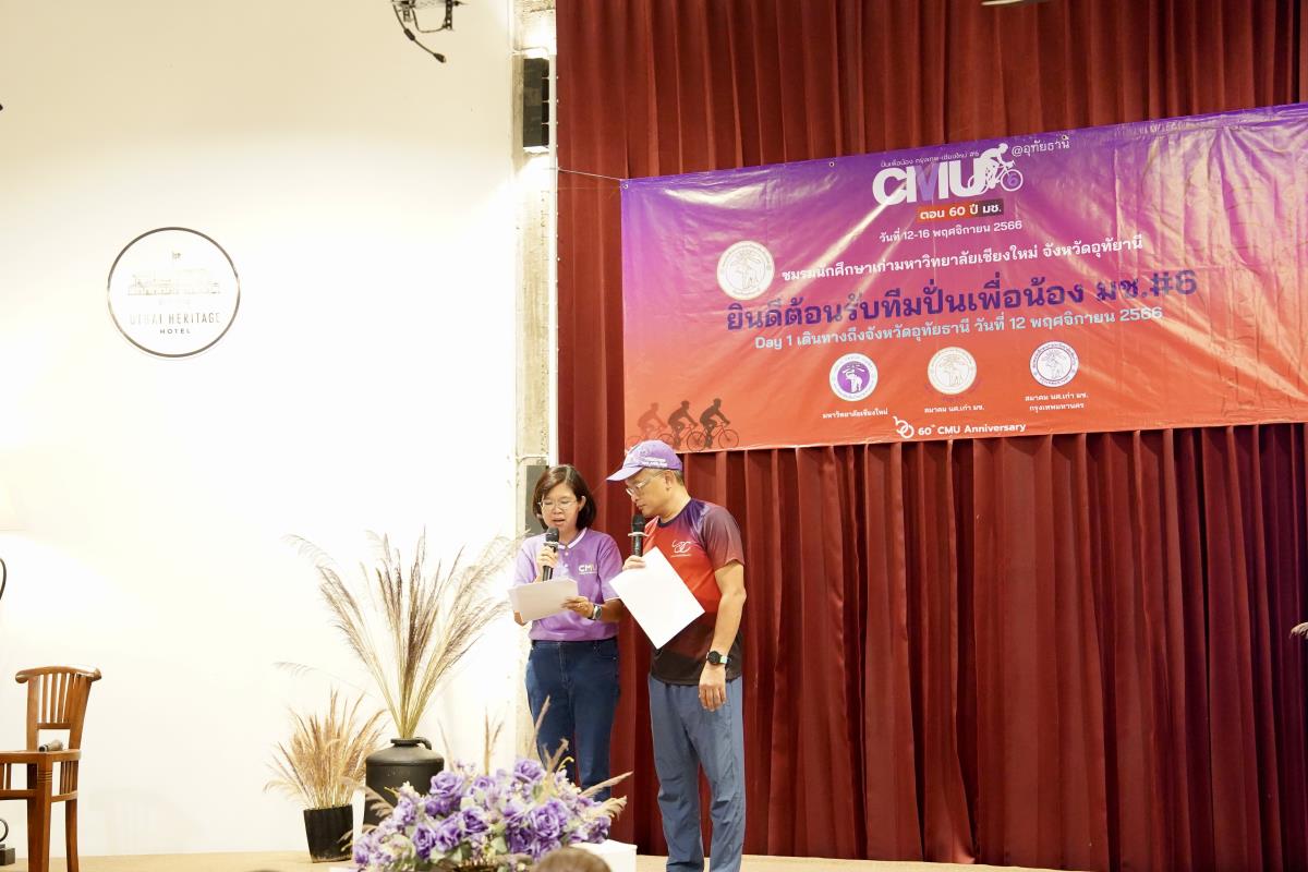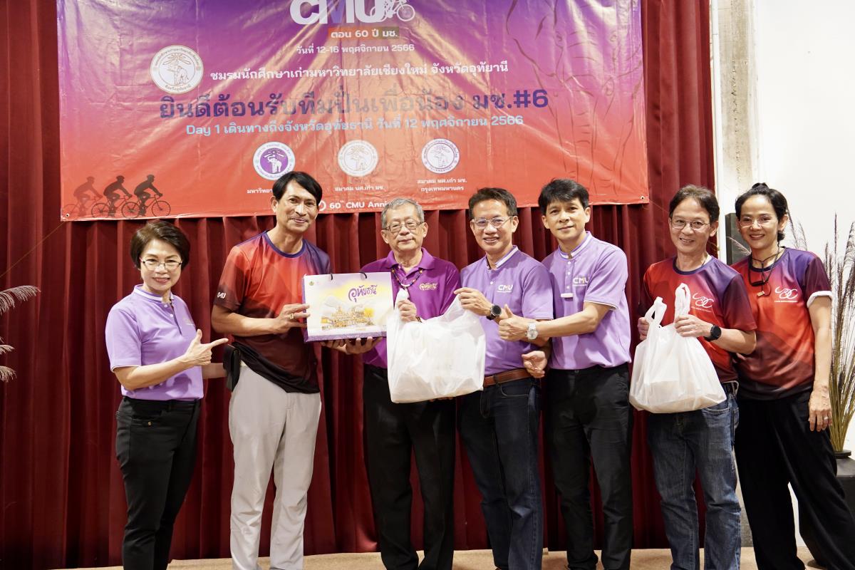 ชมรมนักศึกษาเก่ามหาวิทยาลัยเชียงใหม่ จังหวัดอุทัยธานี จัดงานเลี้ยงต้อนรับนักปั่นเพื่อน้อง กรุงเทพ-เชียงใหม่ ครั้งที่ 6 ตอน 60 ปี มช. โดยมีคุณมนัญญา ไทยเศรษฐ์ อดีตรัฐมนตรีช่วยว่าการกระทรวงเกษตร และสหกรณ์ พร้อมด้วยผู้ช่วยศาสตราจารย์ ดร.ปิติพงษ์ ยอดมงคล รองอธิการบดีมหาวิทยาลัยเชียงใหม่ คณะผู้บริหารมหาวิทยาลัยเชียงใหม่ ชมรมนักศึกษาเก่ามหาวิทยาลัยเชียงใหม่จังหวัดอุทัยธานี และจังหวัดใกล้เคียง ร่วมให้การต้อนรับนักปั่นฯ ณ โรงแรมอุทัยเฮอริเทจ จ.อุทัยธานี เมื่อวันอาทิตย์ที่ 12 พฤศจิกายน พ.ศ.2566
