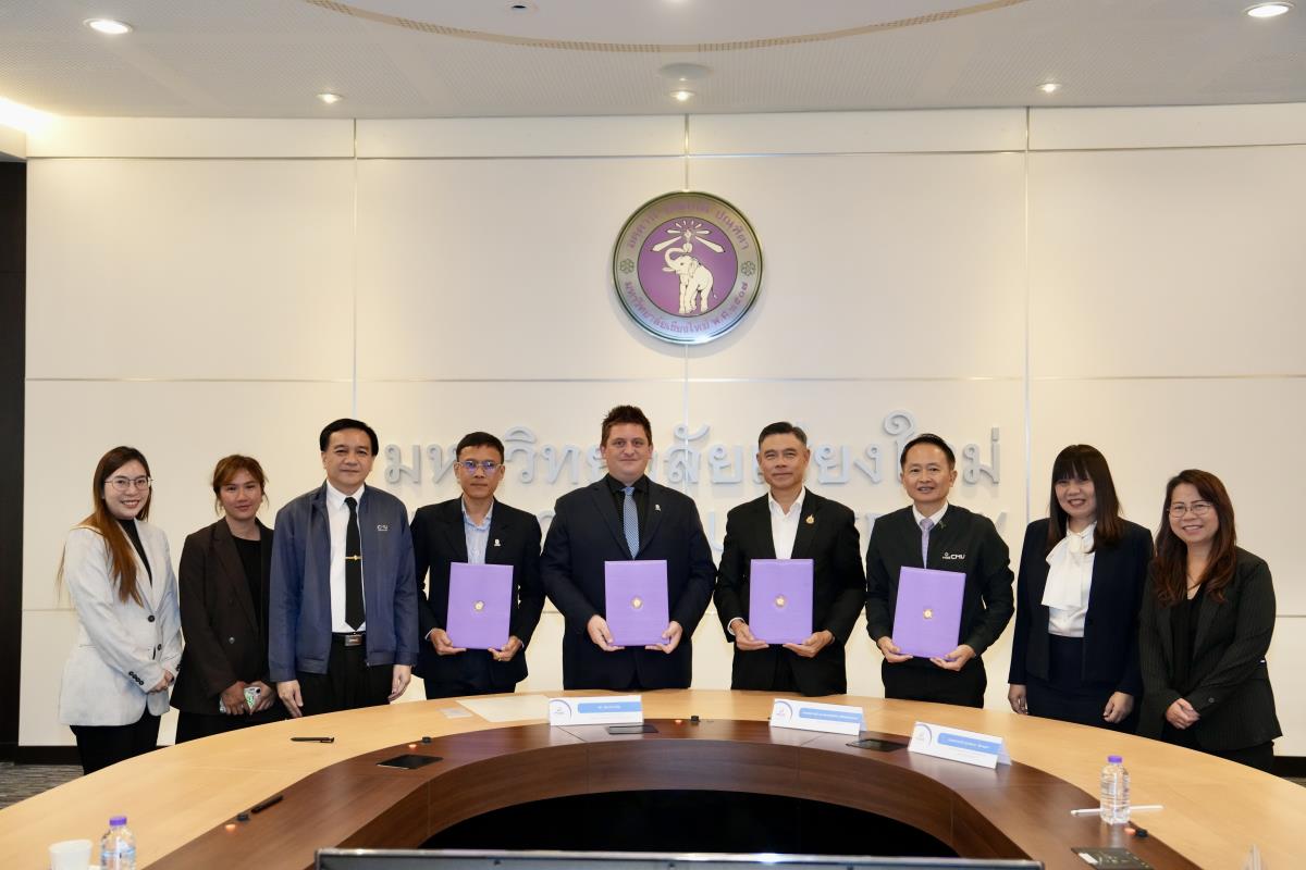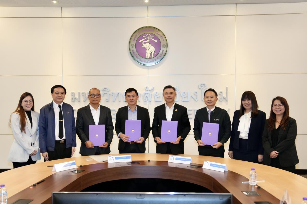 ศาสตราจารย์ ดร.นพ.พงษ์รักษ์ ศรีบัณฑิตมงคล อธิการบดีมหาวิทยาลัยเชียงใหม่ ประธานในพิธีลงนามบันทึกข้อตกลงความร่วมมือทางวิชาการระหว่างมหาวิทยาลัยเชียงใหม่ กับ 5 บริษัท Carbon Business Networking ได้แก่ บริษัท ศรีตรังแอโกรอินดัสทรี จำกัด (มหาชน), บริษัท สหวิริยาสตีล อินดัสตรี จำกัด (มหาชน), บริษัท บี.กริม เพาเวอร์ จำกัด (มหาชน), บริษัท อกรีแอค โกลบอล จำกัด และ บริษัท บูโร เวอริทัส (ประเทศไทย) จำกัด เพื่อร่วมกันพัฒนา วิจัย สร้างเครือข่ายความร่วมมือสำหรับภาคธุรกิจ ภาครัฐ และภาคชุมชน ด้านการพัฒนาอย่างยั่งยืน ในการรับมือกับการเปลี่ยนแปลงสภาวะภูมิอากาศ ร่วมถ่ายทอดเทคโนโลยีและนวัตกรรมด้านเทคโนโลยีเพื่อสิ่งแวดล้อม (Green & Climete Technology) โดยมี ศาสตราจารย์ ดร.อภิชาต โสภาแดง คณบดีวิทยาลัยพหุวิทยาการและสหวิทยาการ กล่าวรายงานและร่วมลงนาม พร้อมด้วยคณะผู้บริหารจาก 5 บริษัท ร่วมพิธีฯ เมื่อวันจันทร์ที่ 26 มกราคม 2569 ณ ห้องประชุมตะวัน กังวานพงศ์ ชั้น 4 อาคารยุทธศาสตร์ สำนักงานมหาวิทยาลัย