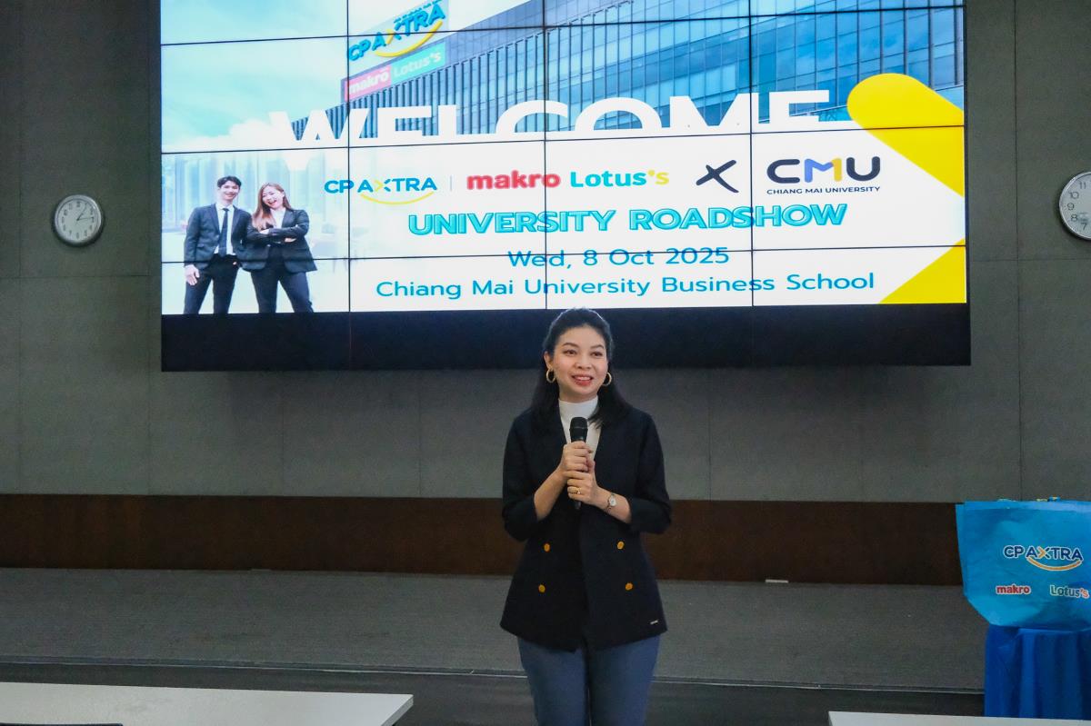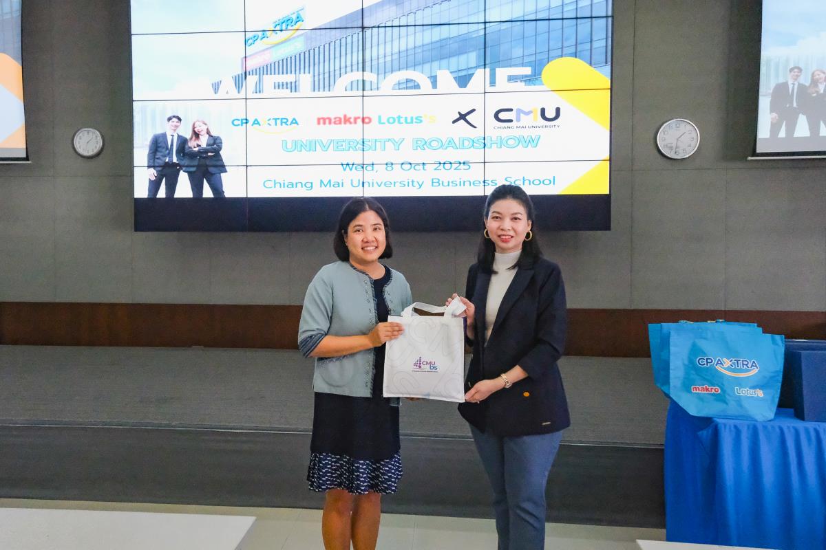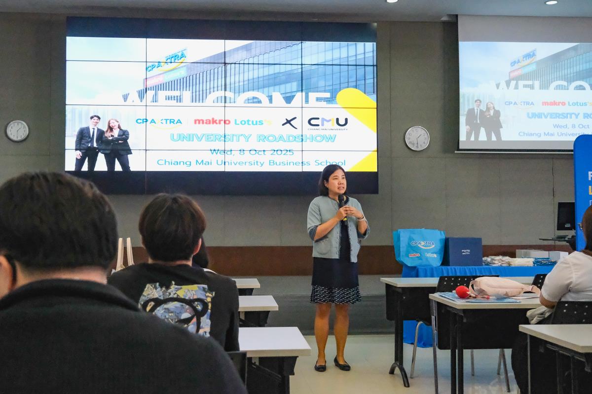 วันที่ 8 ตุลาคม 2568 ศูนย์พัฒนาความสำเร็จแห่งอาชีพ (Career Success Center : CSC) คณะบริหารธุรกิจ มหาวิทยาลัยเชียงใหม่ จัดกิจกรรม Company Presentation ในหัวข้อ CP AXTRA พลิกโฉมธุรกิจค้าส่ง–ค้าปลีกแบบครบวงจร สู่ความสำเร็จยุคใหม่ โดยได้รับเกียรติจาก คุณศิวณี ม่วงน้อยเจริญ Senior Manager – Talent Acquisition & Employer Branding บริษัท ซีพี แอ็กซ์ตร้า จำกัด (มหาชน) ร่วมบรรยายแนะนำองค์กร CP AXTRA (Makro – Lotus’s) ถ่ายทอดมุมมองธุรกิจค้าส่ง–ค้าปลีกยุคใหม่ แนะแนวเส้นทางอาชีพและเทคนิคการสมัครงานแก่นักศึกษาคณะบริหารธุรกิจ ณ ห้องประชุม ชั้น 6 อาคาร 2 คณะบริหารธุรกิจ มหาวิทยาลัยเชียงใหม่