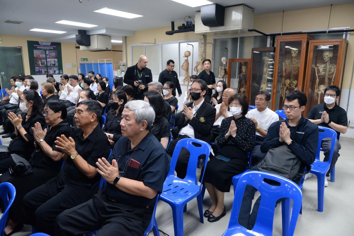 คณะแพทยศาสตร์ มช. ภาควิชากายวิภาคศาสตร์ และภาควิชาเภสัชวิทยา คณะแพทยศาสตร์ มช. ร่วมเป็นเจ้าภาพในพิธีบำเพ็ญกุศลและสวดพระอภิธรรมศพและรดน้ำศพ รศ.พญ.พาณี เตชะเสน อดีตอาจารย์ประจำภาควิชาเภสัชวิทยา คณะแพทยศาสตร์ มช. และอดีตรองอธิการบดี มช. พร้อมมอบร่างกายเพื่อการศึกษาแก่คณะแพทยศาสตร์ มช. โดยมี ศ.เกียรติคุณ นพ.อาวุธ ศรีศุกรี อุปนายกสภามหาวิทยาลัยเชียงใหม่ เป็นประธานในพิธี พร้อมด้วย ศ.คลินิก นพ.นิเวศน์ นันทจิต เลขาธิการมูลนิธิขาเทียม ในสมเด็จพระศรีนครินทราบรมราชชนนี และ ประธานมูลนิธิต่อต้านมะเร็งภาคเหนือ, ศ.ดร.นพ.พงษ์รักษ์ ศรีบัณฑิตมงคล อธิการบดี มหาวิทยาลัยเชียงใหม่, รศ.นพ.นเรนทร์ โชติรสนิรมิต คณบดีคณะแพทยศาสตร์ มช., รศ.นพ.ณัฐพงศ์ โฆษชุณหนันท์ รองคณบดีด้านบริหารทั่วไป, ผศ.ดร.นพ.ภูวพงศ์ นิ่มกิ่งรัตน์ ผู้ช่วยคณบดีด้านเทคโนโลยีสารสนเทศ, รศ.อภิชาติ สินธุบัว หัวหน้าภาควิชากายวิภาคศาสตร์, ศ.(เชี่ยวชาญพิเศษ)พญ.ผาสุก มหรรฆานุเคราะห์ อดีตหัวหน้าภาควิชากายวิภาคศาสตร์ และรศ.ดร.นพ.ศุภนิมิต ทีฆชุณหเถียร หัวหน้าภาควิชาเภสัชวิทยา ร่วมในงาน พร้อมกันนี้ ครอบครัวเตชะทัต เตชะเสน และภาควิชาเภสัชวิทยา ร่วมมอบเงินบริจาค สบทบโครงการสร้างบ้านหลังใหม่ แด่อาจารย์ใหญ่ผู้มีพระคุณ โดยมี รศ.นพ.นเรนทร์ โชติรสนิรมิต คณบดีคณะแพทยศาสตร์ มช เป็นผู้รับมอบ ณ ห้องปฎิบัติการมหกายวิภาคศาสตร์ รศ.ดร.นพ. เตชะทัต เตชะเสน ภาควิชากายวิภาคศาสตร์ คณะแพทยศาสตร์ มช. เมื่อวันพฤหัสบดีที่ 17 เมษายน พ.ศ. 2568