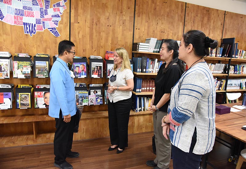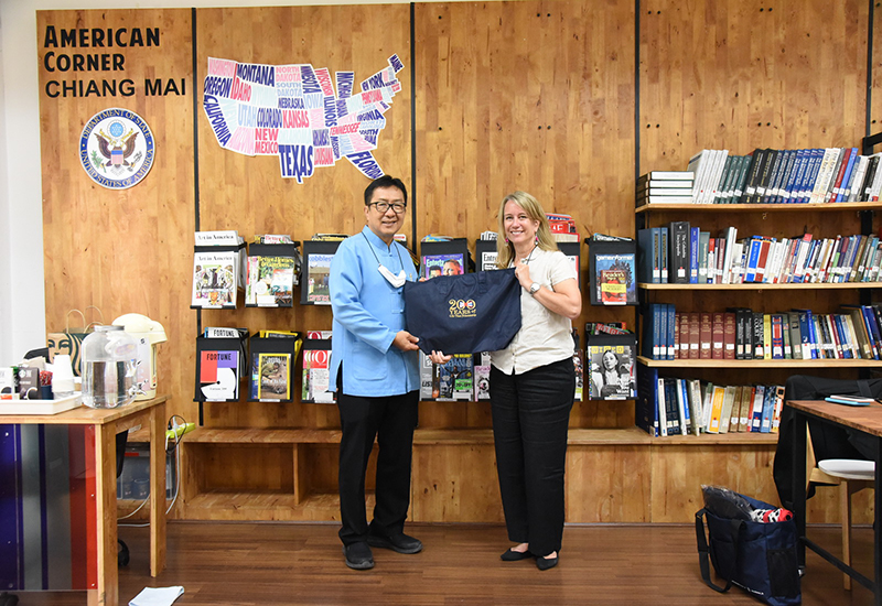 รองศาสตราจารย์ โรม จิรานุกรม รองอธิการบดีมหาวิทยาลัยเชียงใหม่ ต้อนรับ Ms. Deborah Mak, Assistant Cultural Attach? Media and Cultural Section, U.S. Embassy Bangkok รองผู้ช่วยทูตฝ่ายวัฒนธรรมและการศึกษาสถานเอกอัครราชทูตสหรัฐอเมริกา ประจำประเทศไทย ในโอกาสที่มาเยี่ยมชมศูนย์ American Corner คณะรัฐสาสตร์และรัฐประศาสนศาสตร์ มหาวิทยาลัยเชียงใหม่ เพื่อแนะนำตัวในโอกาสเข้ารับตำแหน่งใหม่ ณ ห้องประชุม American Corner ชั้น 1 คณะรัฐศาสตร์ฯ วันศุกร์ที่ 18 กันยายน พ.ศ. 2563