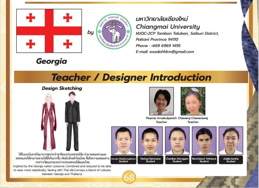 ทีมที่ 1 ออกแบบและตัดเย็บให้กับประเทศจอร์เจีย สมาชิกภายในทีม ได้แก่