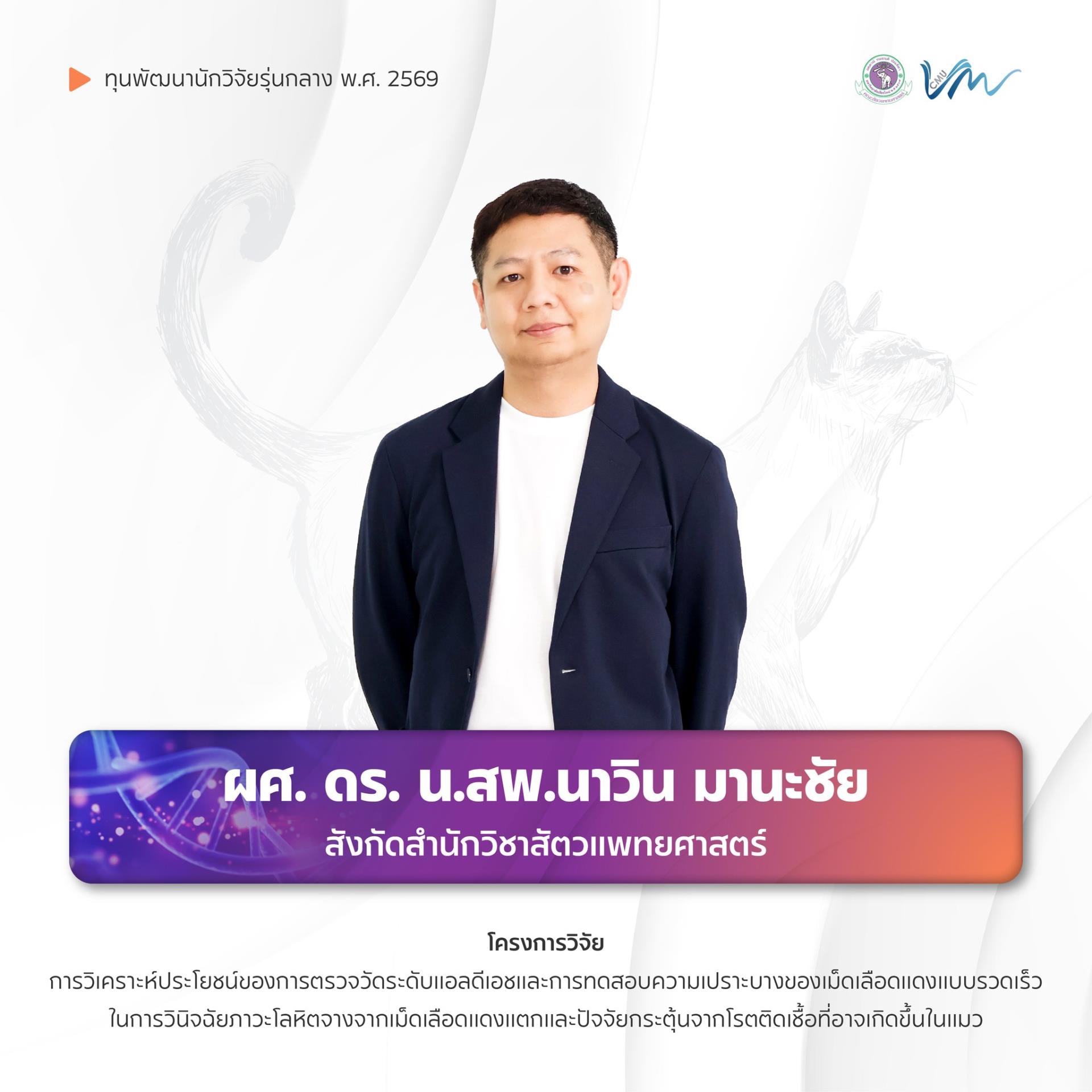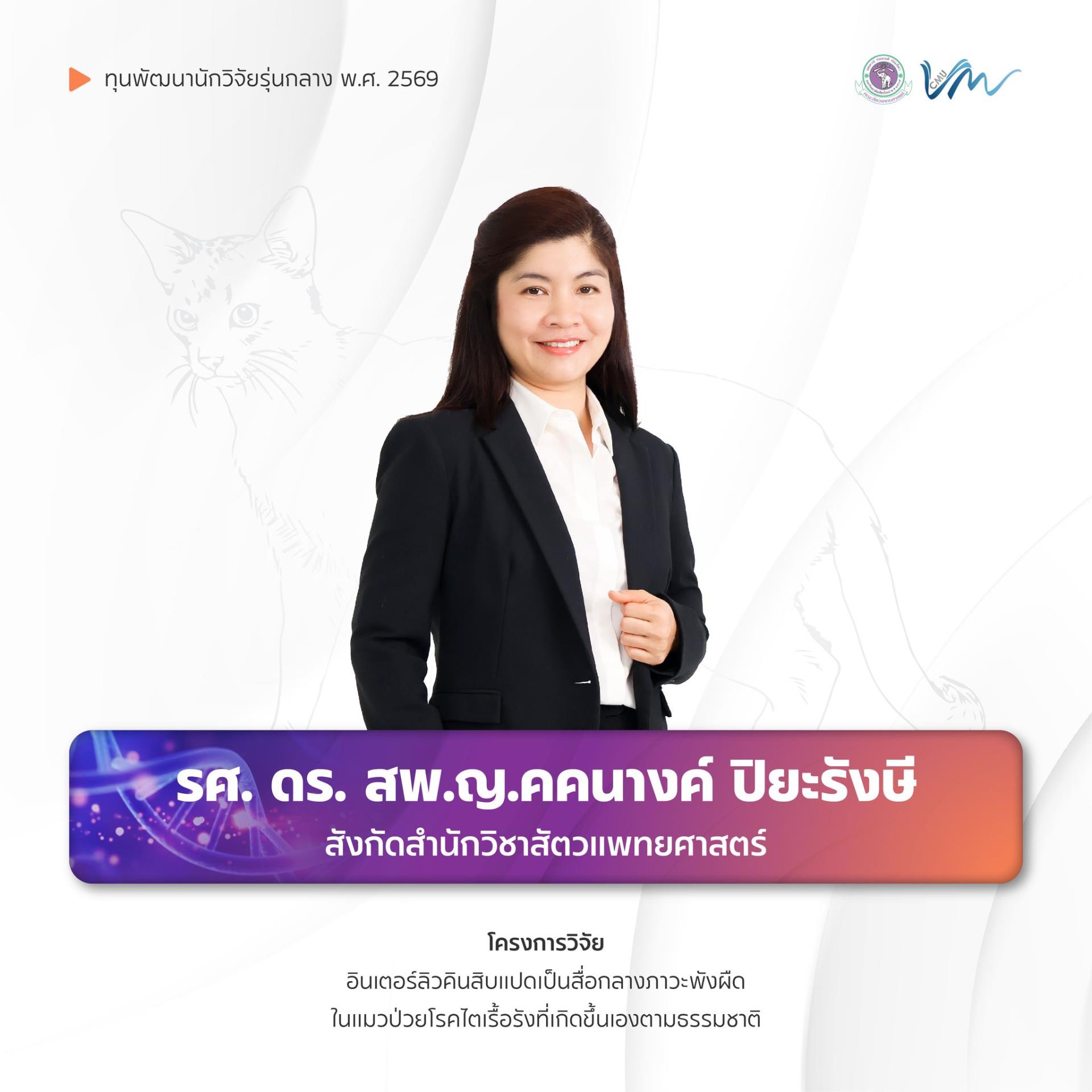 คณะสัตวแพทยศาสตร์ มหาวิทยาลัยเชียงใหม่ ขอแสดงความยินดีกับอาจารย์สำนักวิชาสัตวแพทยศาสตร์ ที่ได้รับ ทุนพัฒนานักวิจัยรุ่นกลาง มหาวิทยาลัยเชียงใหม่ ประจำปีงบประมาณ 2569
