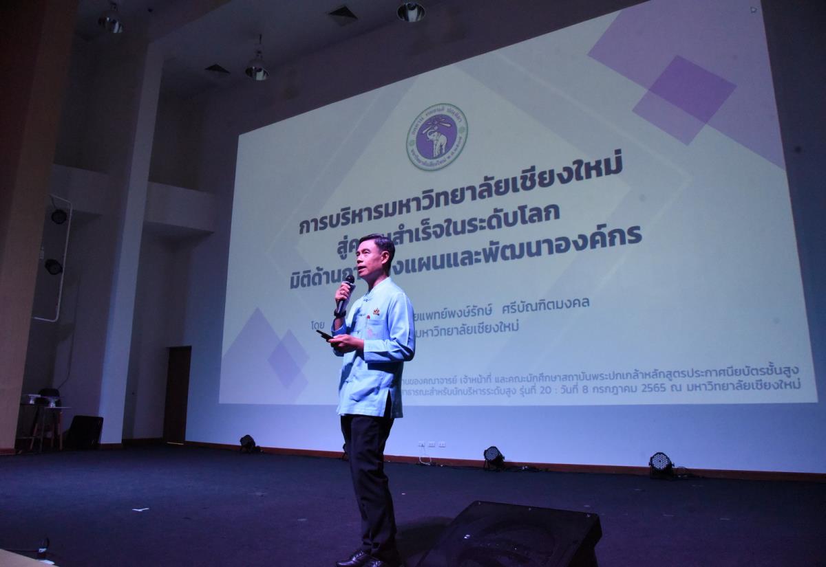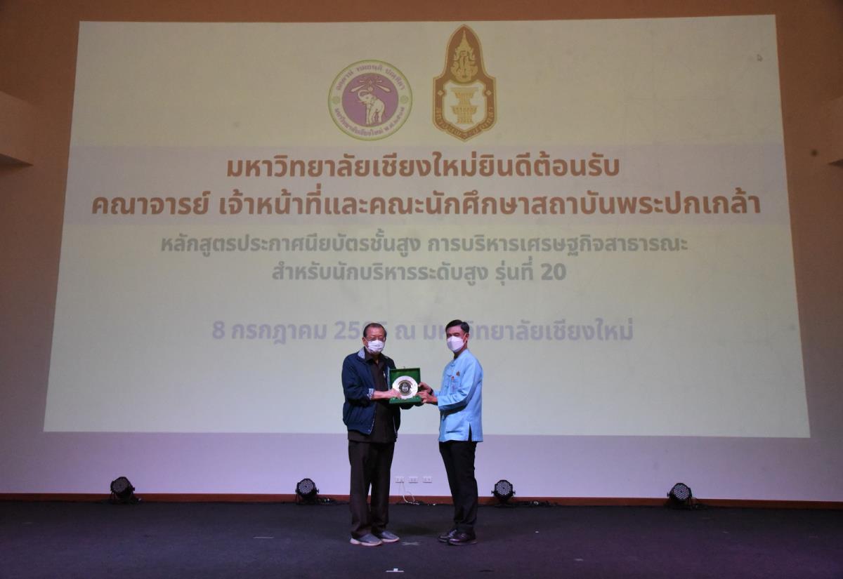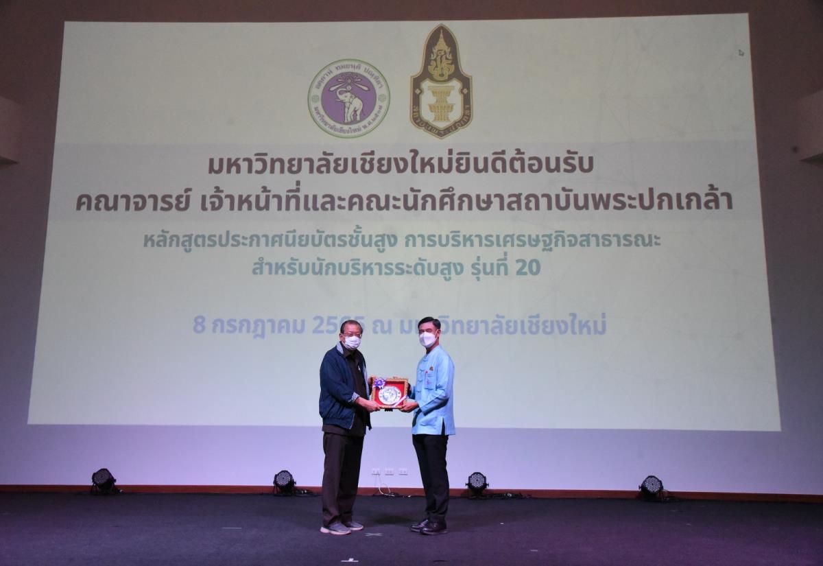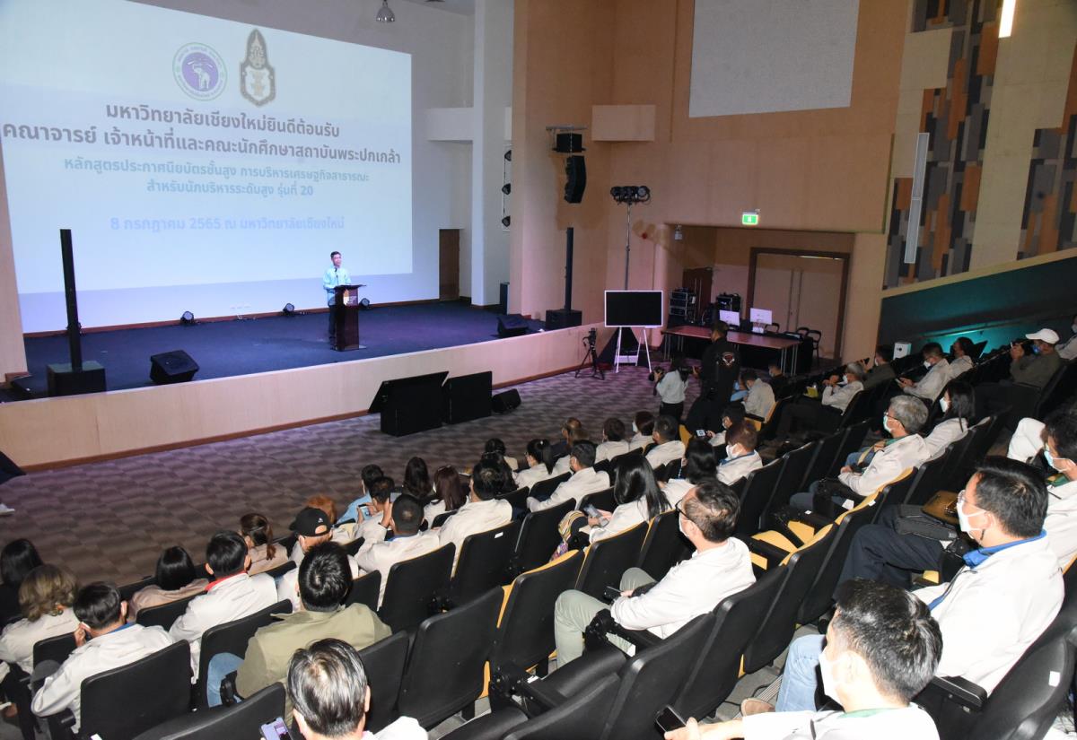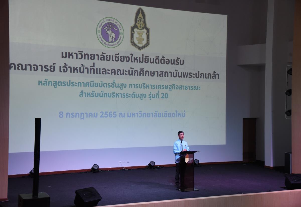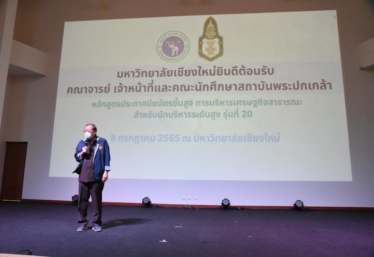 ศาสตราจารย์ ดร.นพ.พงษ์รักษ์ ศรีบัณฑิตมงคล รองอธิการบดี พร้อมด้วยคณะผู้บริหารมหาวิทยาลัยเชียงใหม่ ต้อนรับคณาจารย์ เจ้าหน้าที่ และคณะนักศึกษาสถาบันพระปกเกล้าหลักสูตรประกาศนียบัตรชั้นสูง การบริหารเศรษฐกิจสาธารณะสำหรับนักบริหารระดับสูง รุ่นที่ 20 ในโอกาสที่มาศึกษาดูงานและรับฟังการบรรยาย หัวข้อ “การบริหารมหาวิทยาลัยเชียงใหม่สู่ความสำเร็จในระดับโลก มิติด้านการวางแผนและพัฒนาองค์กร และการสร้าง Smart University” ณ ห้องประชุม NSP Rice Grain Auditorium อุทยานวิทยาศาสตร์และเทคโนโลยี มหาวิทยาลัยเชียงใหม่ วันศุกร์ที่ 8 กรกฎาคม พ.ศ. 2565