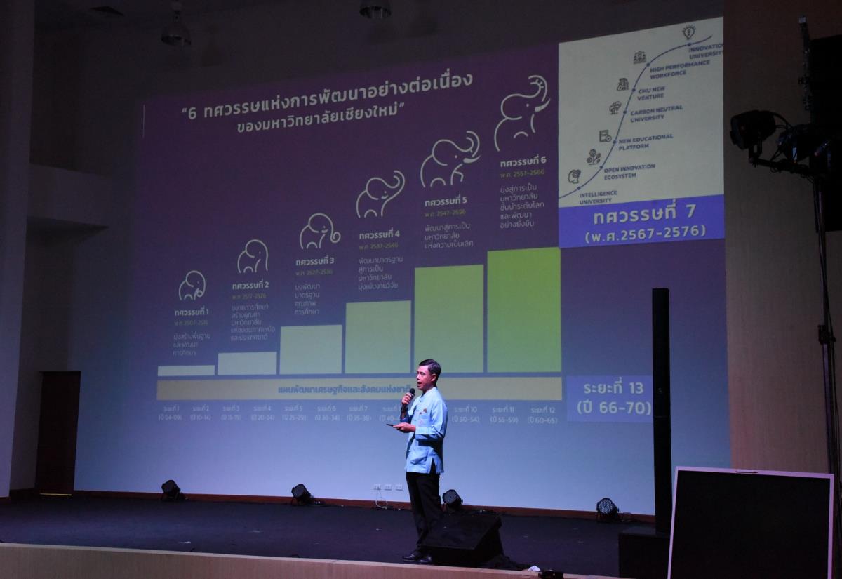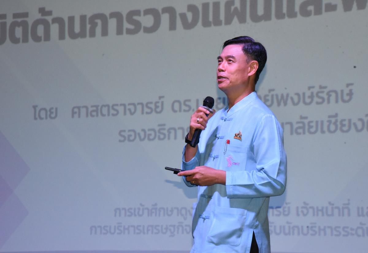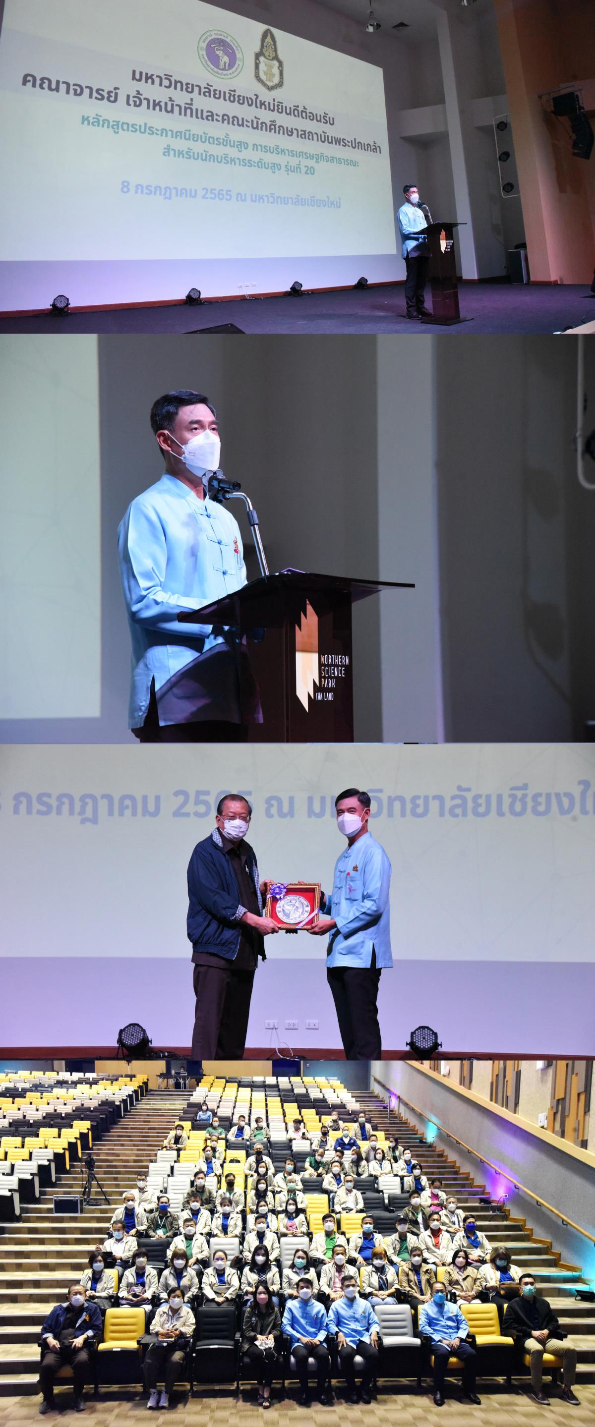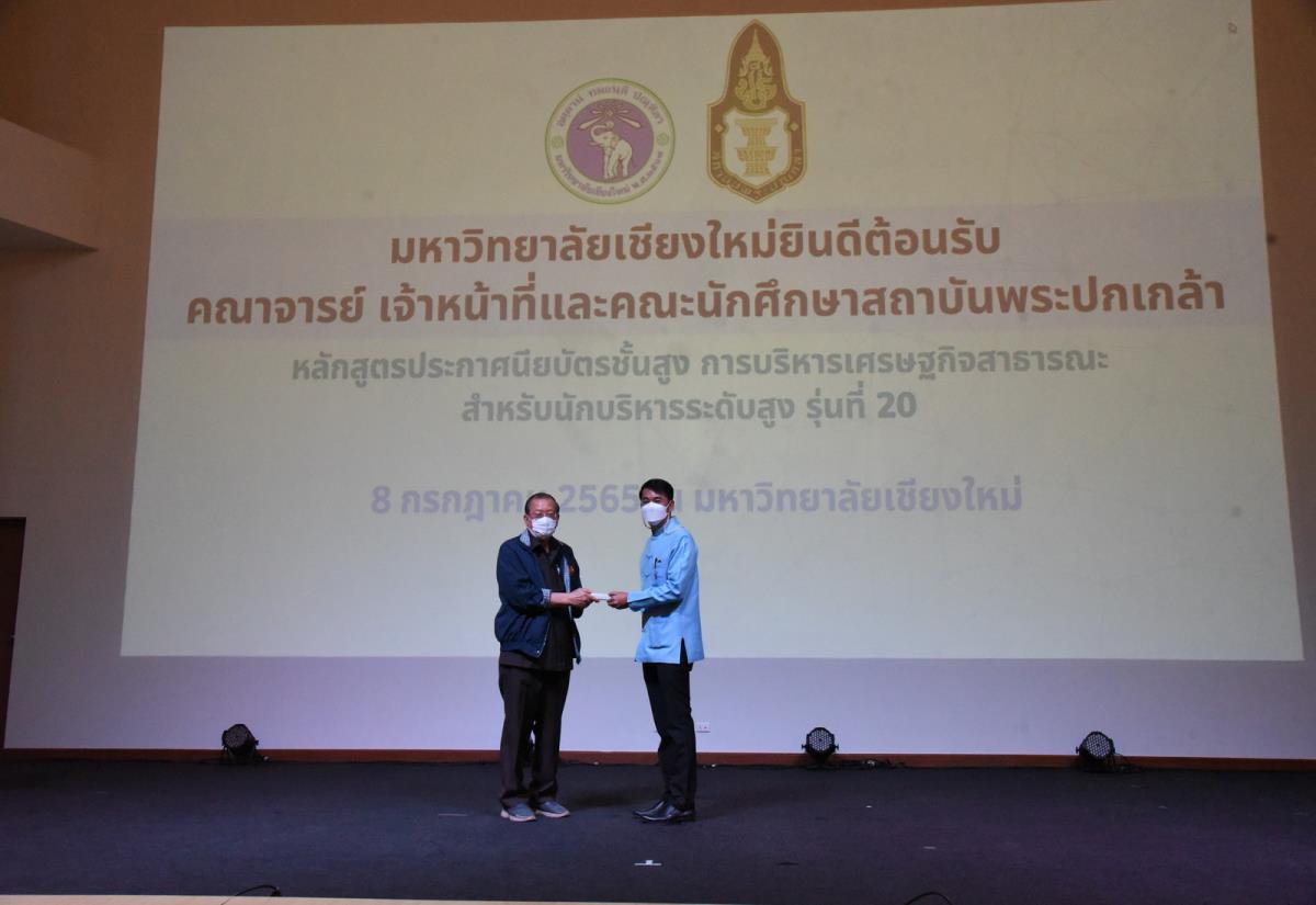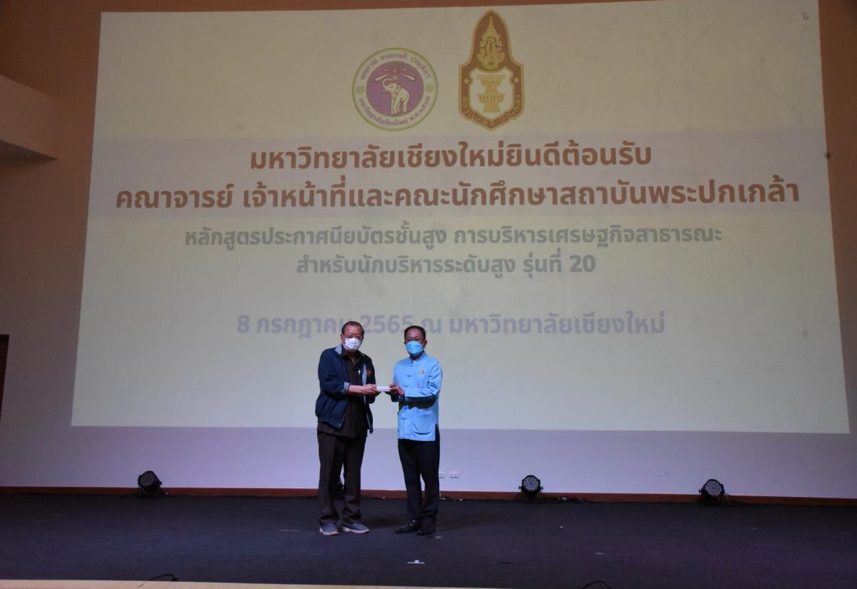 ศาสตราจารย์ ดร.นพ.พงษ์รักษ์ ศรีบัณฑิตมงคล รองอธิการบดี พร้อมด้วยคณะผู้บริหารมหาวิทยาลัยเชียงใหม่ ต้อนรับคณาจารย์ เจ้าหน้าที่ และคณะนักศึกษาสถาบันพระปกเกล้าหลักสูตรประกาศนียบัตรชั้นสูง การบริหารเศรษฐกิจสาธารณะสำหรับนักบริหารระดับสูง รุ่นที่ 20 ในโอกาสที่มาศึกษาดูงานและรับฟังการบรรยาย หัวข้อ “การบริหารมหาวิทยาลัยเชียงใหม่สู่ความสำเร็จในระดับโลก มิติด้านการวางแผนและพัฒนาองค์กร และการสร้าง Smart University” ณ ห้องประชุม NSP Rice Grain Auditorium อุทยานวิทยาศาสตร์และเทคโนโลยี มหาวิทยาลัยเชียงใหม่ วันศุกร์ที่ 8 กรกฎาคม พ.ศ. 2565