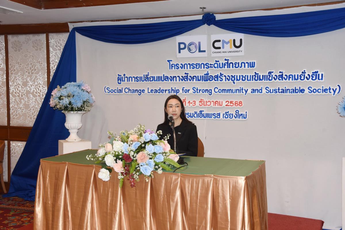ผู้ช่วยศาสตราจารย์ ดร.จุฑาทิพย์ เฉลิมผล ผู้ช่วยอธิการบดีมหาวิทยาลัยเชียงใหม่ เป็นประธานเปิดโครงการยกระดับศักยภาพผู้นำการเปลี่ยนแปลงทางสังคมเพื่อสร้างชุมชนเข้มแข็งสังคมยั่งยืน รุ่นที่ 2 ให้แก่ผู้นำชุมชน ผู้นำท้องถิ่น ตัวแทนวิสาหกิจชุมชน อาจารย์ และนักศึกษาที่อยากพัฒนาแนวความคิด โดยมีผู้ช่วยศาสตราจารย์ ดร.ธัญณ์ณภัทร์ เจริญพานิช ผู้ช่วยคณบดีฝ่ายบริการวิชาการและรับใช้สังคม คณะรัฐศาสตร์และรัฐประศาสนศาสตร์ เพื่อสร้างการเปลี่ยนแปลงหรือแก้ไขปัญหาแก่ชุมชนท้องถิ่นในพื้นที่ของตนเอง โดยการเรียนรู้ภาวะผู้นำการเปลี่ยนแปลงที่มีธรรมาภิบาล ฝึกคิดเชิงออกแบบและวางแผนเพื่อพัฒนาโครงการ การพัฒนานวัตกรรมสังคม การลงพื้นที่เรียนรู้จากชุมชนต้นแบบจริง 2 แห่ง การเรียนรู้การประเมินผลตอบแทนและผลกระทบทางสังคม เศรษฐกิจ และสิ่งแวดล้อม และเตรียมตัวเข้าร่วมโครงการ Hackathon ในการผลักดันโครงการให้เกิดขึ้นจริงในพื้นที่ จัดโดยคณะรัฐศาสตร์และรัฐประศาสนศาสตร์ มหาวิทยาลัยเชียงใหม่ ณ ห้องประชุม โรงแรมดิเอ็มเพรส วันจันทร์ที่ 1 ธันวาคม พ.ศ. 2568