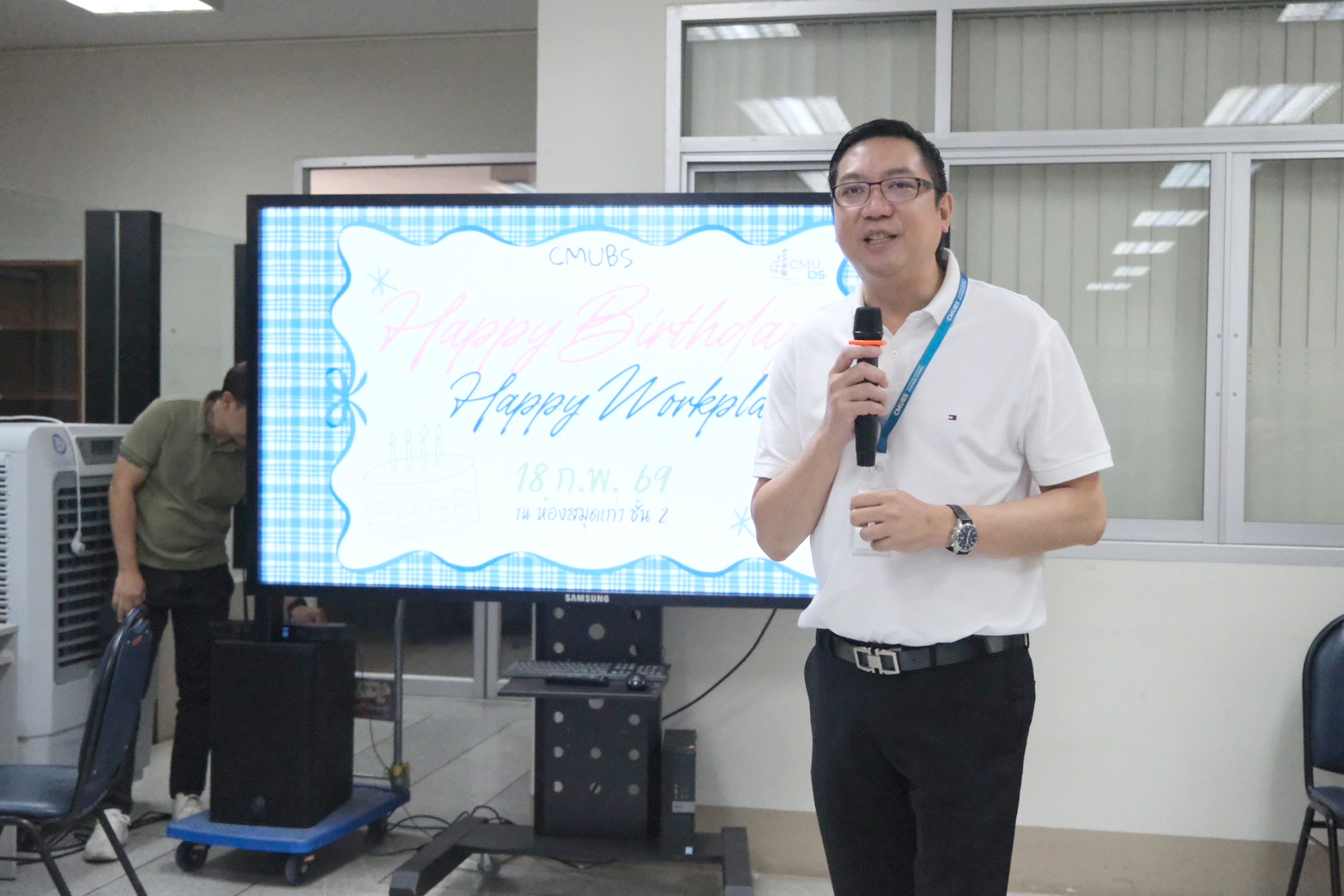 วันที่ 18 กุมภาพันธ์ 2569 คณะบริหารธุรกิจ มหาวิทยาลัยเชียงใหม่ จัดกิจกรรม “CMUBS Happy Birthday Happy Workplace” ณ ห้องสมุดเดิม คณะบริหารธุรกิจ เพื่อร่วมอวยพรเนื่องในวันคล้ายวันเกิดแก่คณาจารย์และบุคลากรที่เกิดในช่วงเดือนธันวาคมถึงเมษายน พร้อมทั้งส่งเสริมวัฒนธรรมองค์กรแห่งความสุข สร้างความสัมพันธ์อันดี และเสริมขวัญกำลังใจในการปฏิบัติงาน โดยได้รับเกียรติจาก ผู้ช่วยศาสตราจารย์ ดร.ก้องภู นิมานันท์ คณบดีคณะบริหารธุรกิจ กล่าวอวยพรท่ามกลางบรรยากาศอบอุ่นและเป็นกันเอง