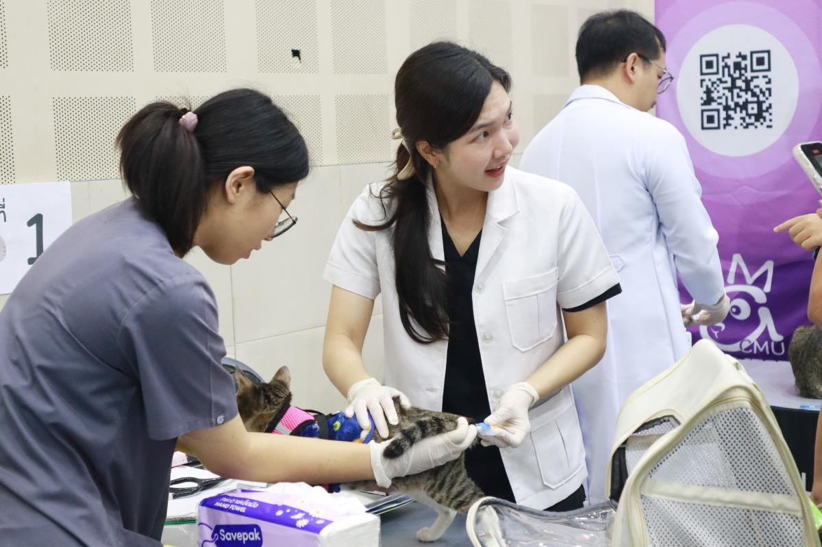 คณะสัตวแพทยศาสตร์ มหาวิทยาลัยเชียงใหม่ นำโดย ผศ. ดร. สพ.ญ.วรางคณา ไชยซาววงษ์ ผู้ช่วยคณบดีฝ่ายบริการวิชาการและการศึกษาตลอดชีวิต พร้อมด้วยคณาจารย์ สัตวแพทย์ นักศึกษาสัตวแพทย์ และบุคลากรของคณะฯ ร่วมออกบูธให้บริการตรวจสุขภาพสัตว์เลี้ยง ภายในงาน Petmart Fair 2025 ระหว่างวันที่ 30 – 31 ตุลาคม และ 1 – 2 พฤศจิกายน 2568 ณ เชียงใหม่ฮอลล์ ศูนย์การค้าเซ็นทรัล เชียงใหม่ แอร์พอร์ต ภายในบูธมีการให้บริการ ตรวจสุขภาพสัตว์เลี้ยงเบื้องต้น ฉีดวัคซีนป้องกันโรคพิษสุนัขบ้า และตรวจช่องหู โดยไม่คิดค่าใช้จ่าย เพื่อส่งเสริมให้ประชาชนตระหนักถึงการดูแลสุขภาพสัตว์เลี้ยงอย่างถูกวิธี และสร้างเสริมสุขภาวะที่ดีของสัตว์ในชุมชน